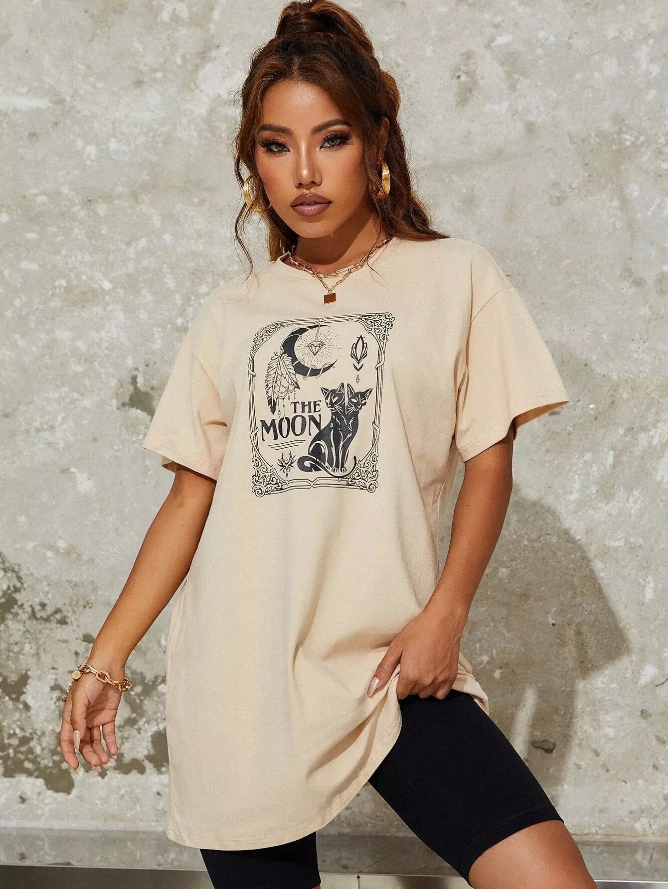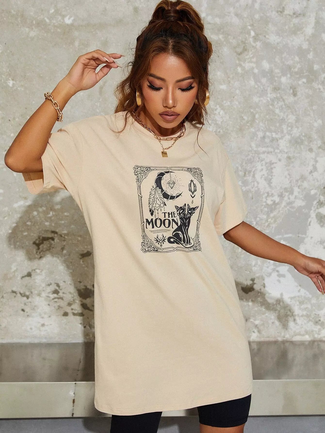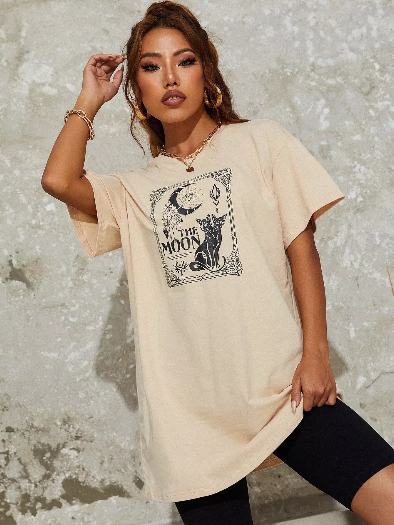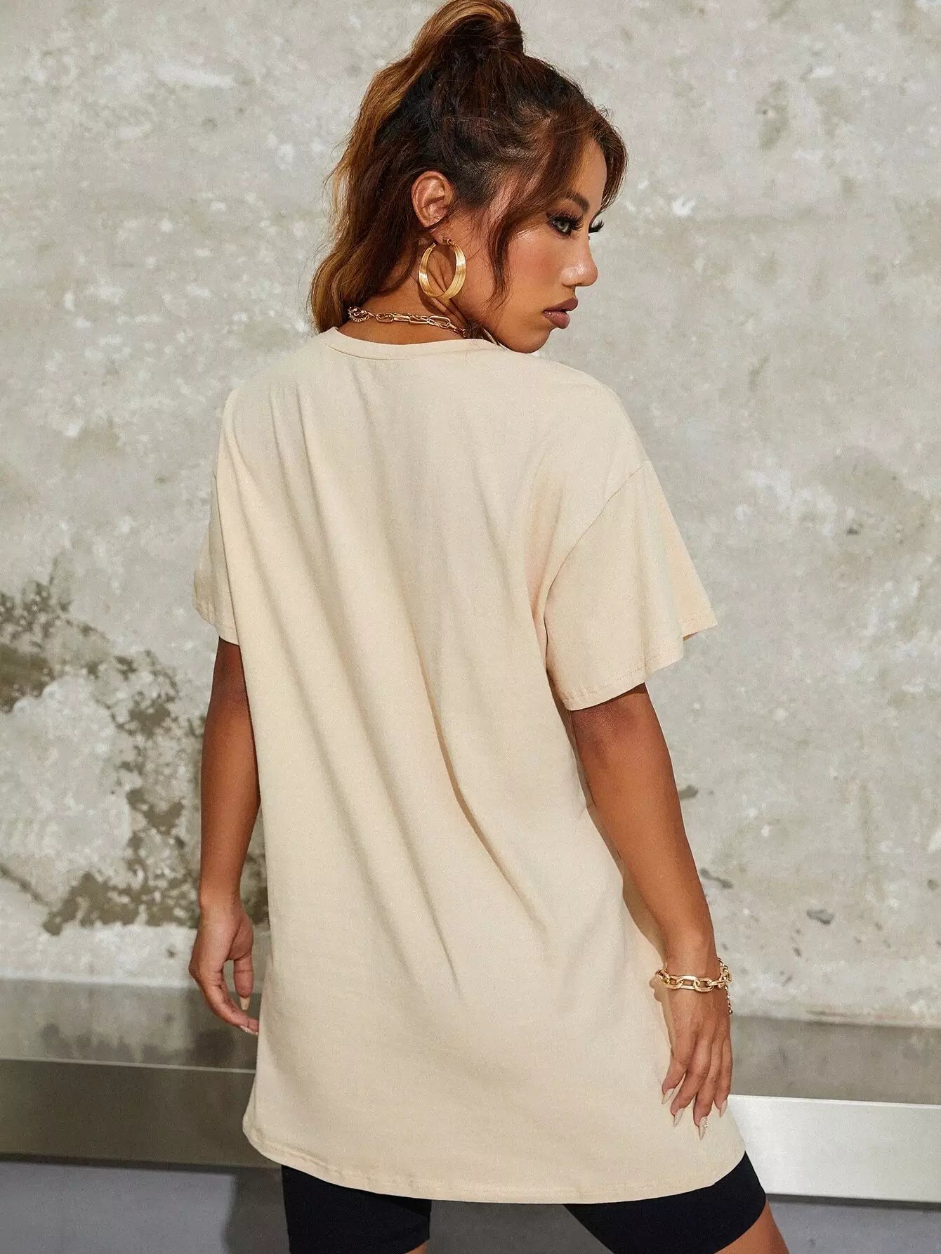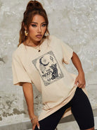 تي شيرت منسدل الكتف برسومات حيوانات ورسومات حروف