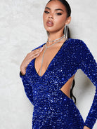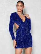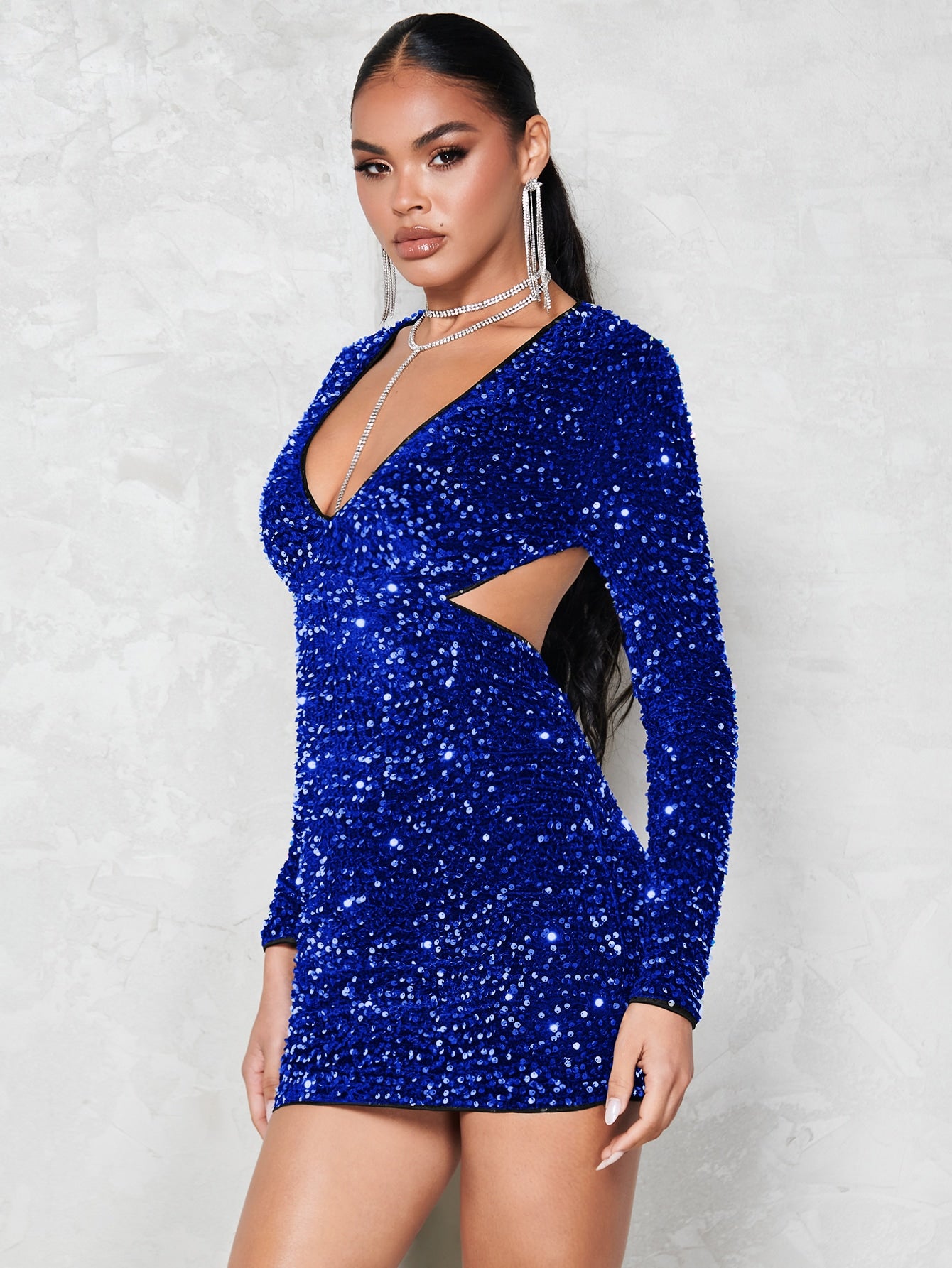 فستان بي ايه اي ضيق من الترتر بفتحة رقبة منخفضة