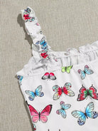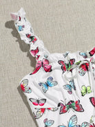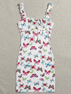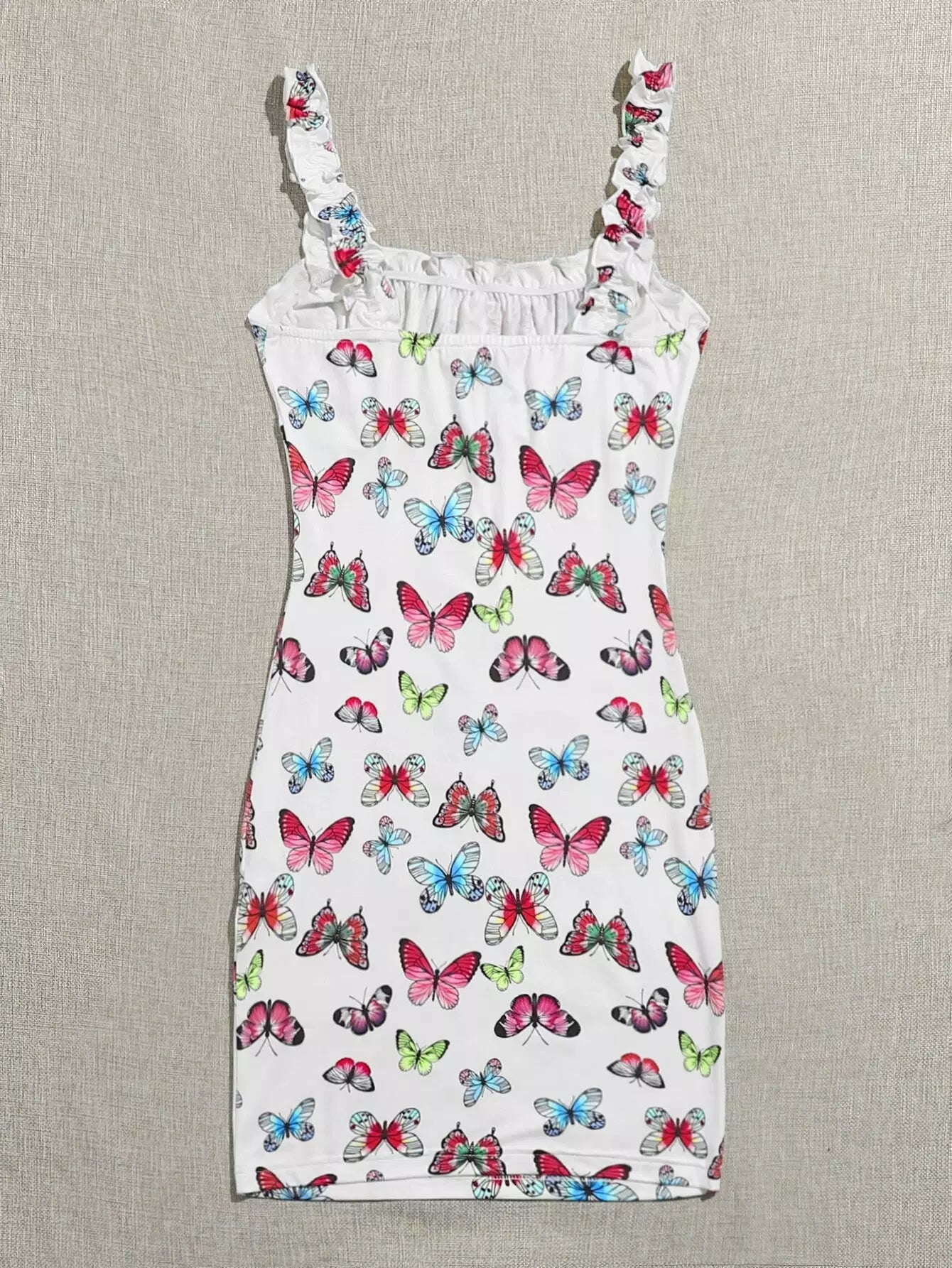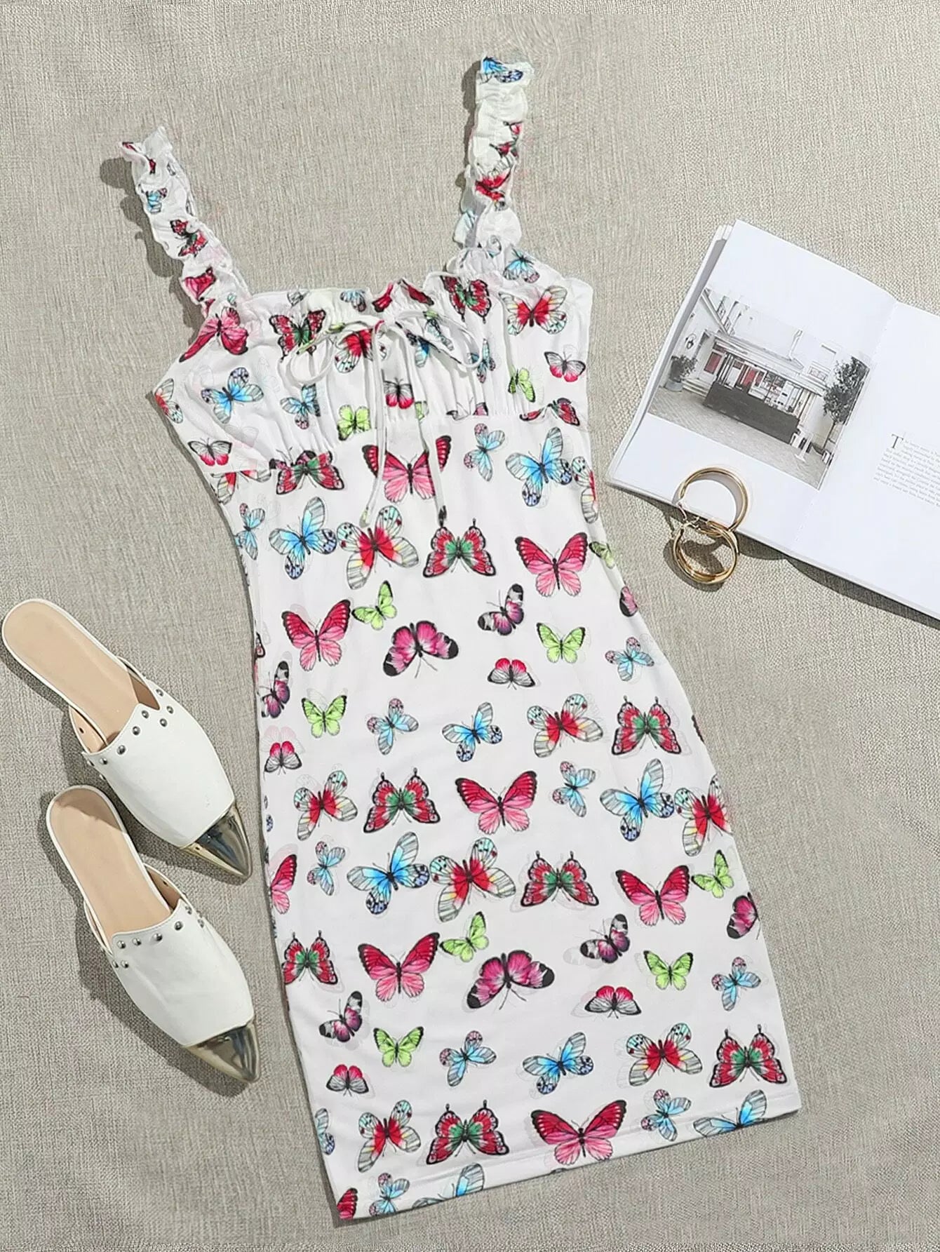 فستان بطبعة فراشات معقود معقود الصدر مكشكش الصدر