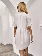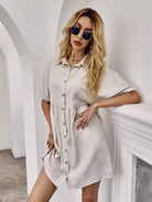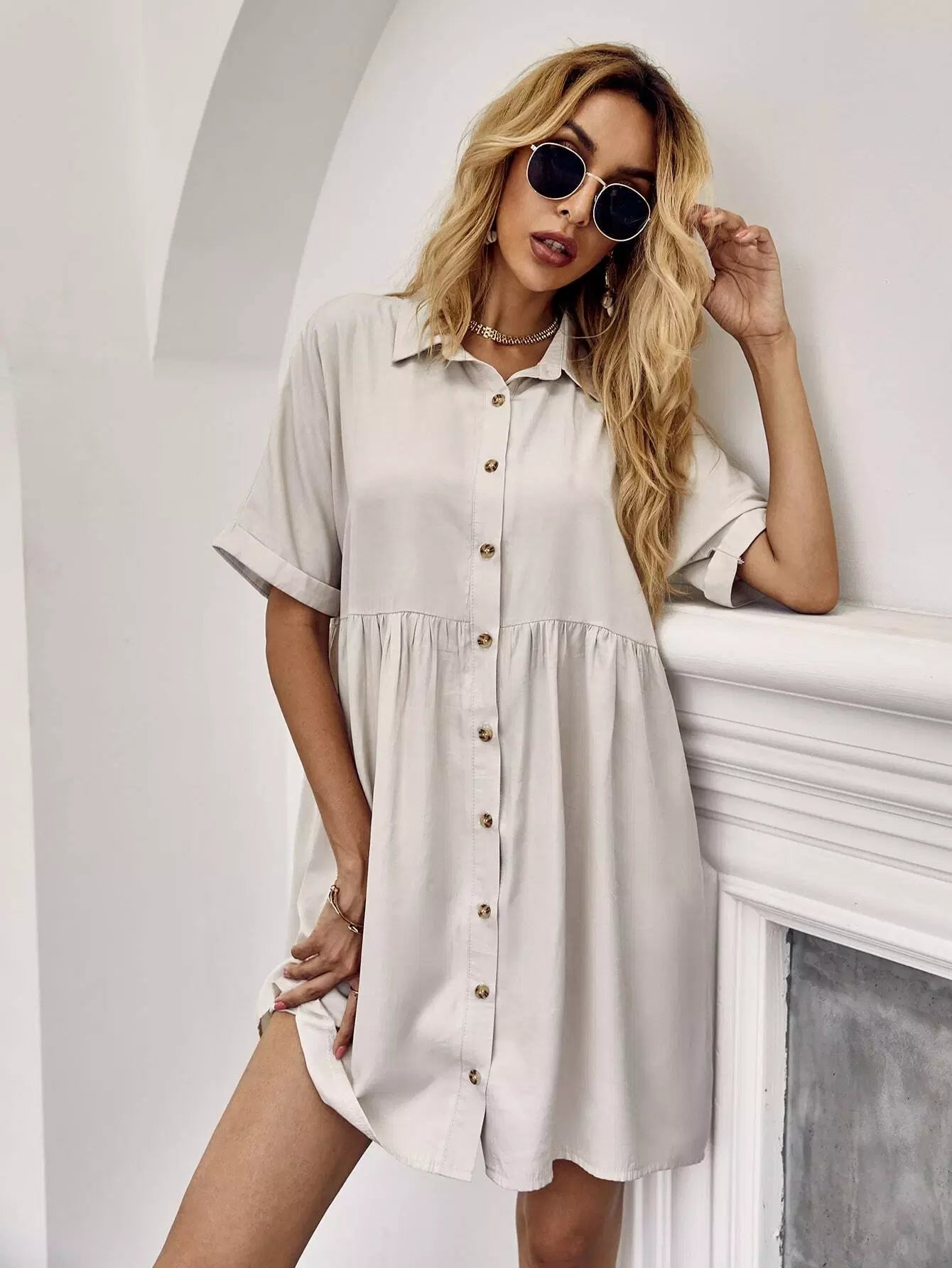 فستان بأكمام بأزرار أمامية بأزرار بأكمام باتوينغ