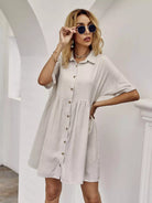للنساء - فستان سموك بأزرار أمامية وأكمام جناح الخفاش
