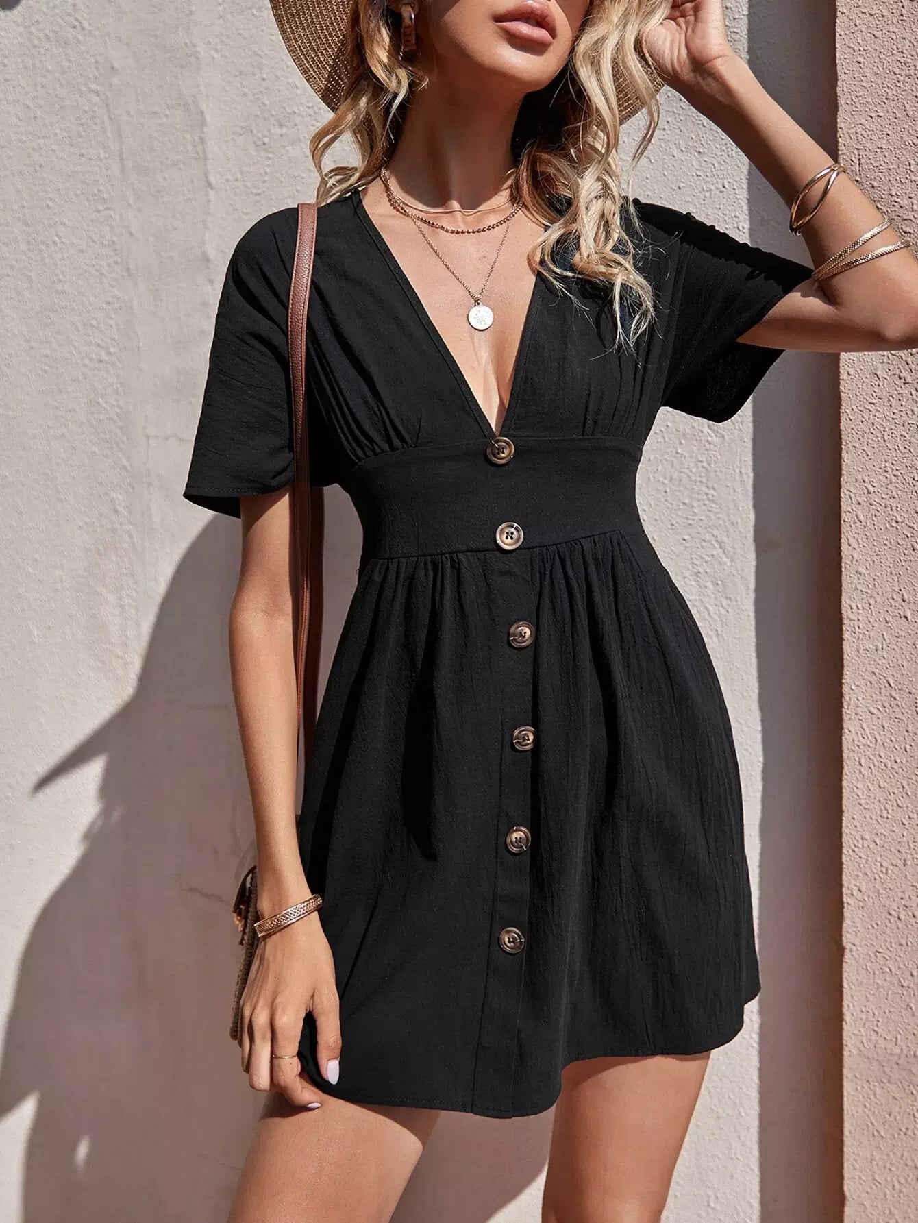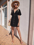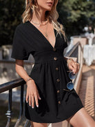فستان بفتحة أمامية بأزرار برقبة على شكل حرف A
