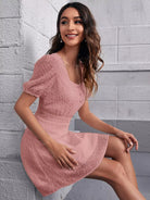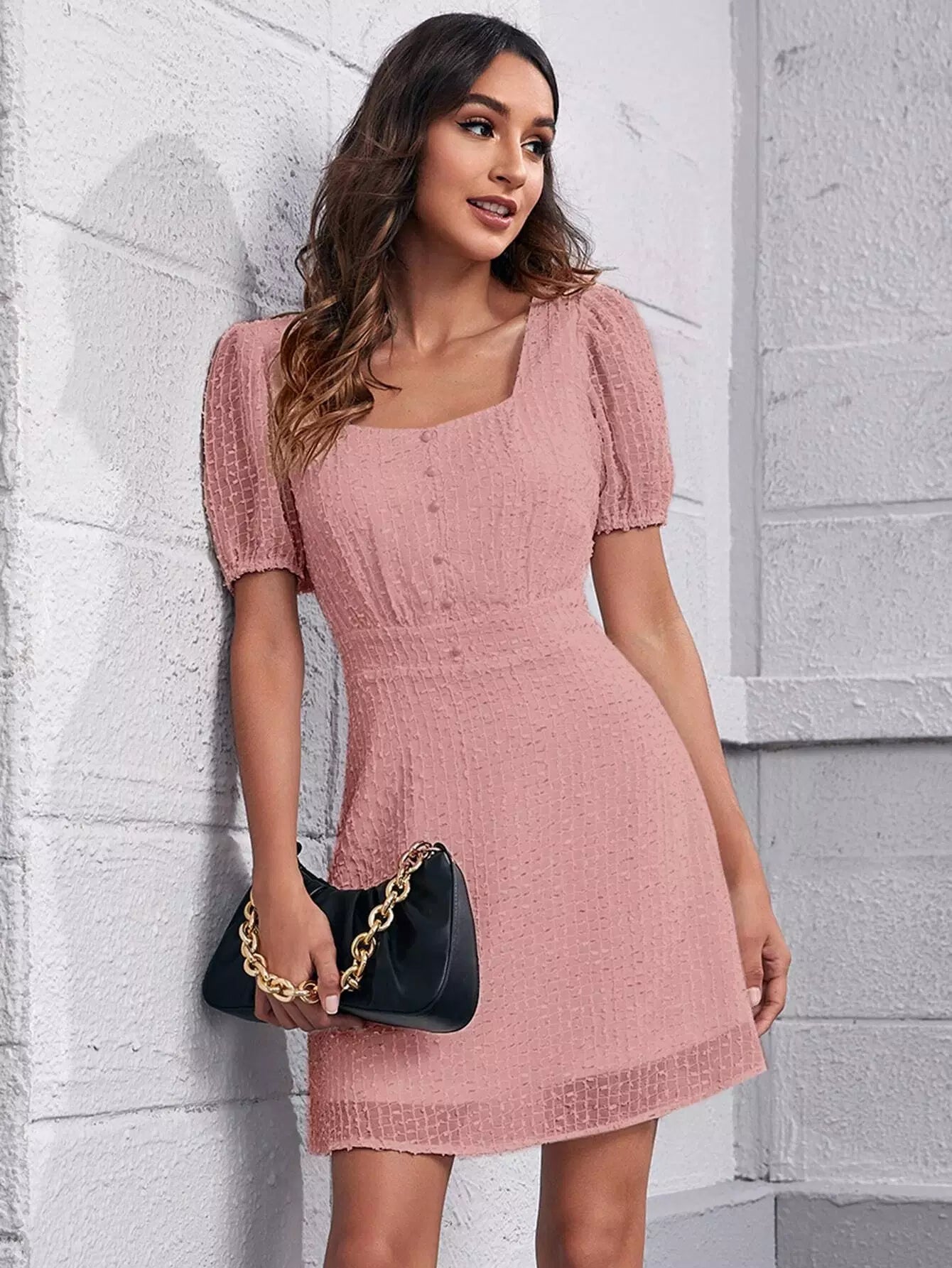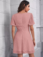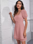 فستان سويس بأكمام منفوشة بأزرار أمامية منفوشة بأزرار