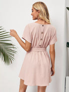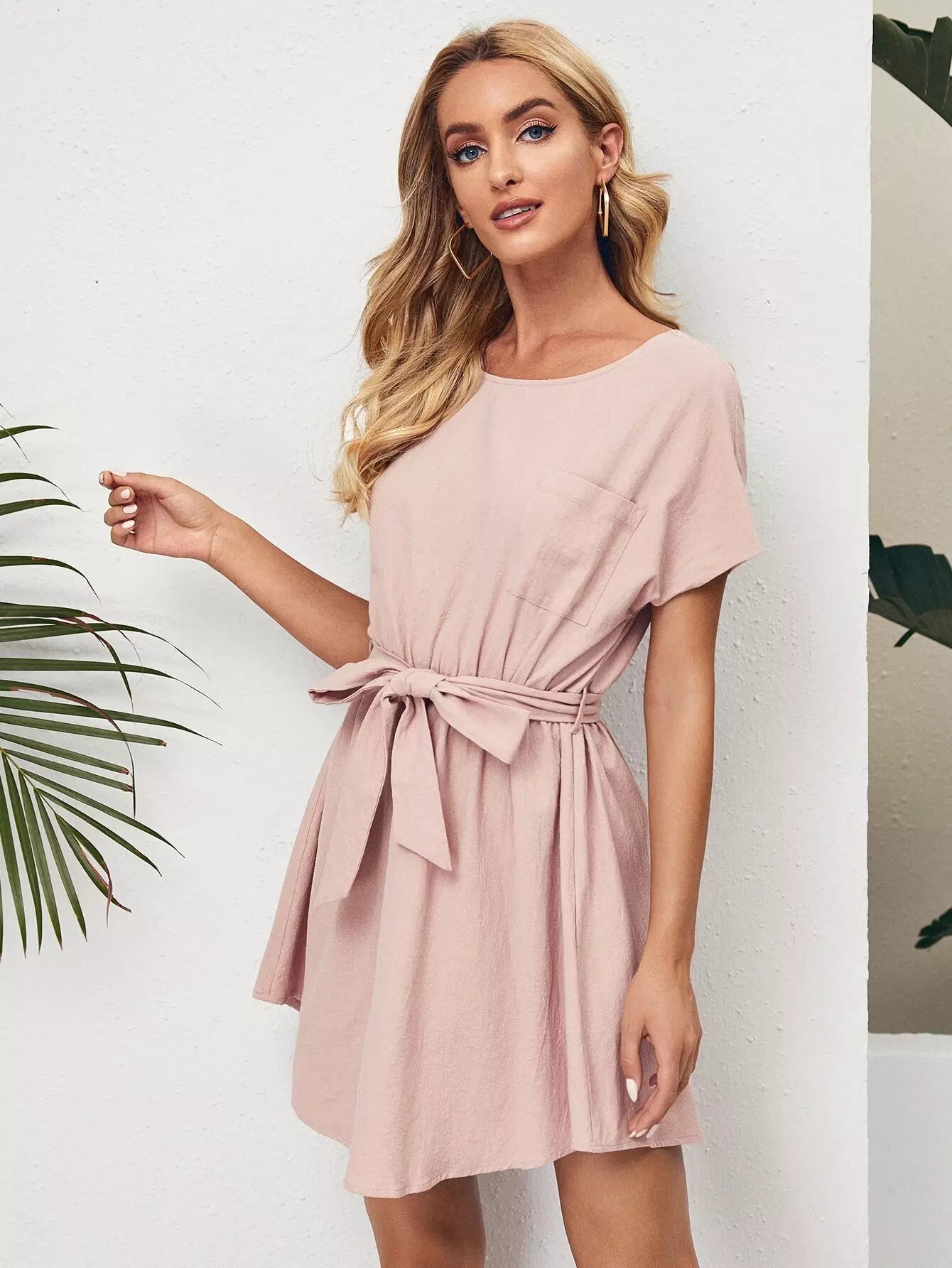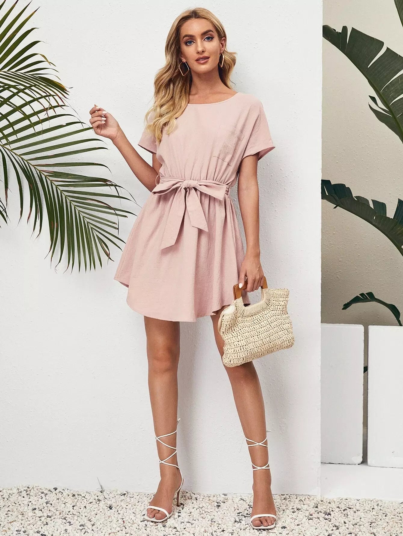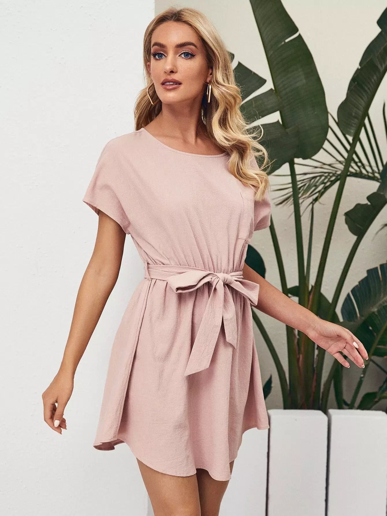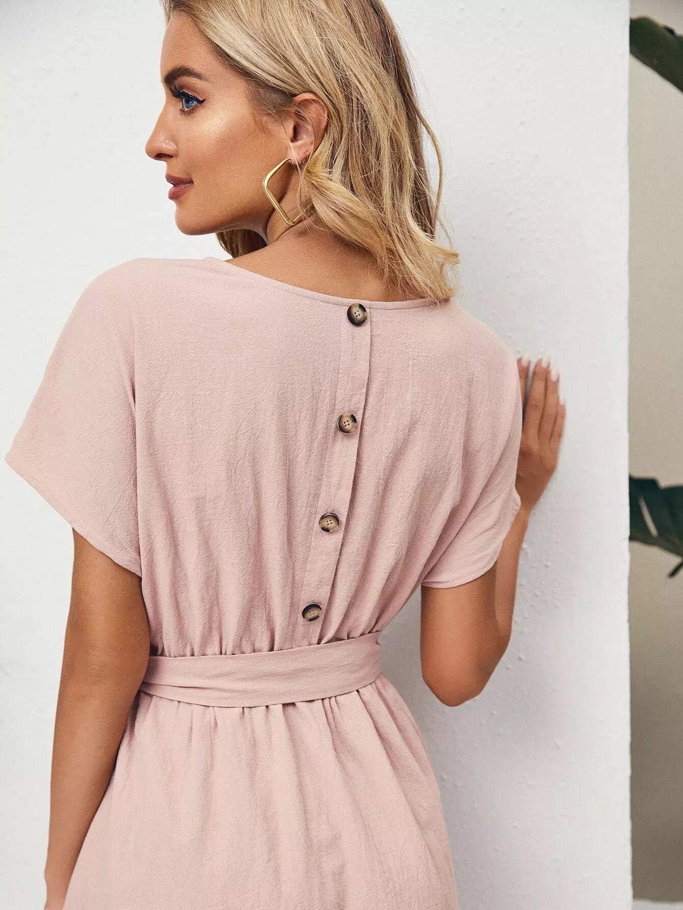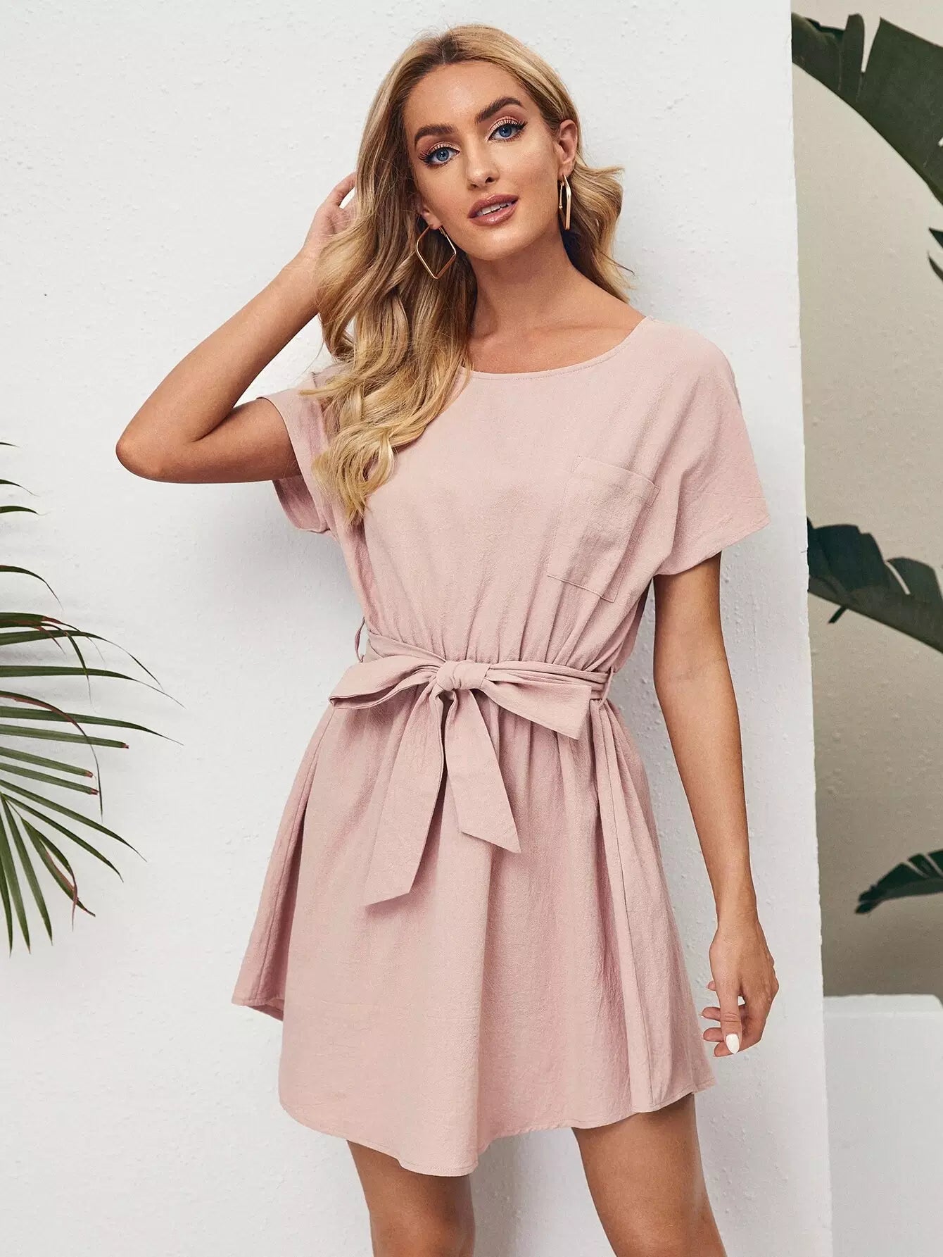 فستان بأزرار أمامية وجيب خلفي بدون حزام
