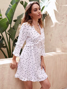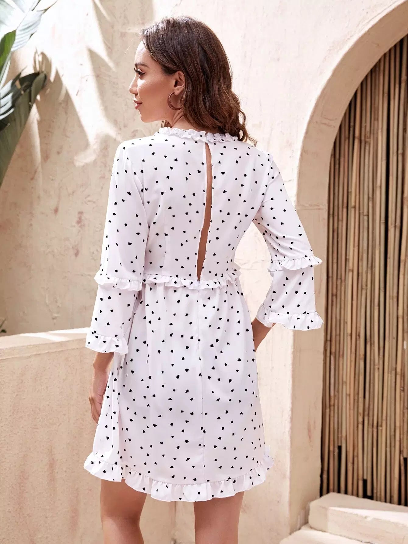 فستان بحواف مكشكشة على شكل قلب على شكل قلب