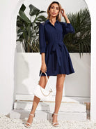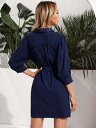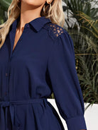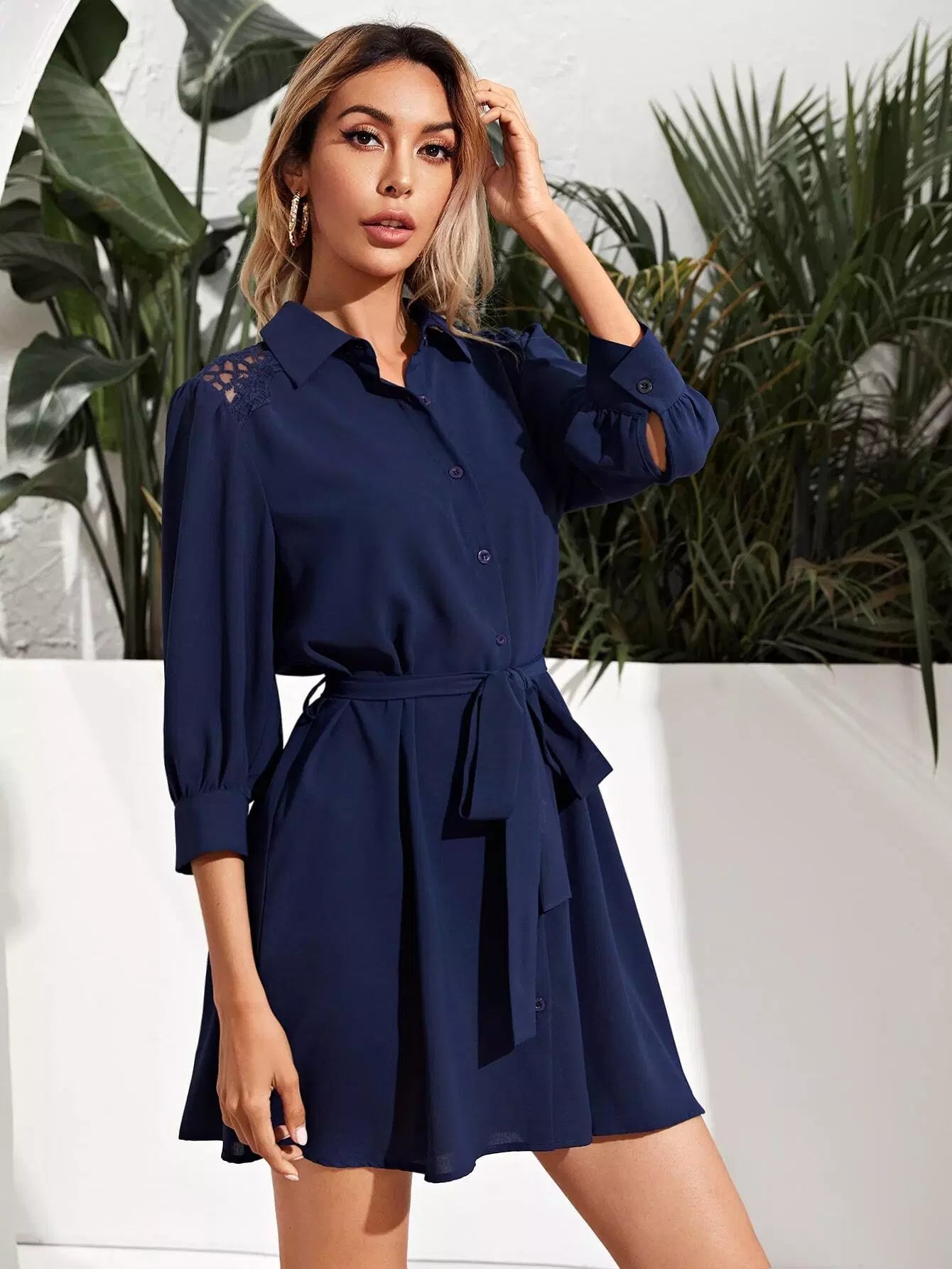 فستان قميص بأزرار أمامية من الدانتيل بلون مغاير بدون حزام