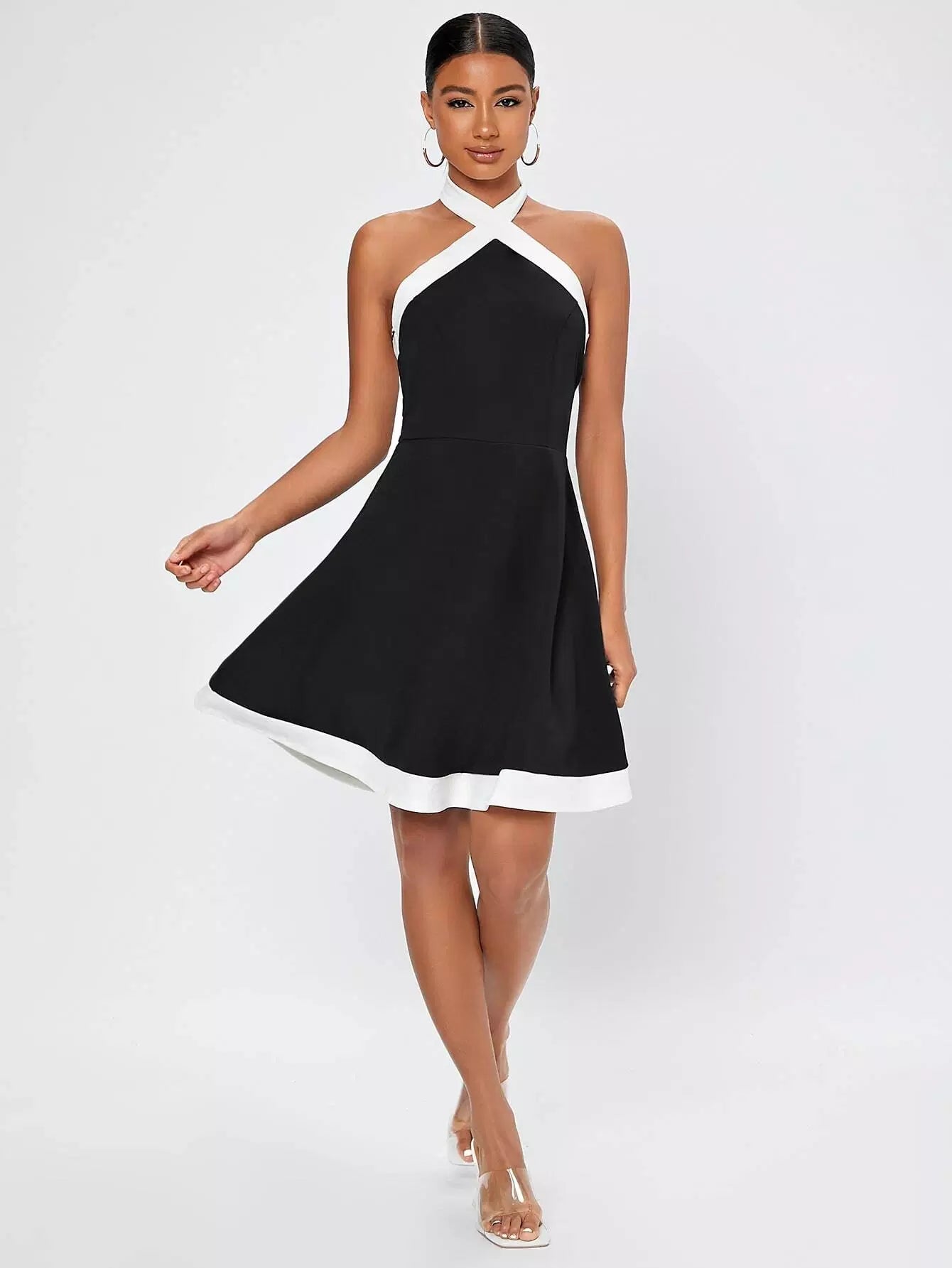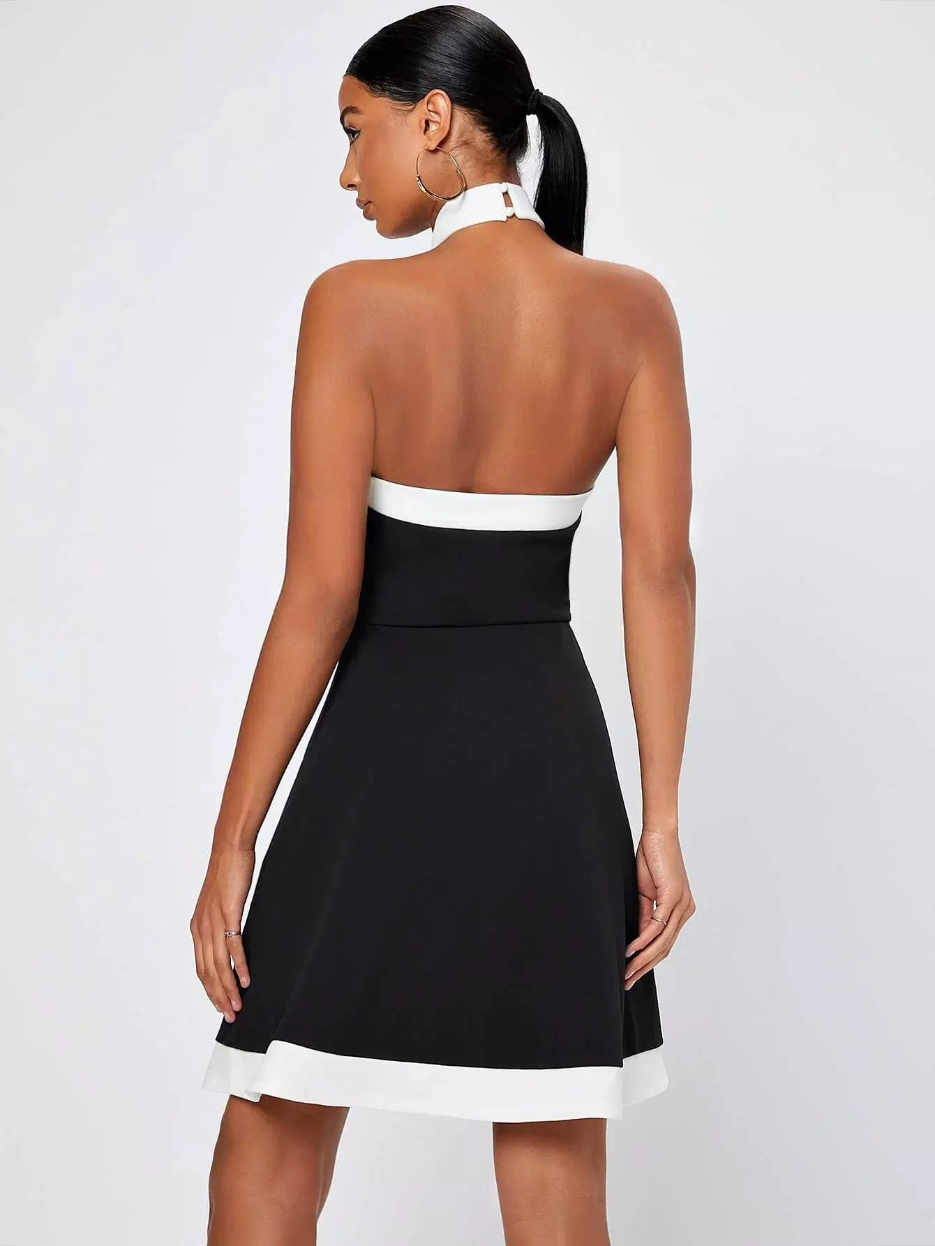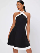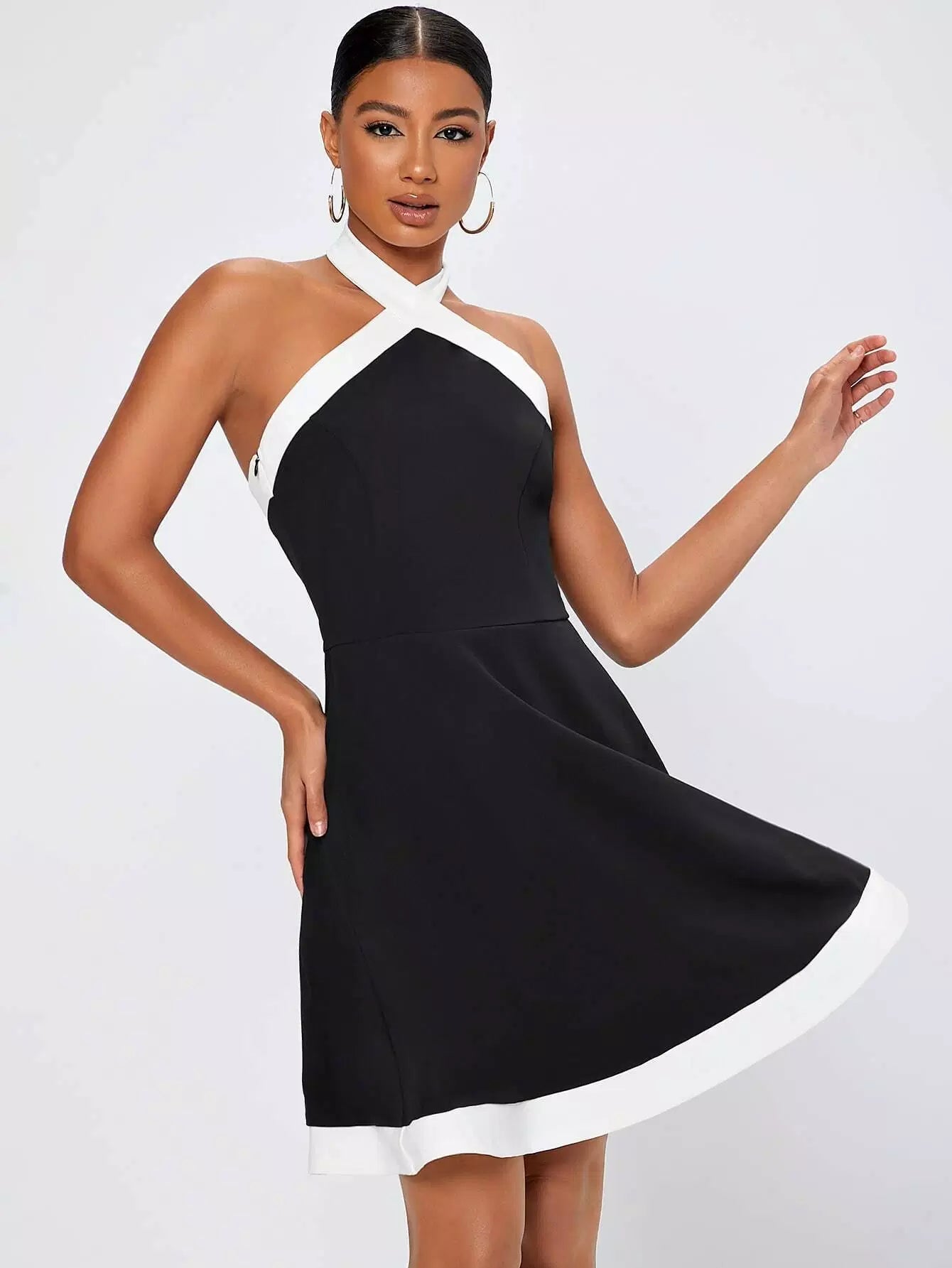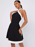 فستان هالتر مكشوف الظهر بحواف متباينة