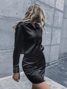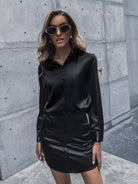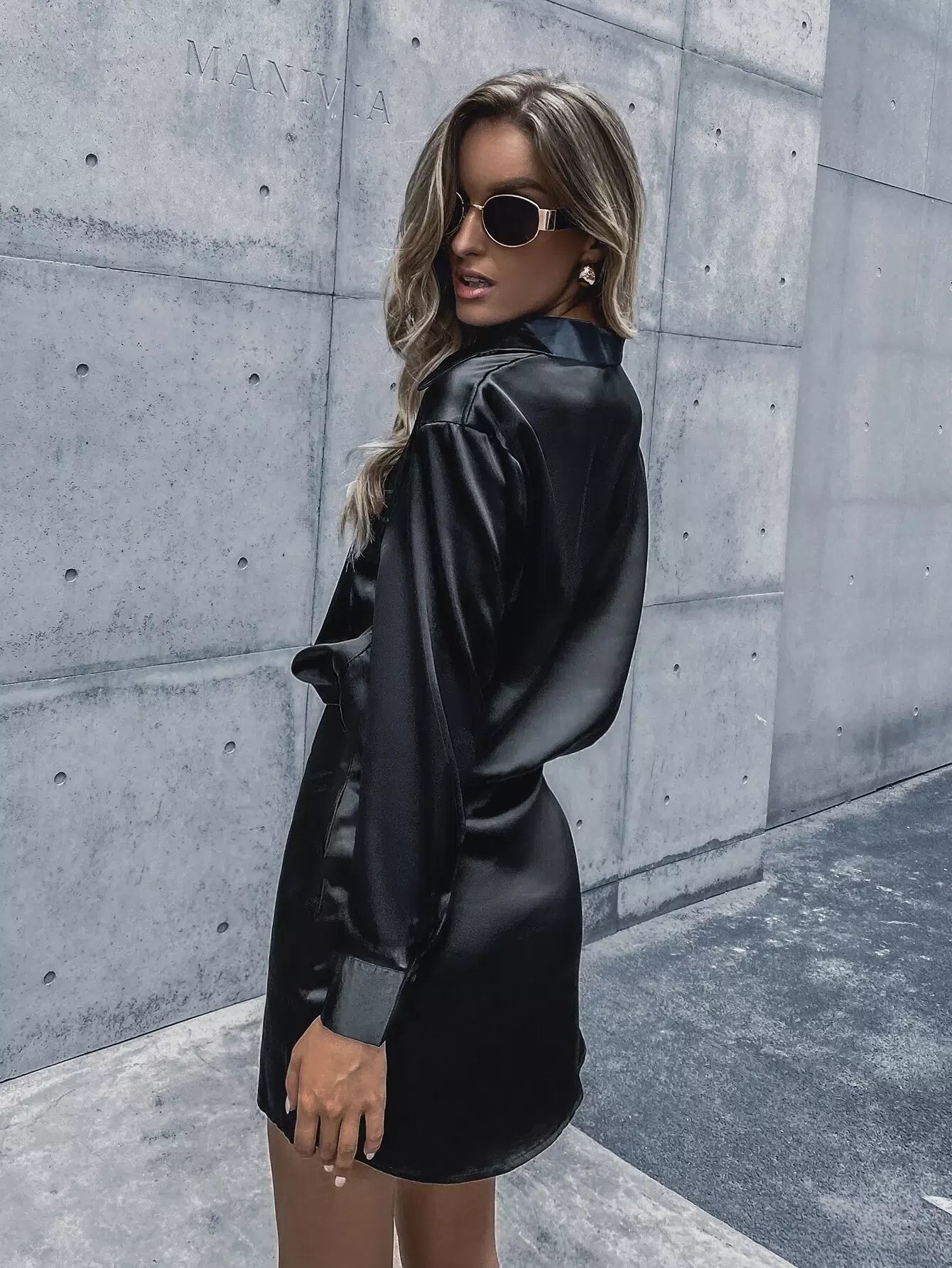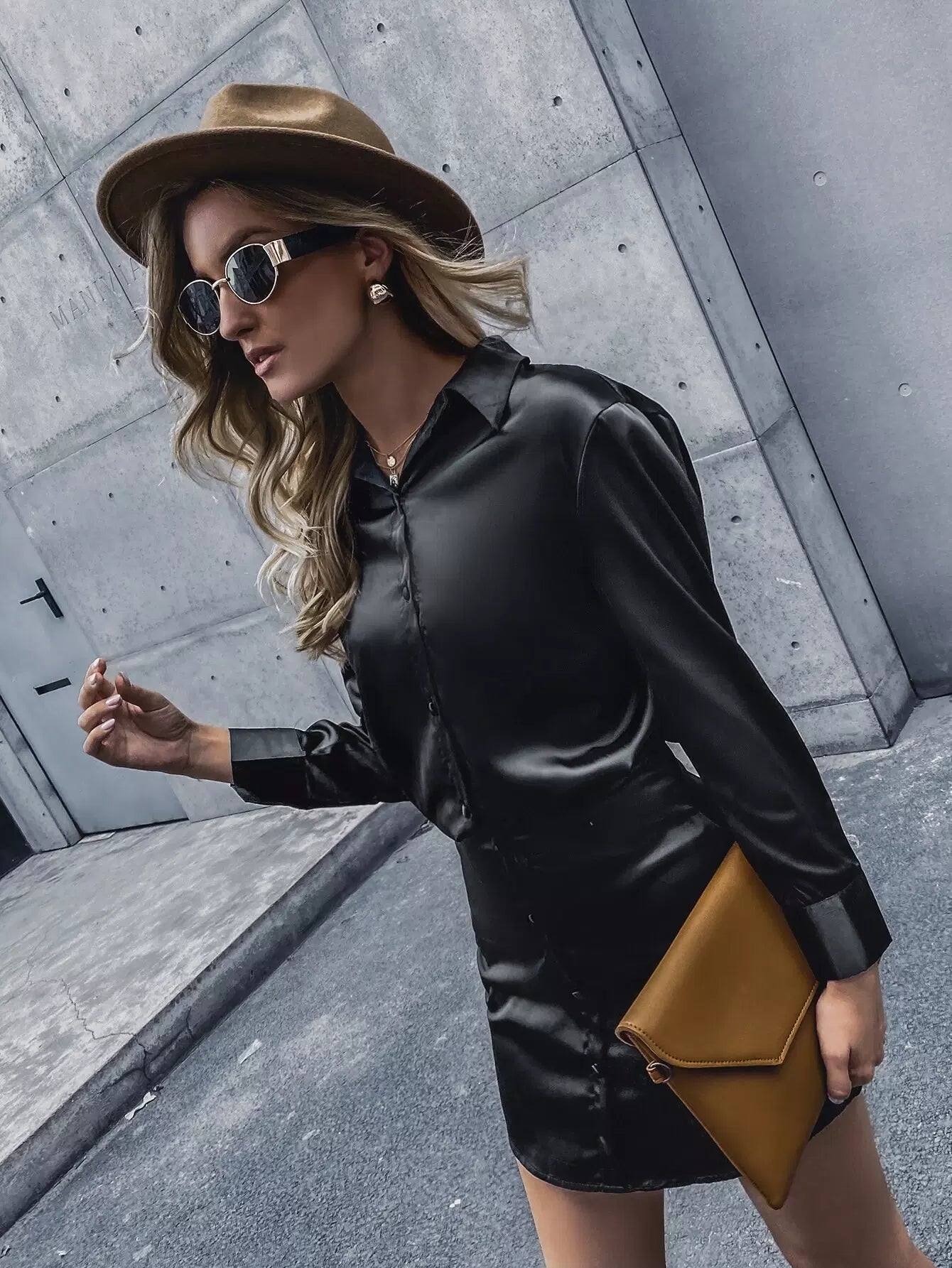 فستان بلوسون ساتان بحافة منحنية بأزرار مغطاة