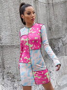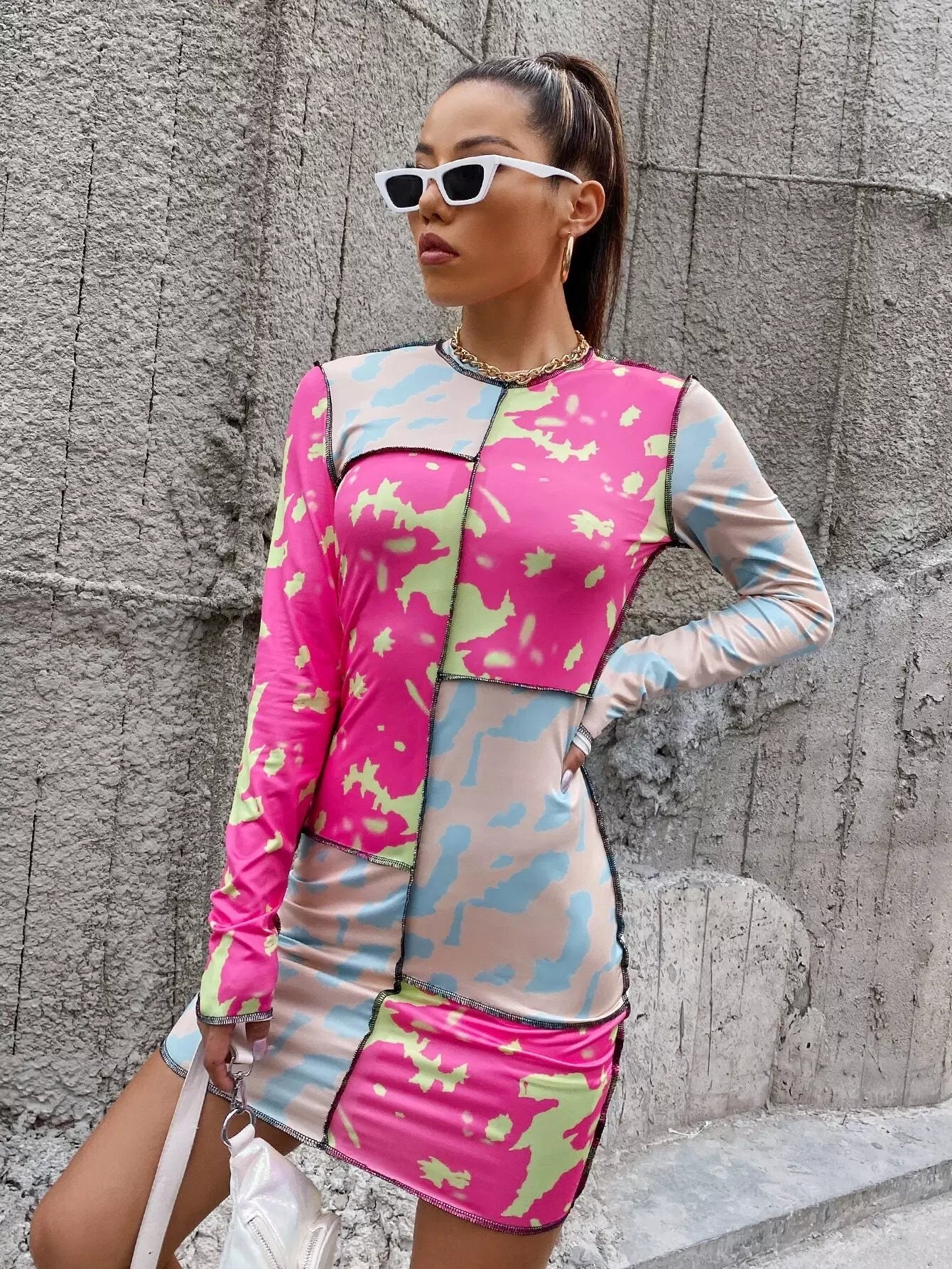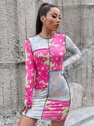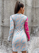 فستان بطبعة جرافيكية مقطوعة ومخيطة