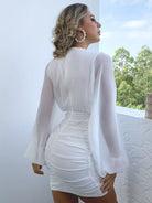 فستان بأكمام على شكل حرف V برقبة عميقة