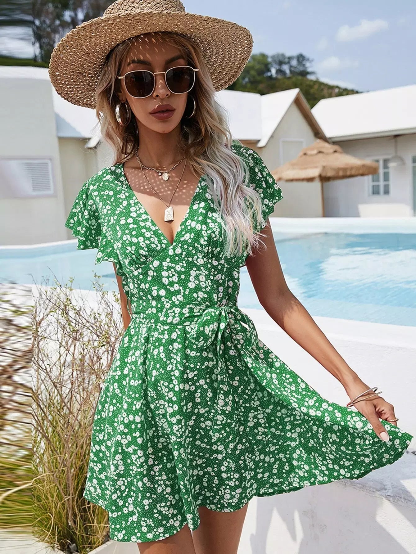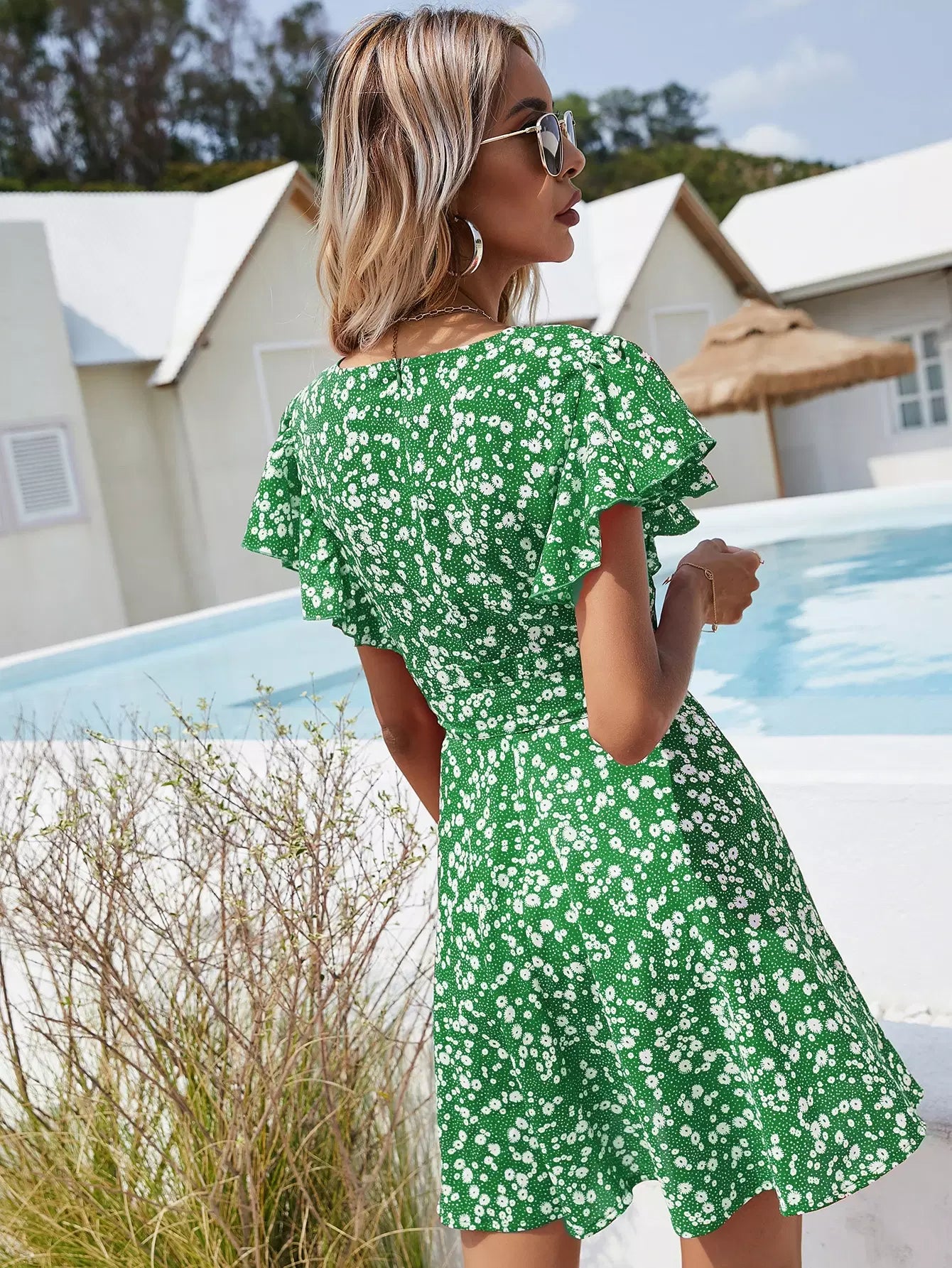فستان Ditsy على شكل حرف A مزين بالزهور بدون حزام
