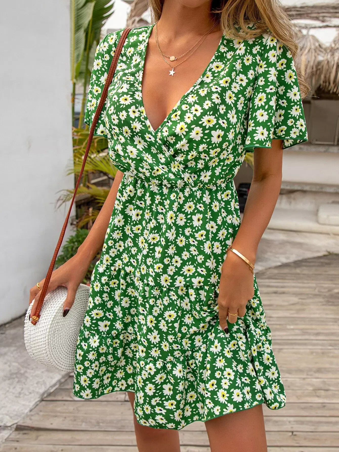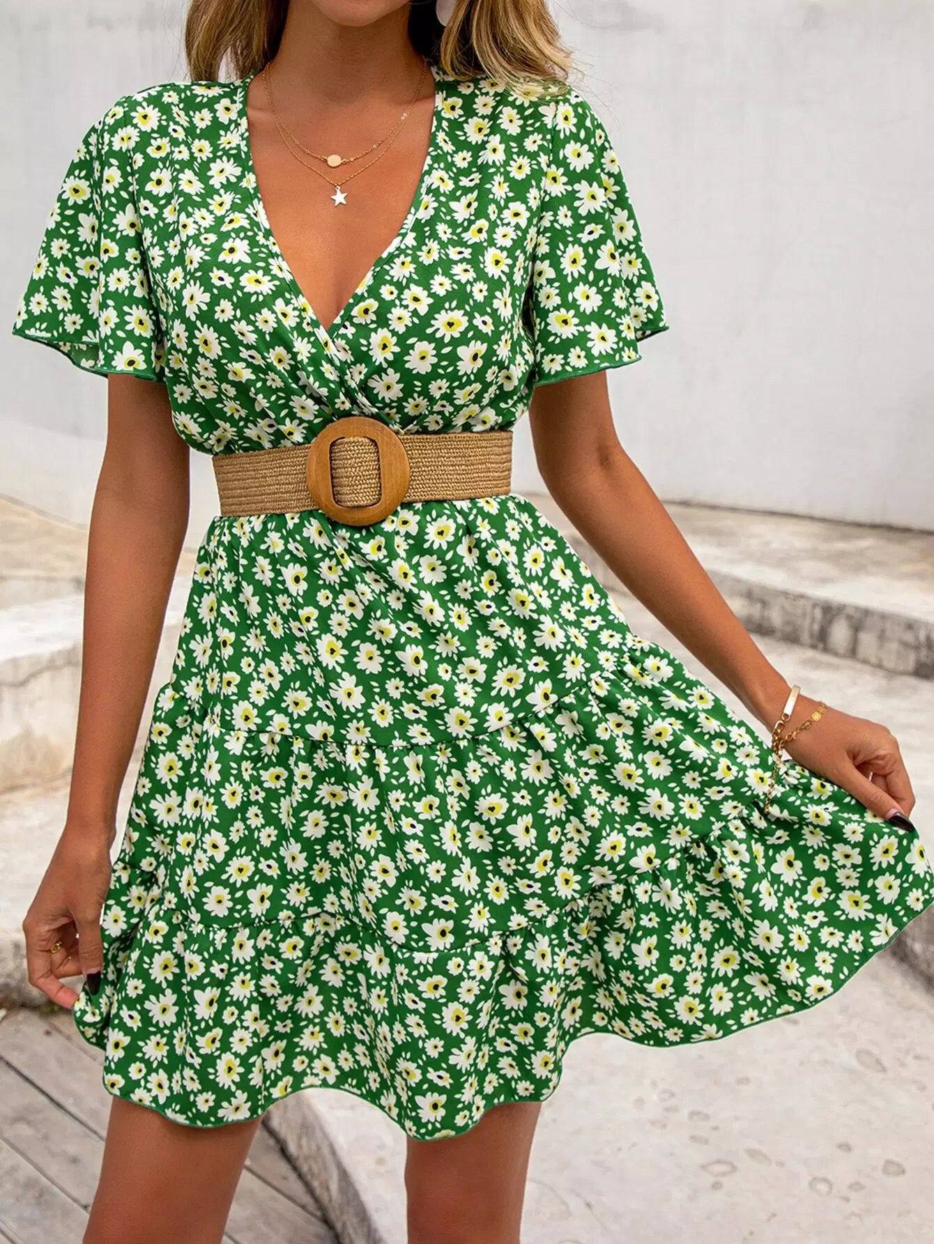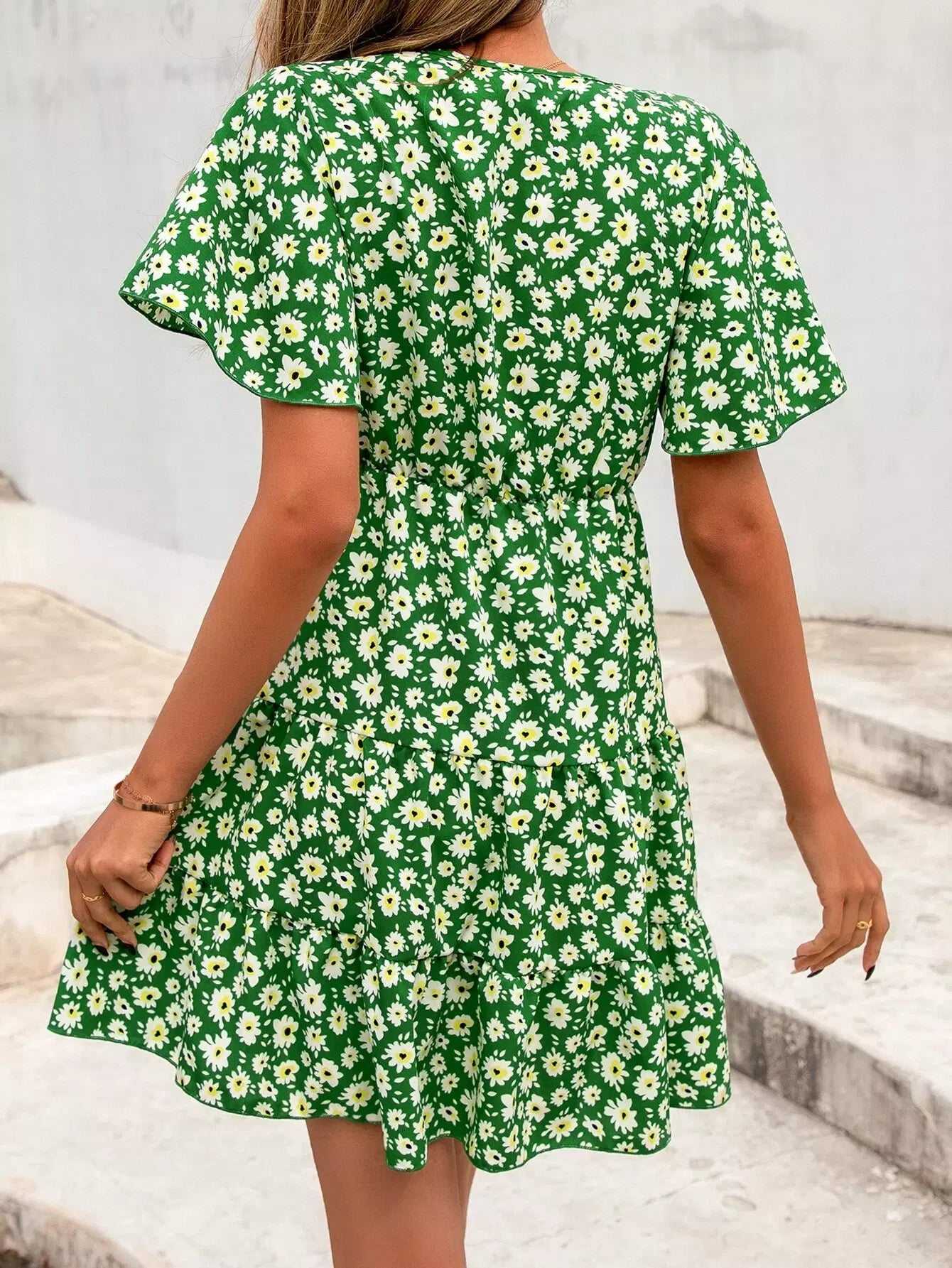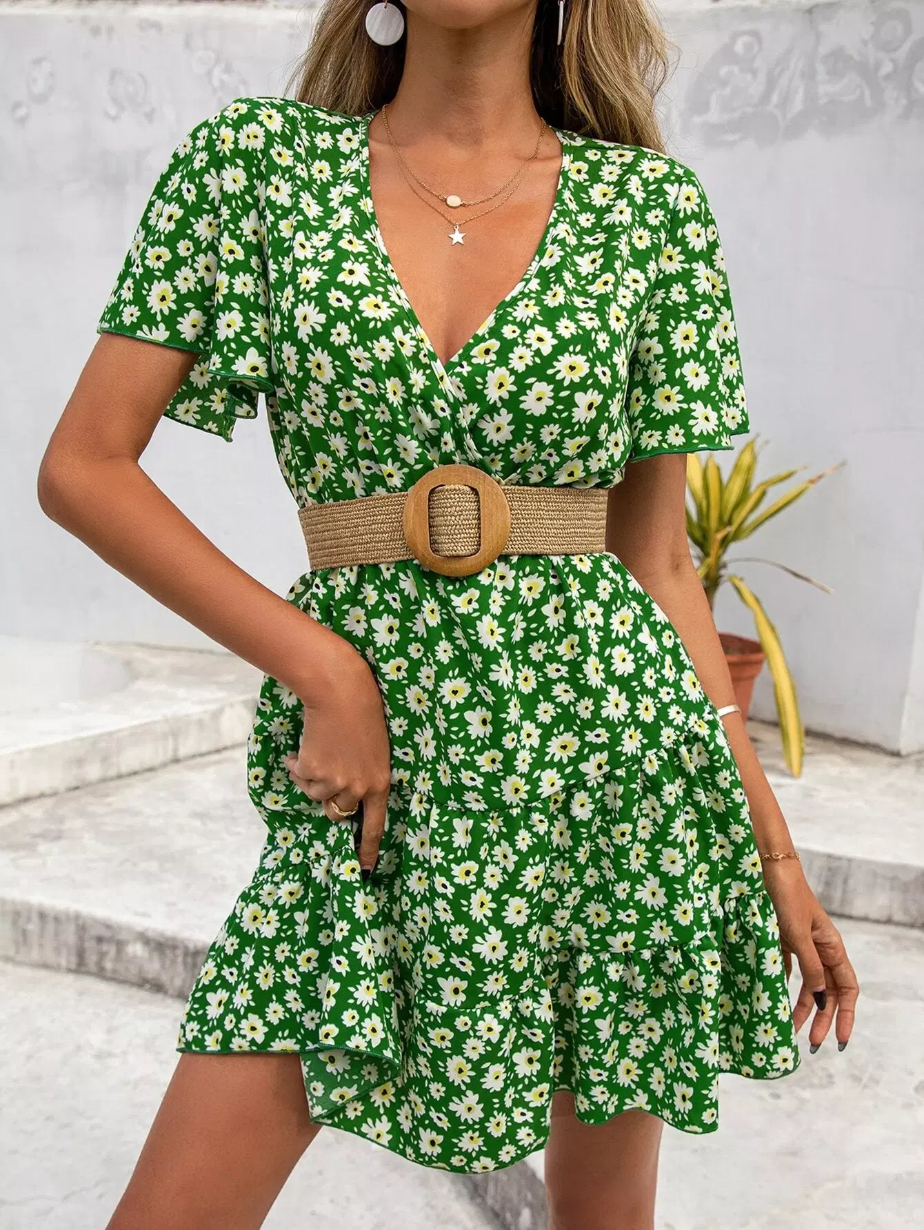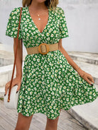 فستان ديتسي بأكمام زهرية متداخلة بياقة متداخلة بياقة كشكش بدون حزام