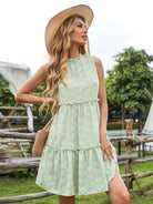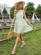 فستان قصير مزين بكشكشة وزهور صغيرة