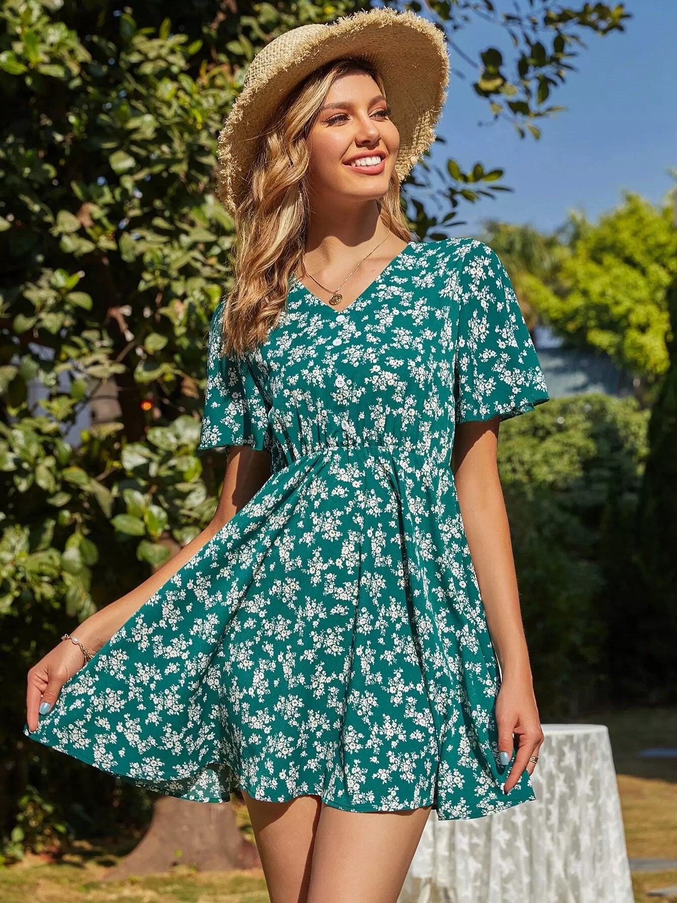 فستان ديتسي مزين بالورود ذو خصر مرتفع على شكل حرف A