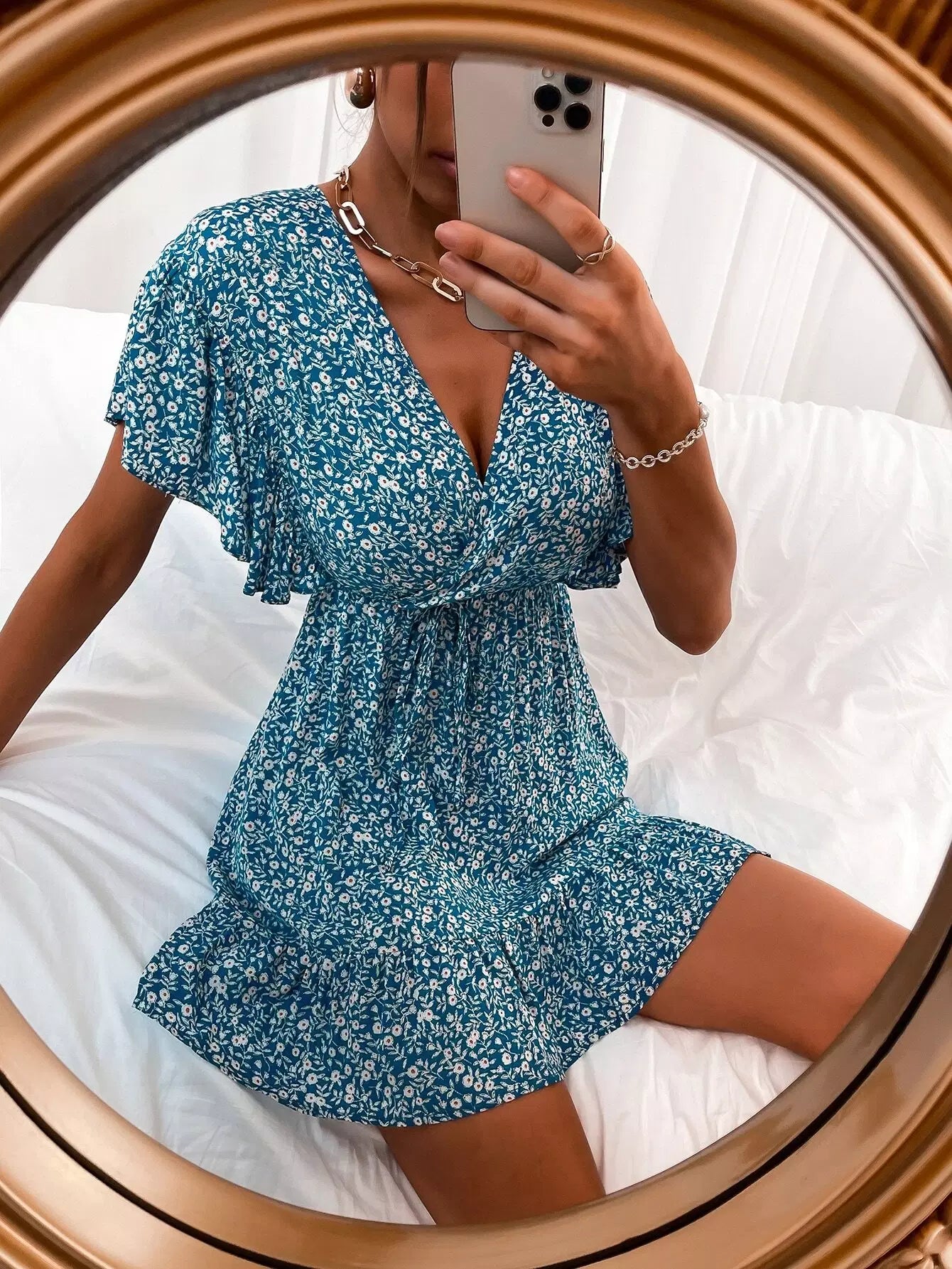 فستان ديتسي بفتحة على شكل عقدة زهرية على شكل حرف A