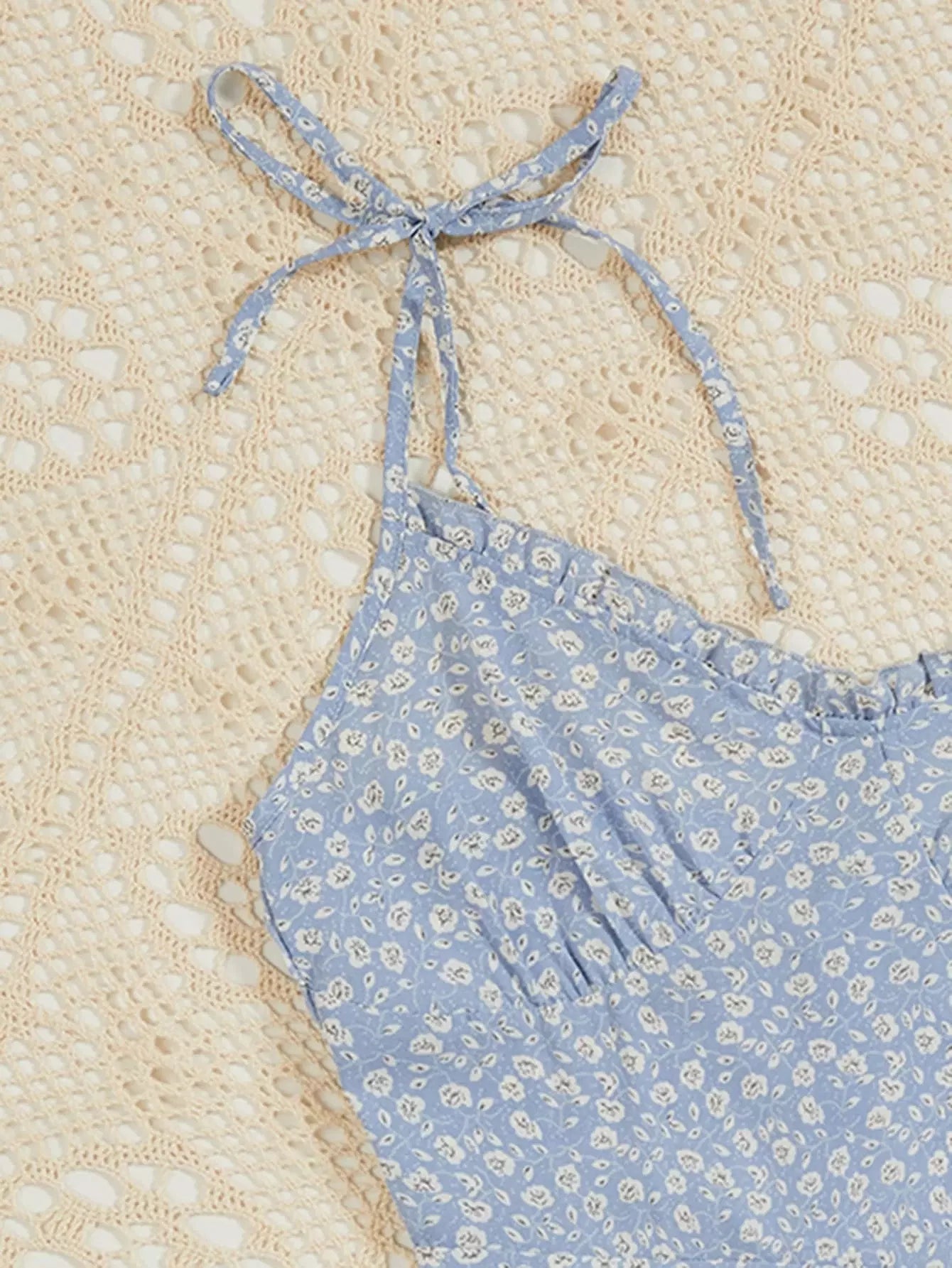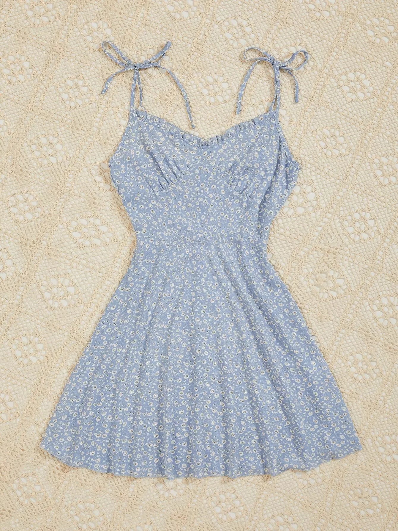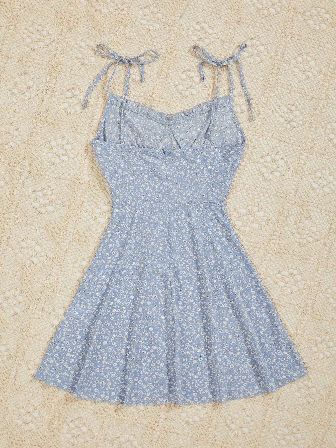 فستان ديتسي مزين بعقدة زهور على الكتف