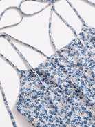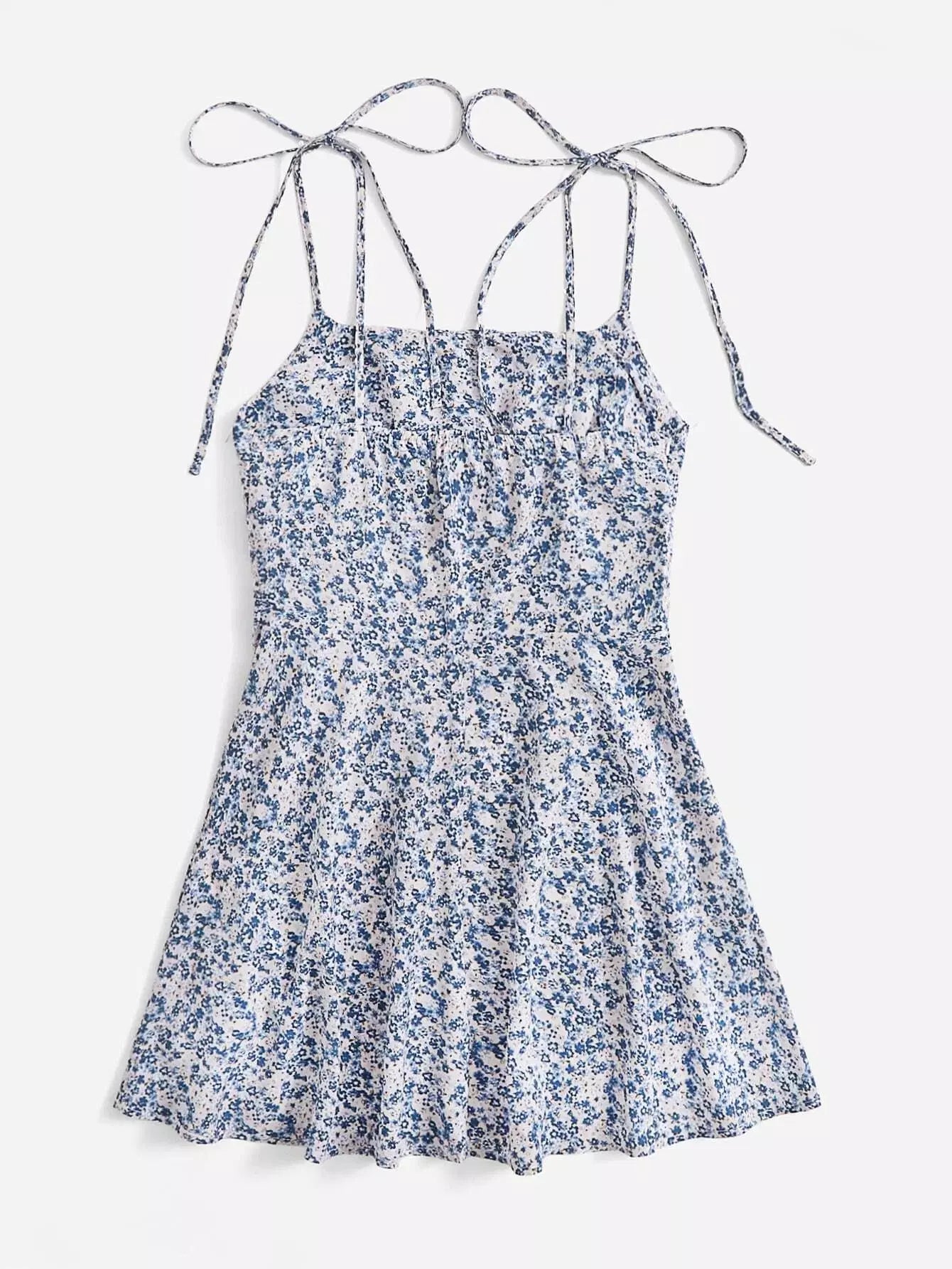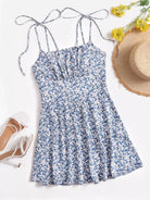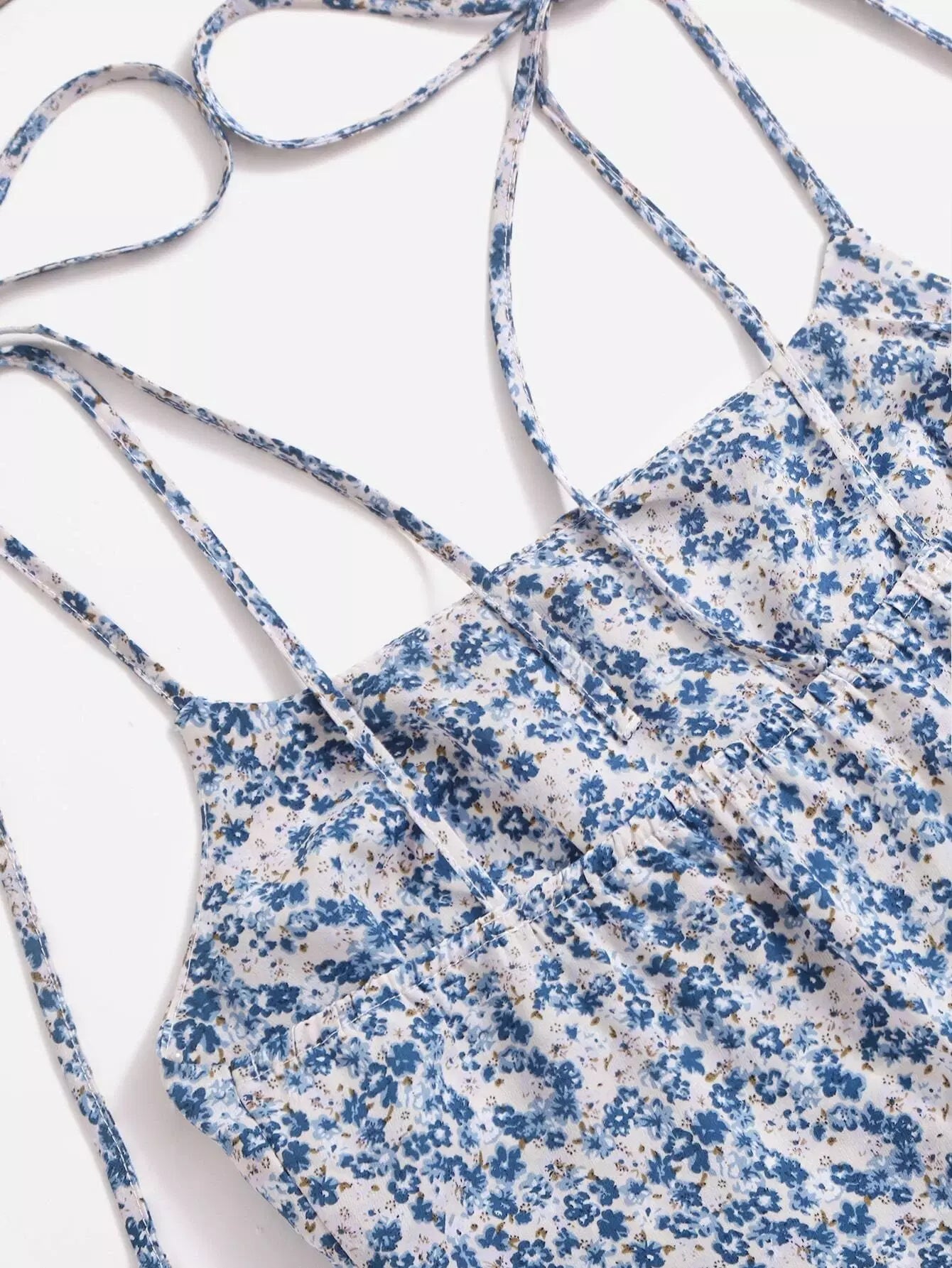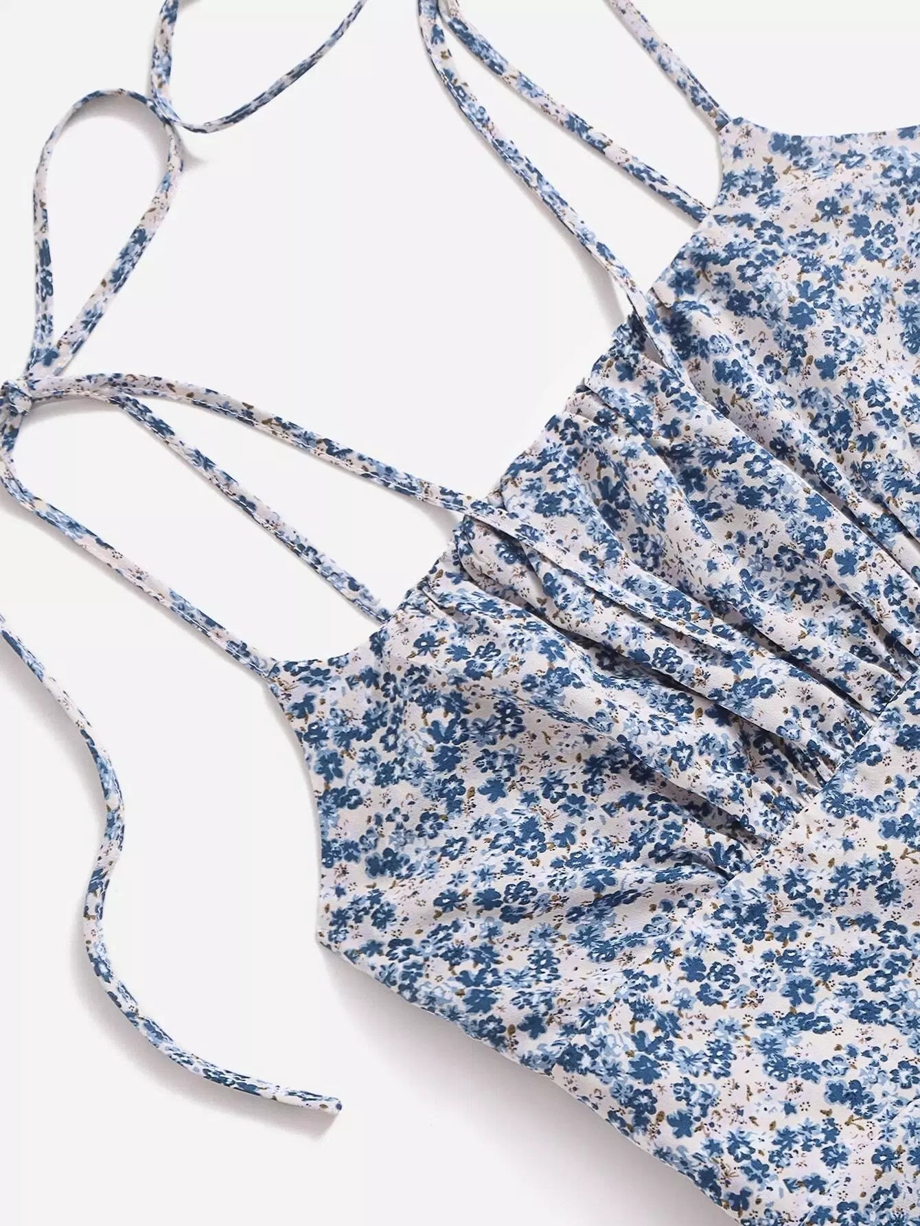 فستان ديتسي زهري بعقدة على الكتفين مع كشكشة على الصدر