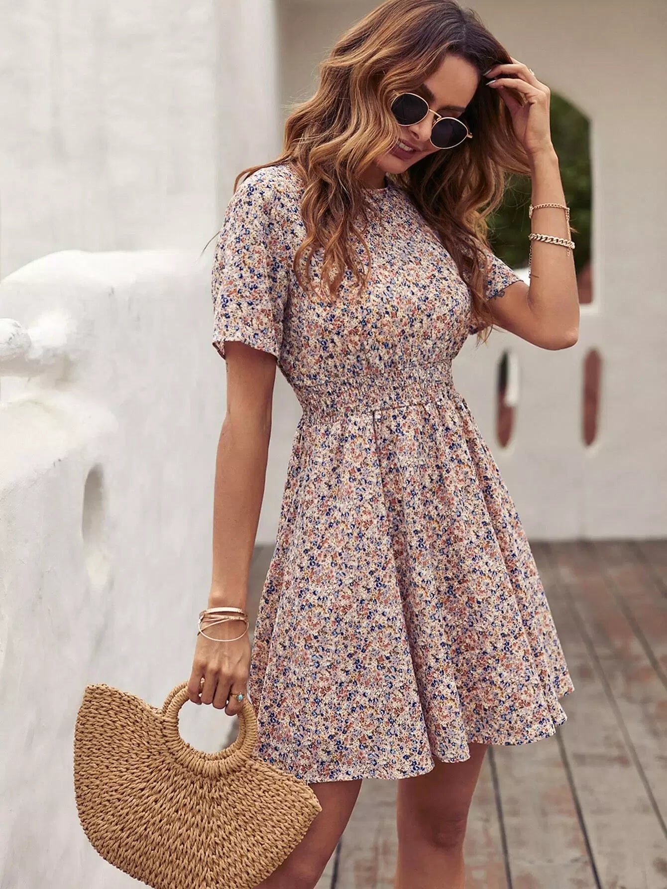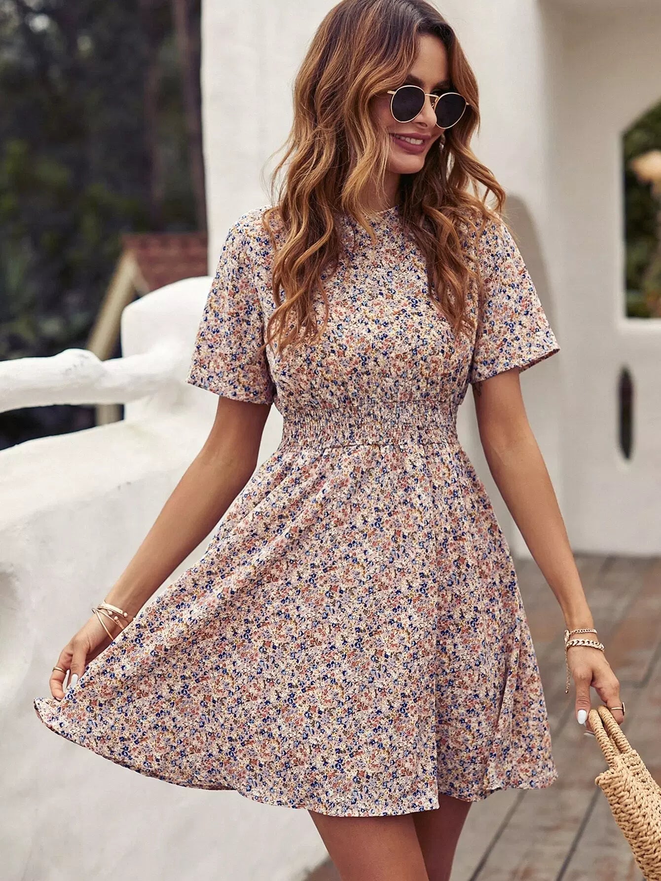فستان ديتسي بطبعة زهور على شكل حرف A
