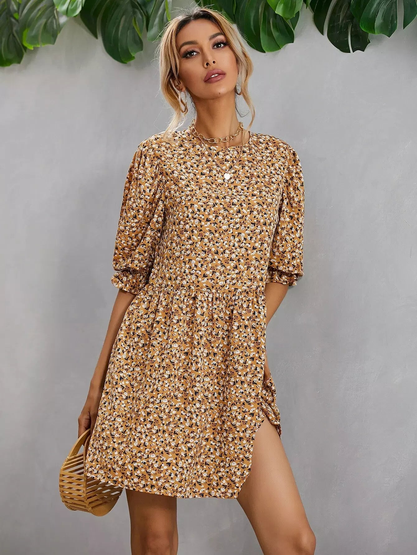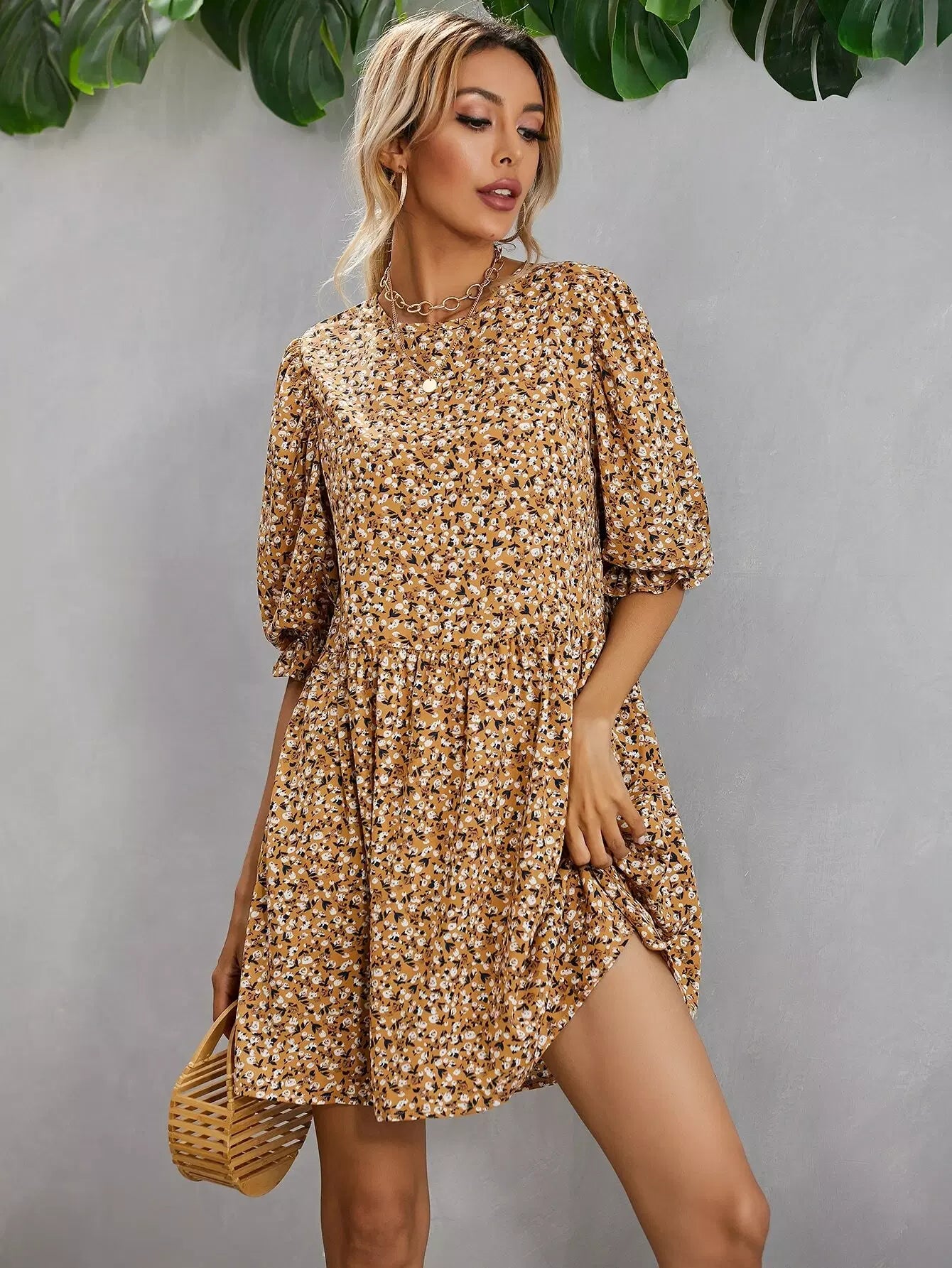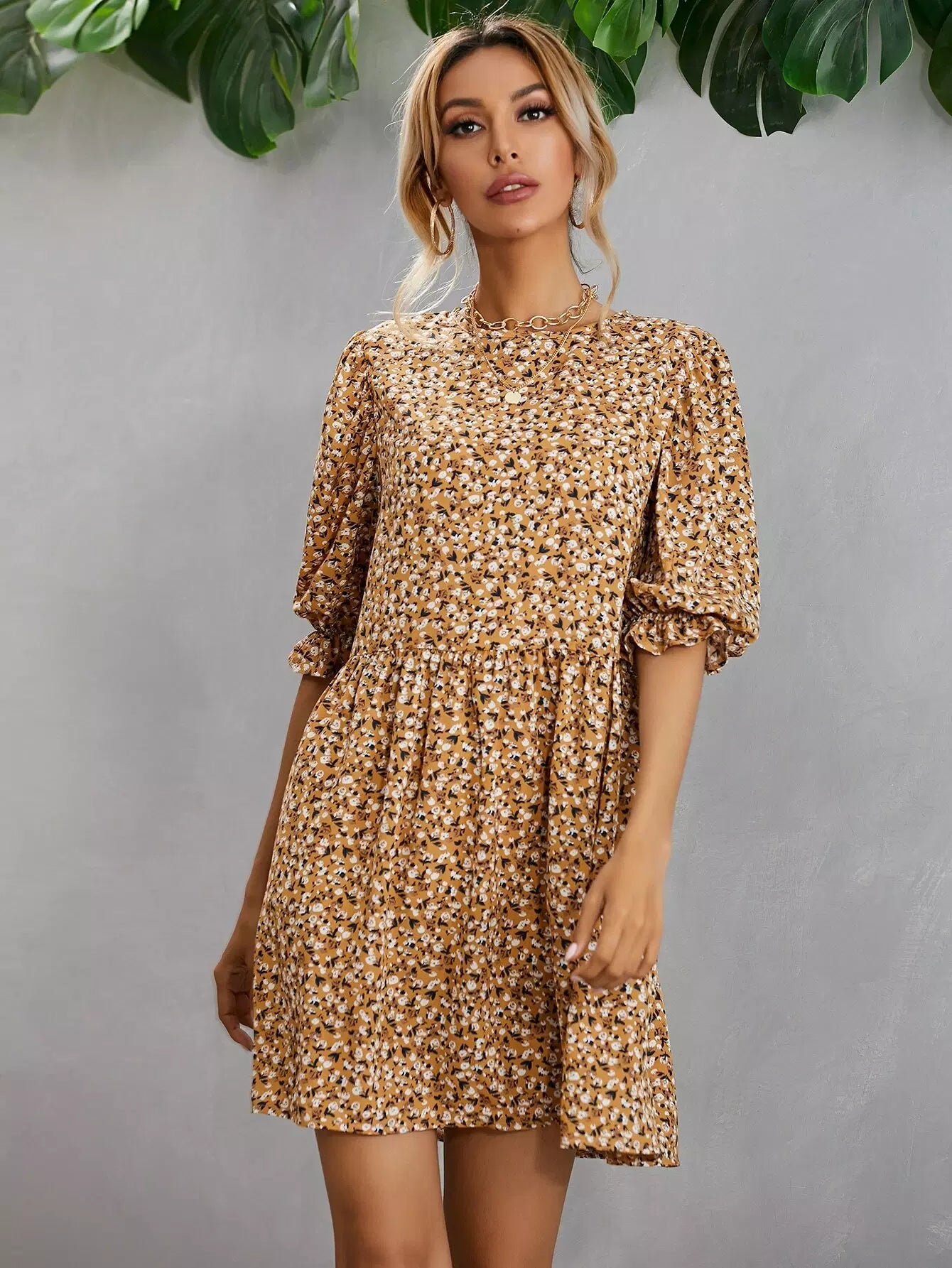 فستان ديتسي بأكمام منفوشة بأزهار منفوشة