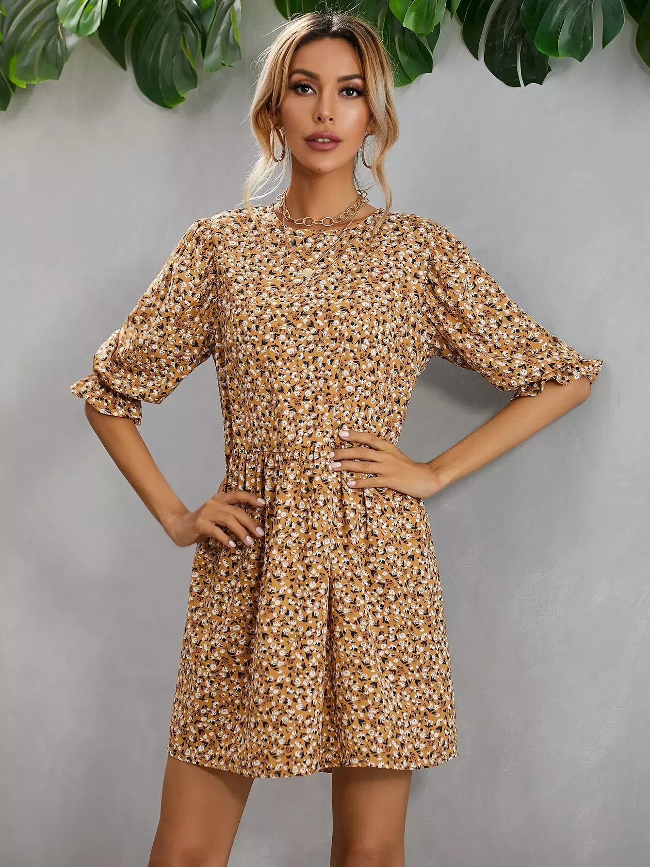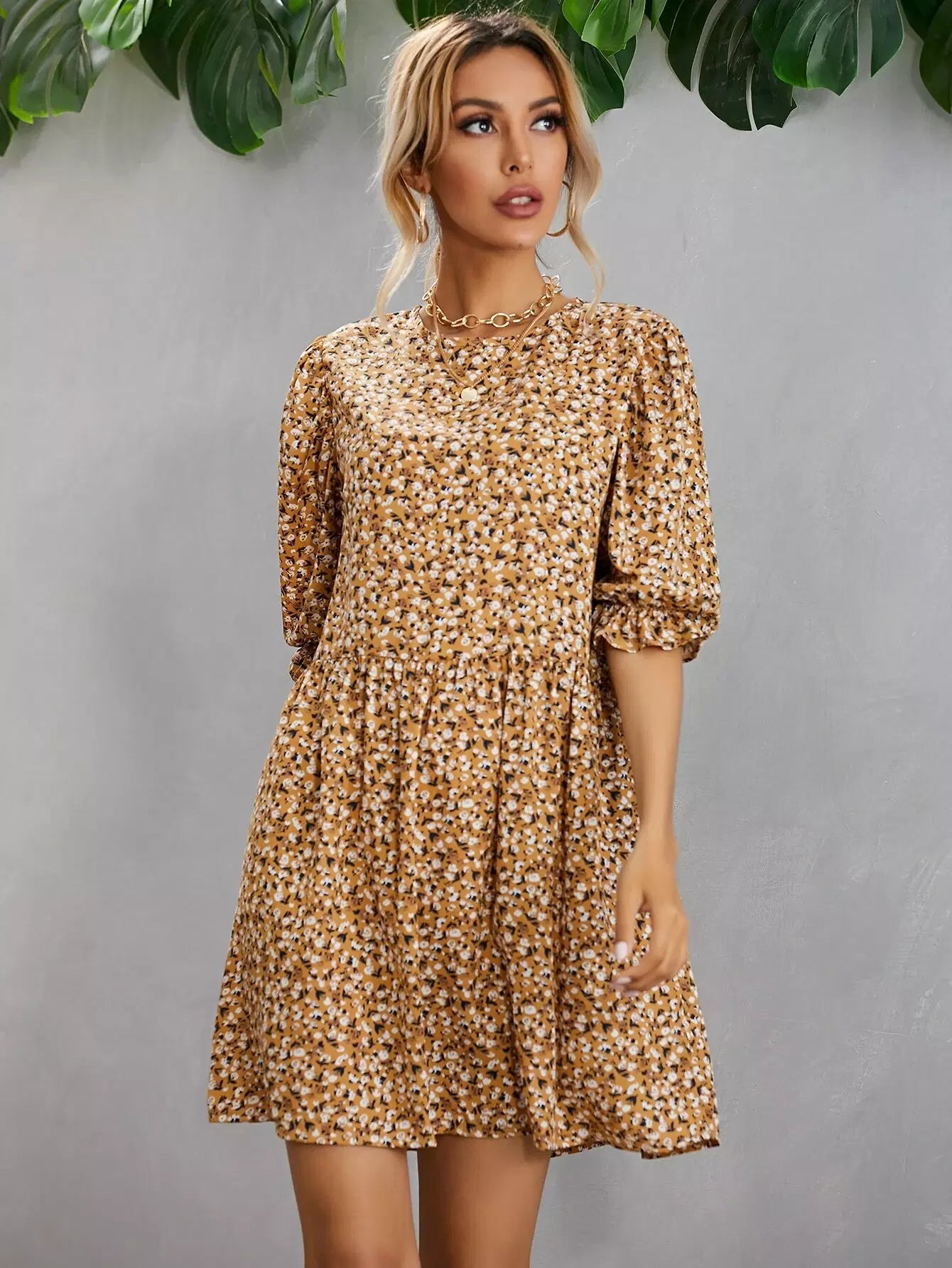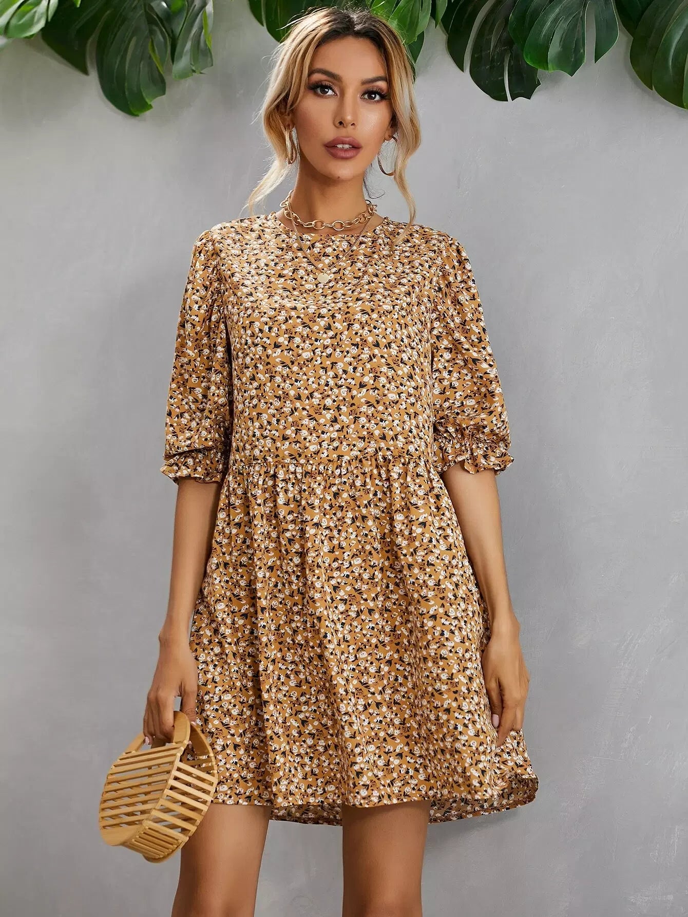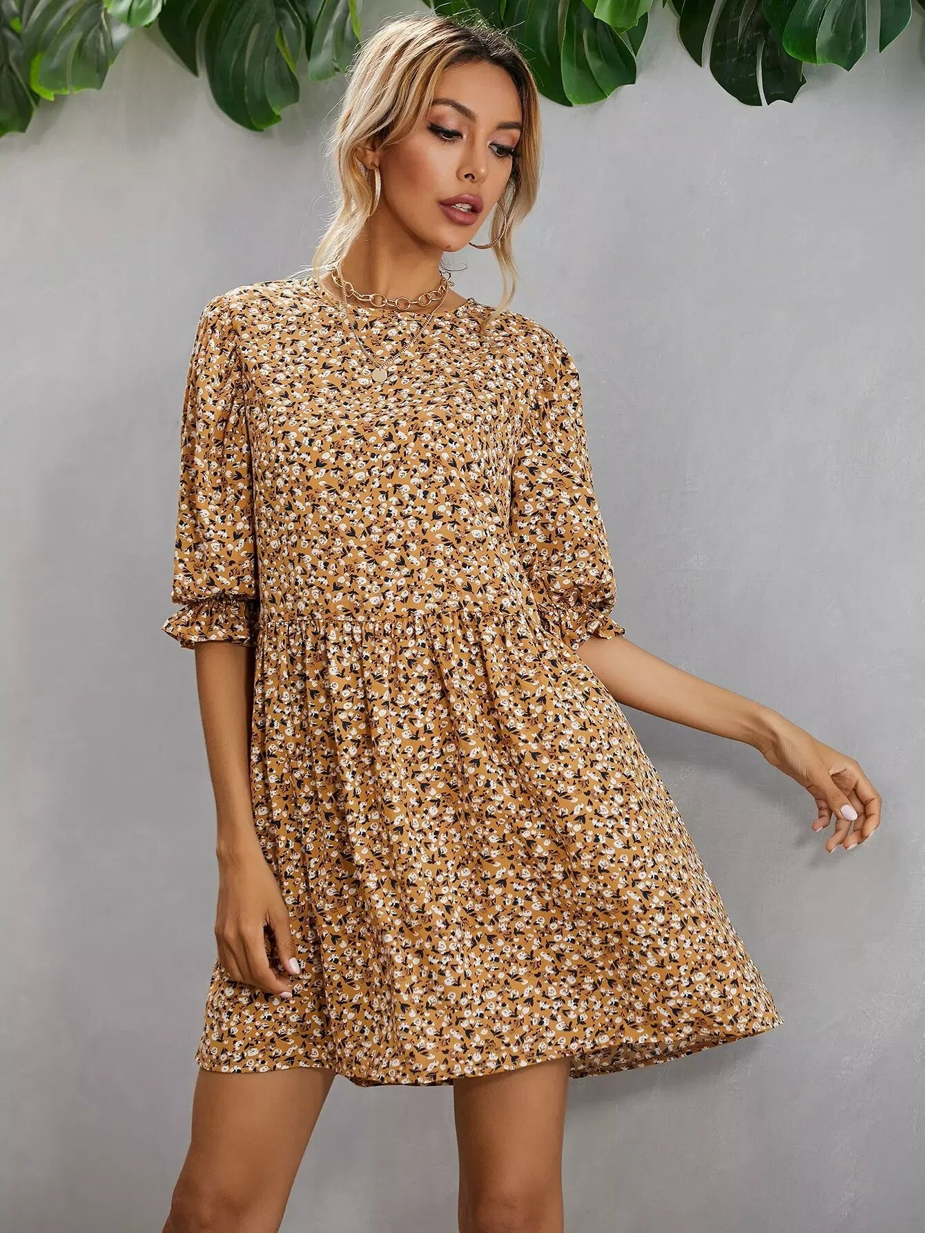 فستان ديتسي بأكمام منفوشة بأزهار منفوشة