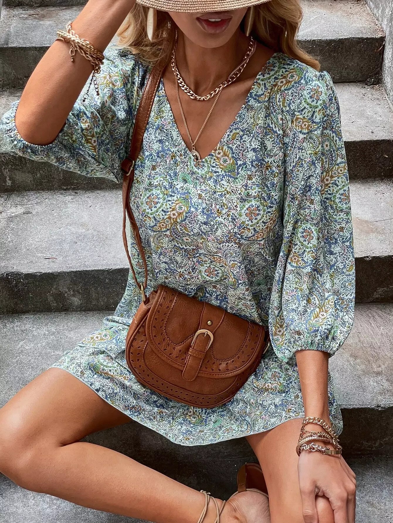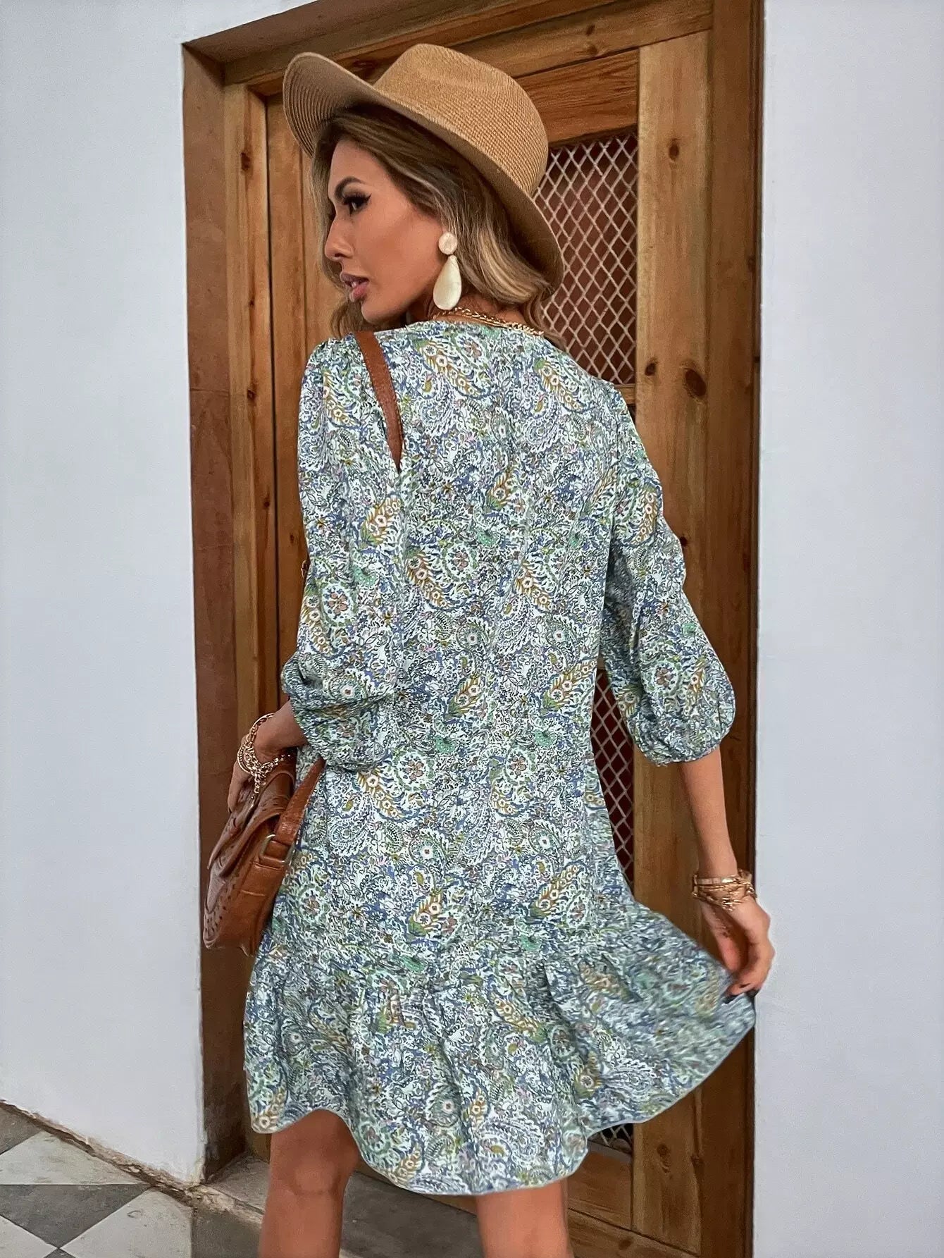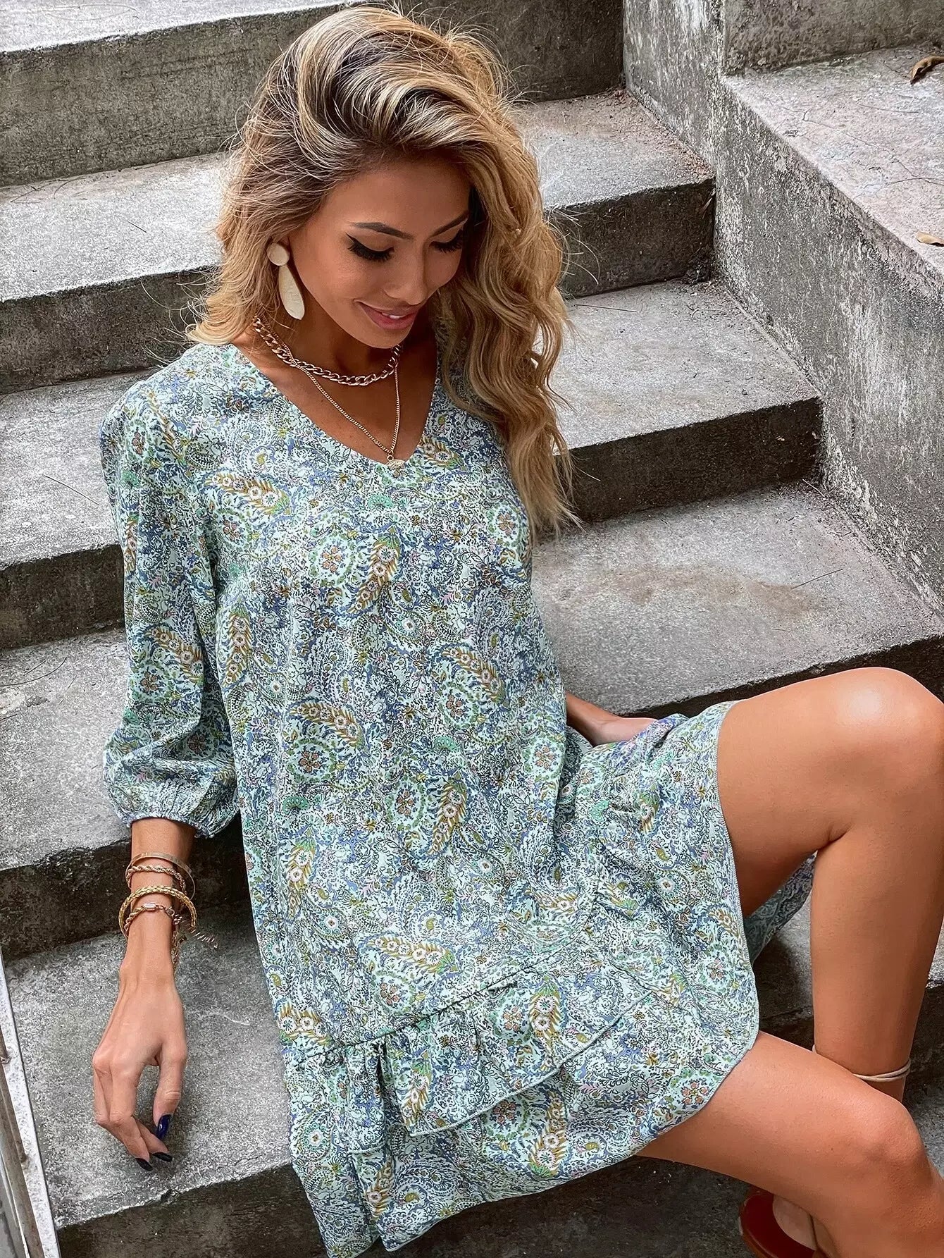 فستان ديتسي بحافة كشكش مزين بالورود