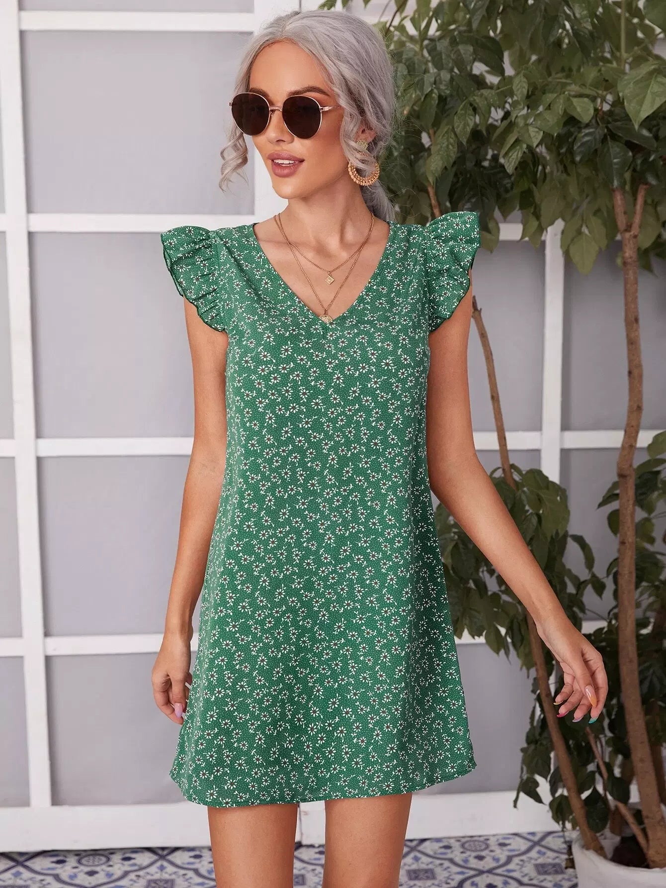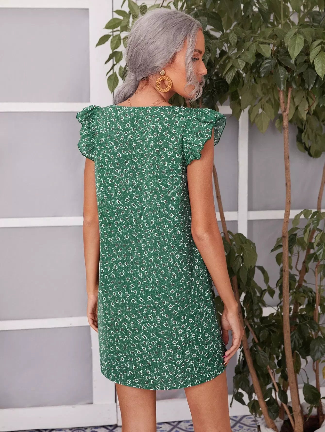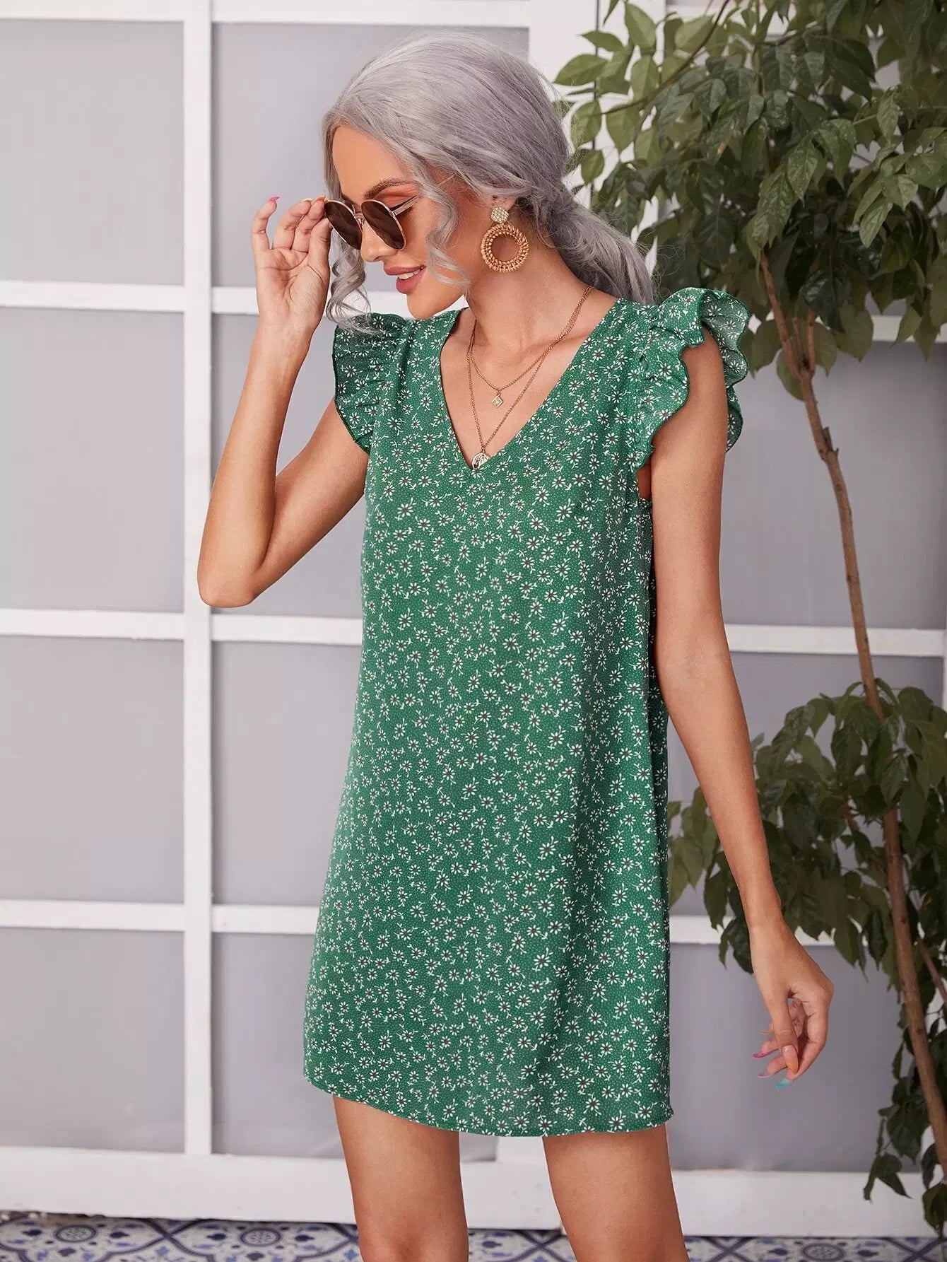 فستان تونيك مزين بكشكشة وزهور صغيرة