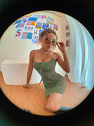 فستان ديتسي مزين بالورود مزين بشيرد من الخلف