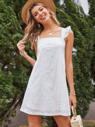 فستان كامي مطرز بتطريزات على شكل كشكش