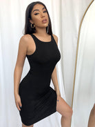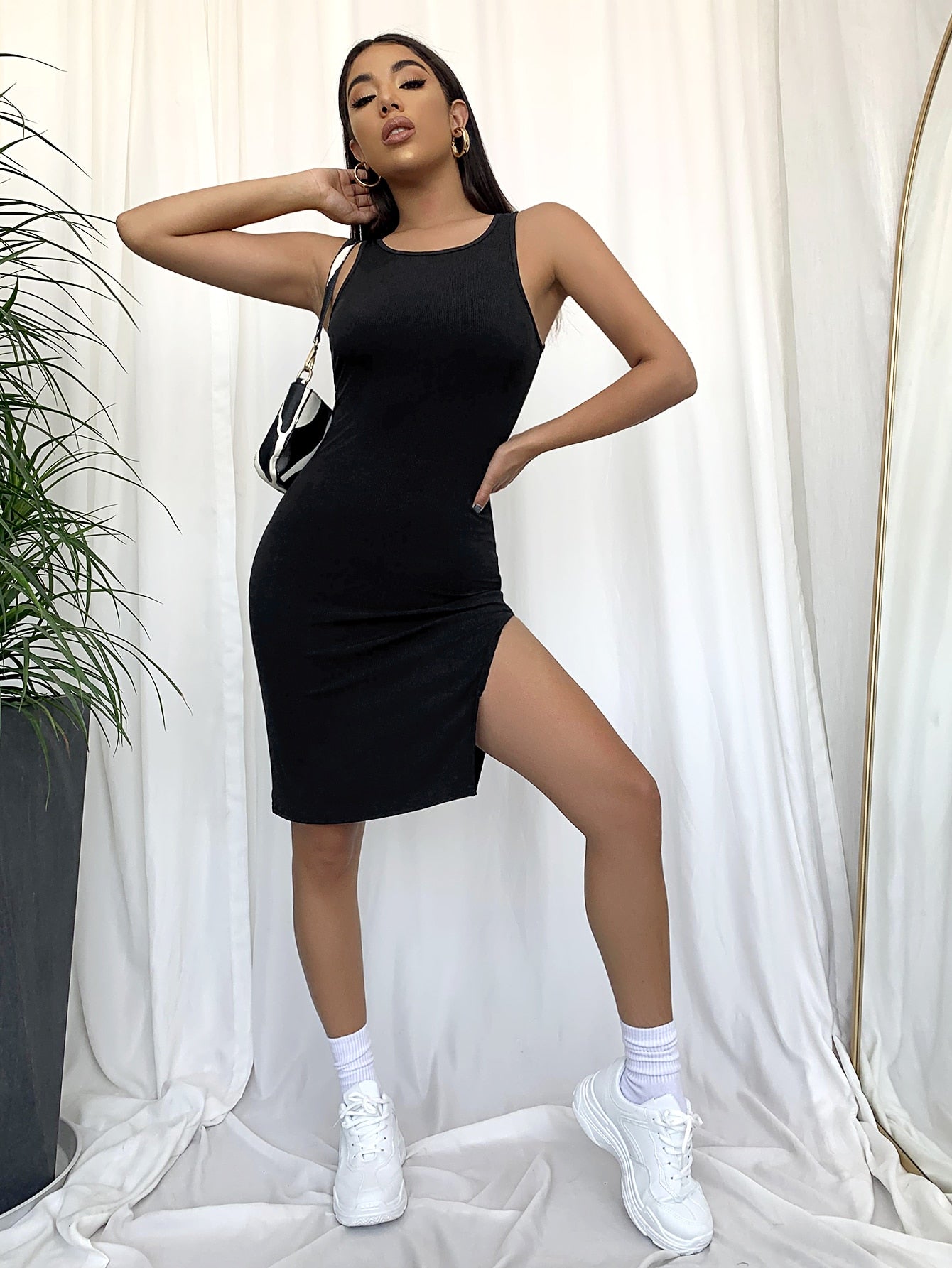 Scoop Neck Asymmetrical Hem Rib-knit Bodycon Dress