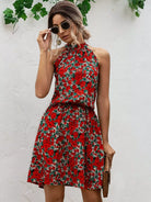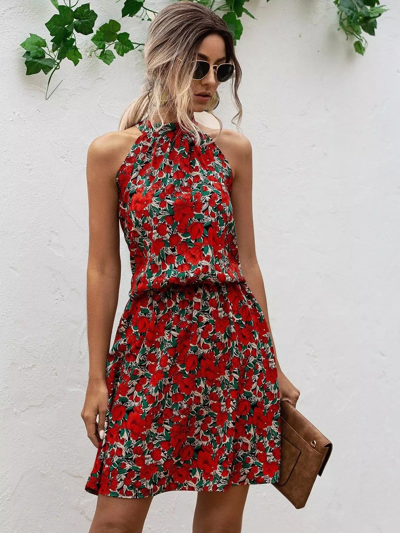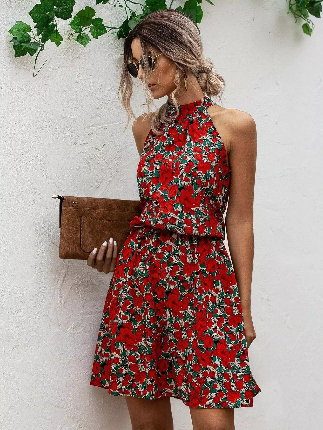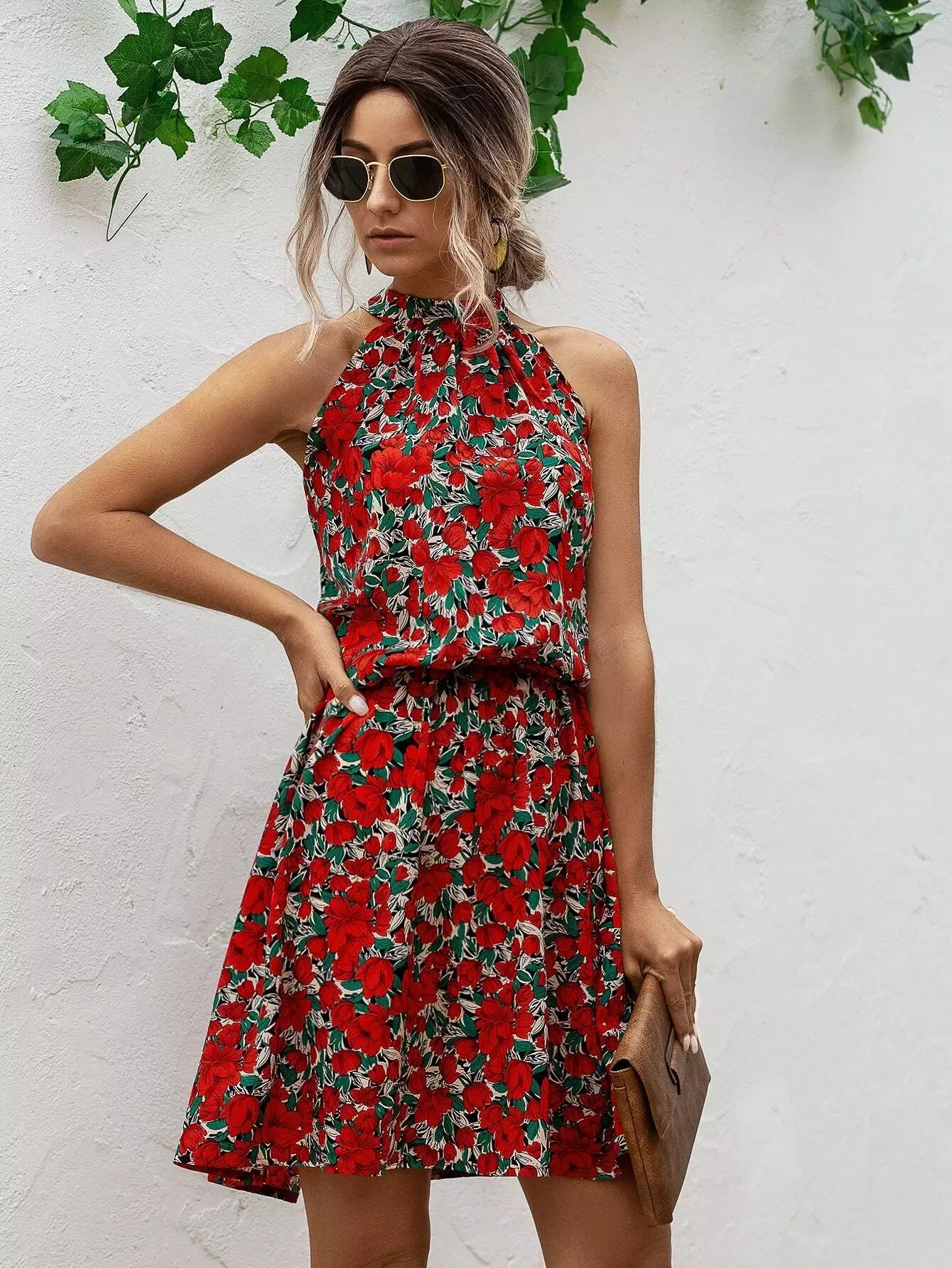 فستان بطبعة زهور مطبوع على شكل حرف A