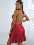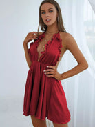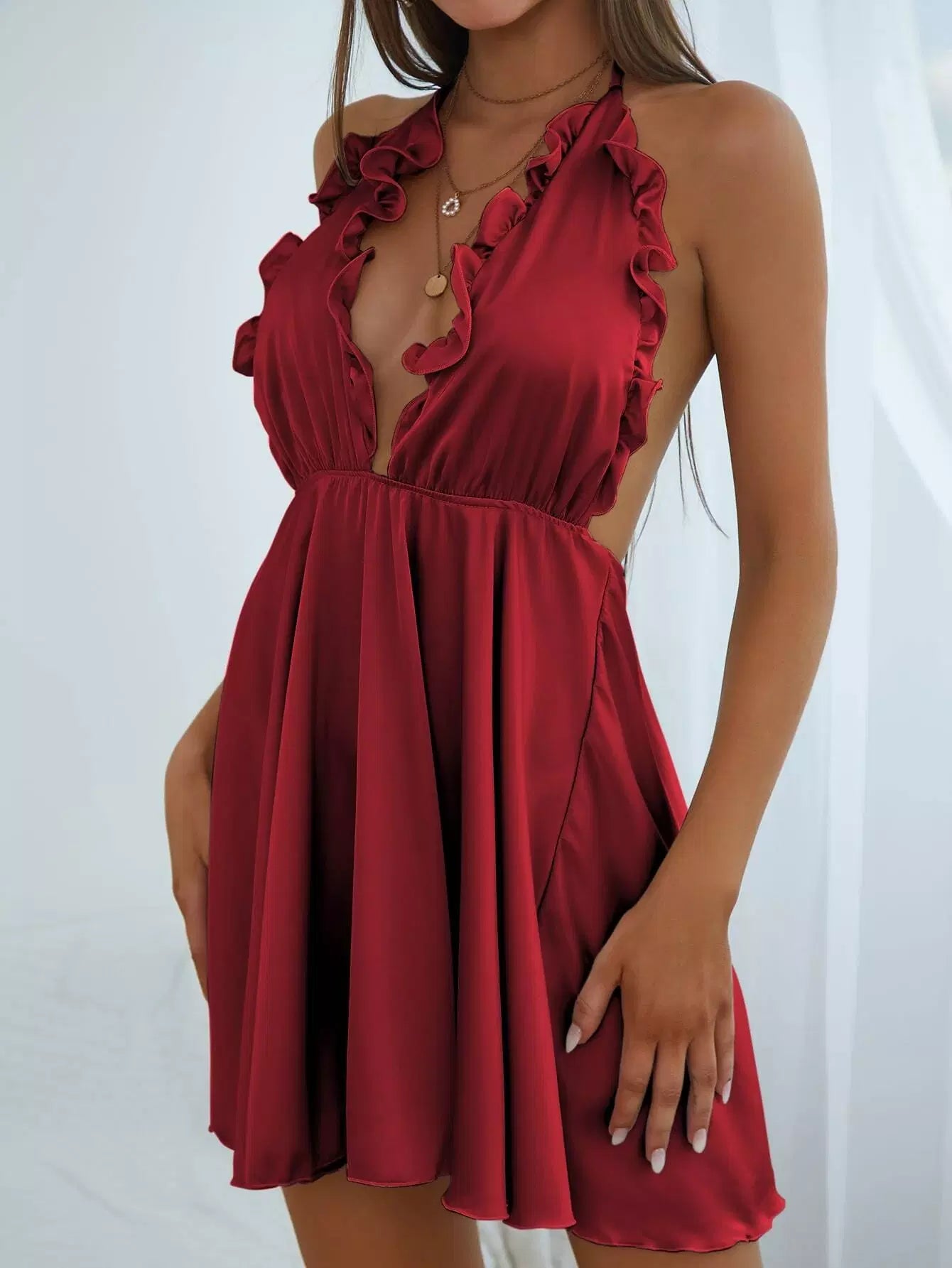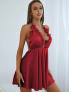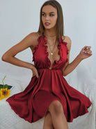 فستان برقبة رقبة رسن بفتحة رقبة مكشكشة بدون أهداب