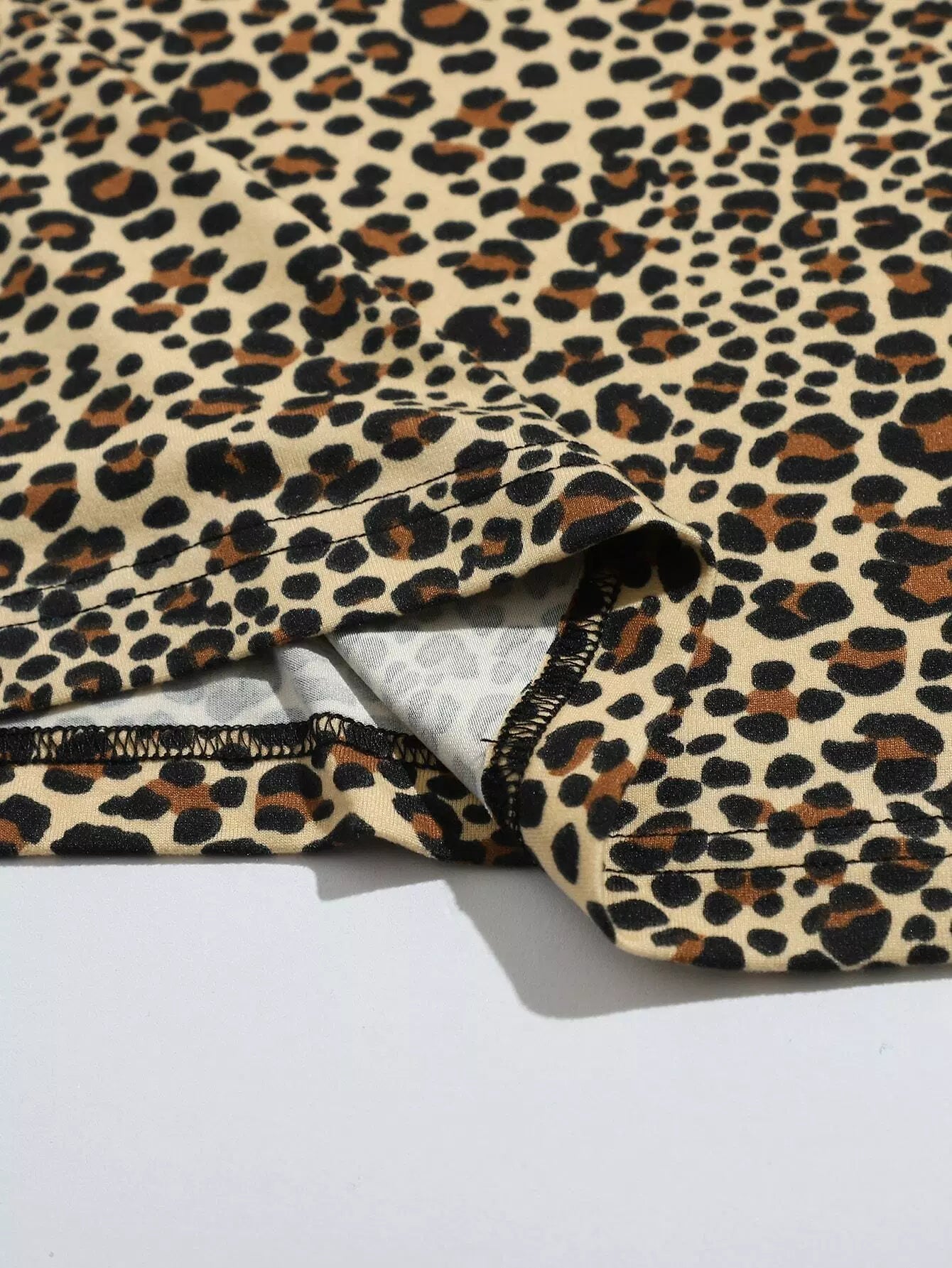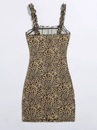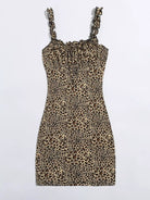 للنساء - فستان بنقشة الفهد وحزام وعقدة أمامية مكشكشة