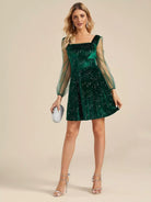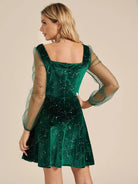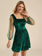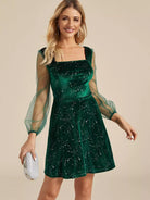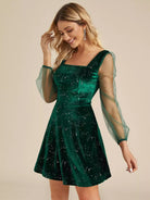 فستان مخملي شبكي مخملي شفاف بطبعة مجرة بلون مغاير