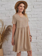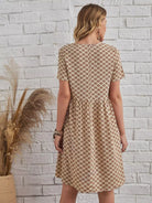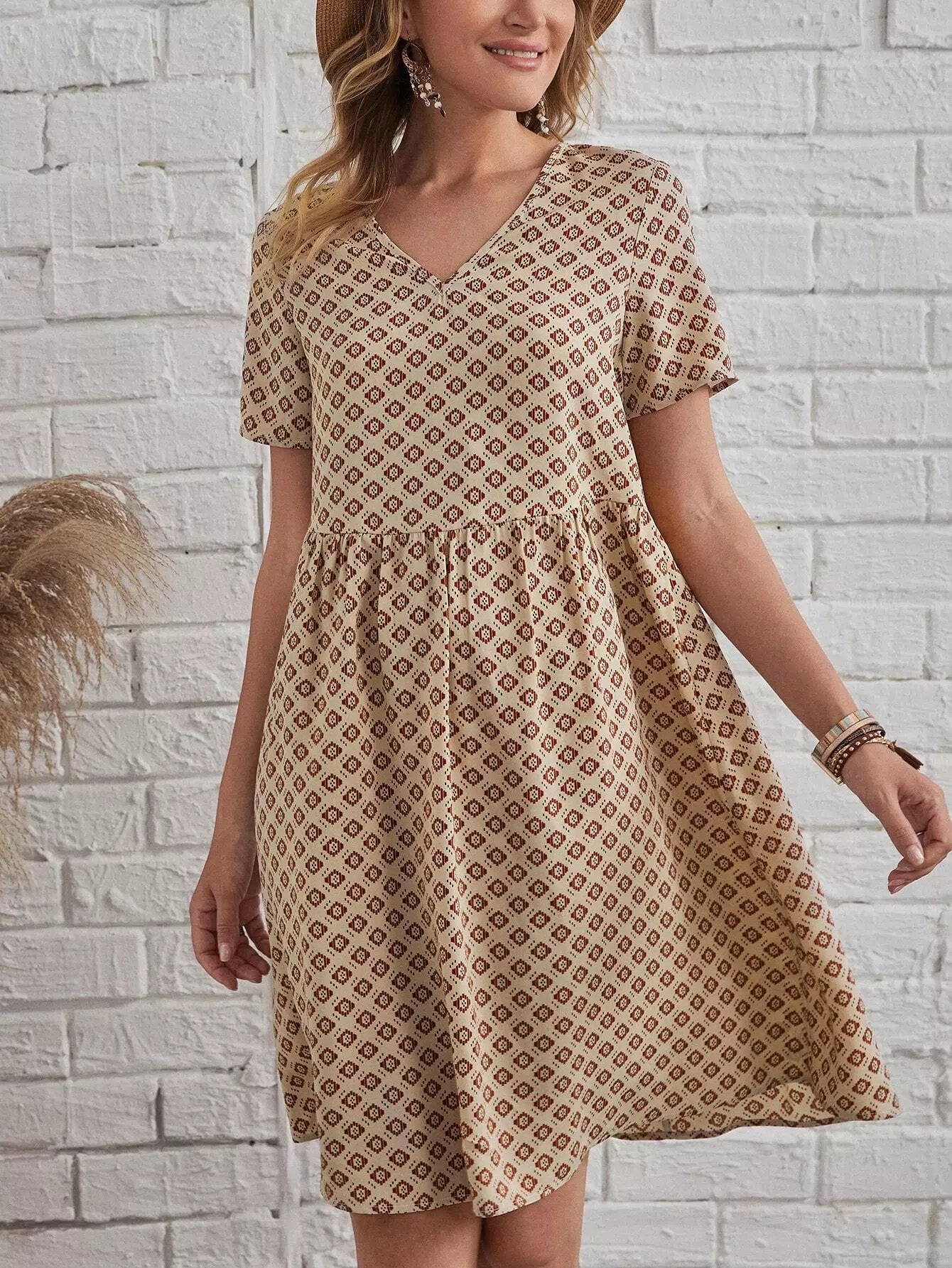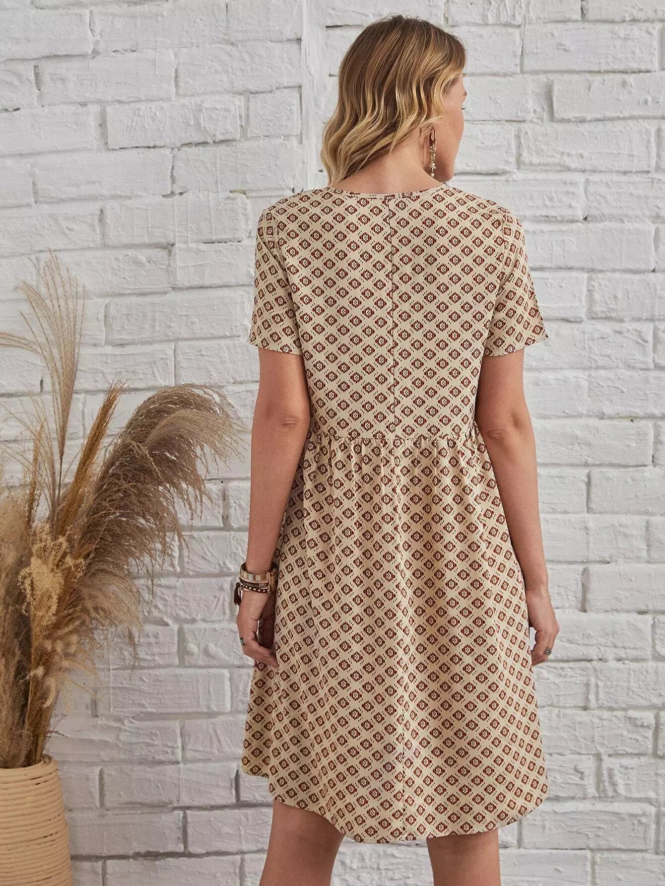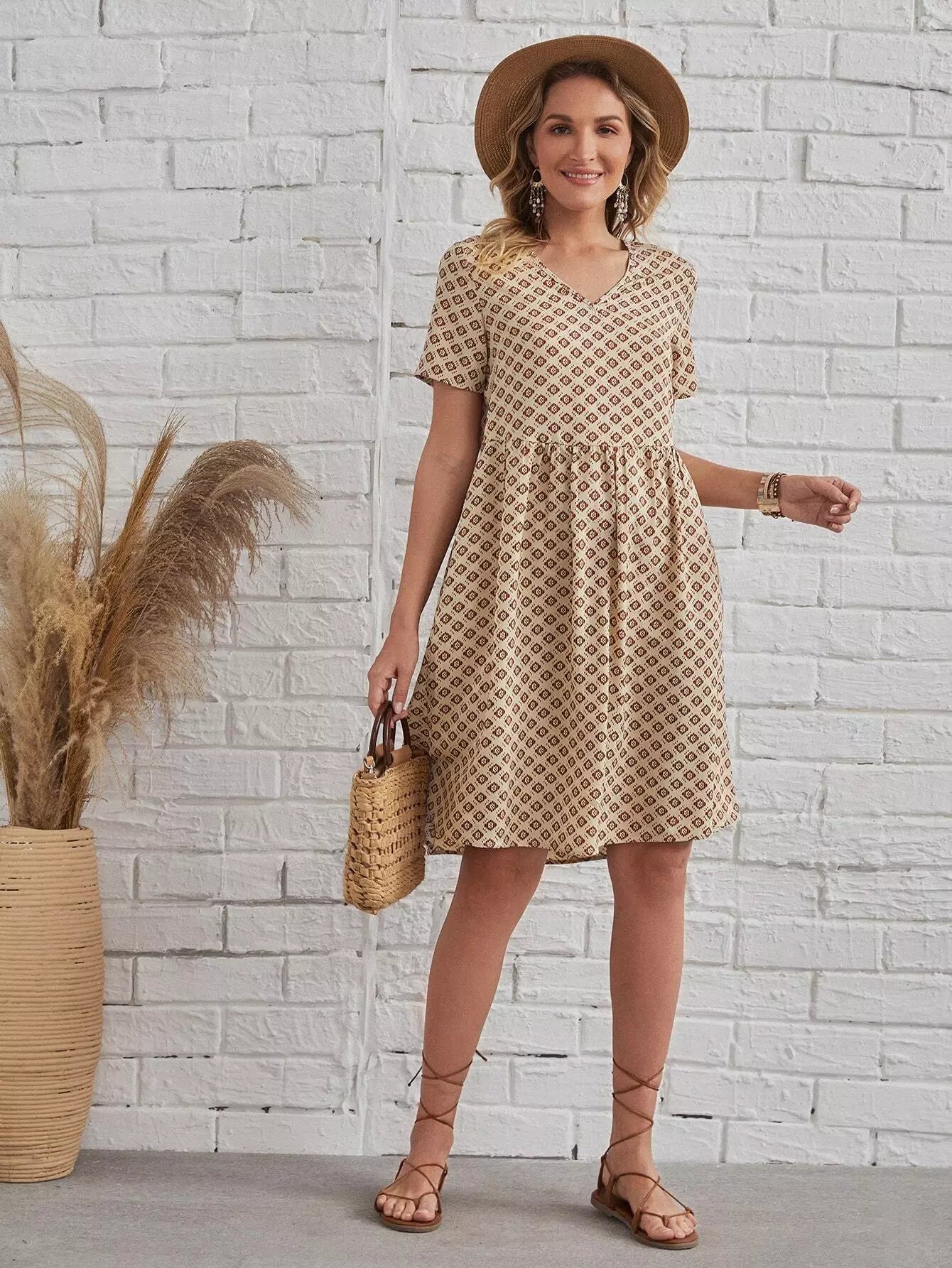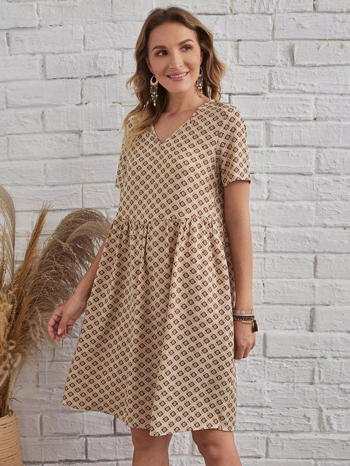 فستان سموك برقبة على شكل حرف V مطبوع على شكل جيو