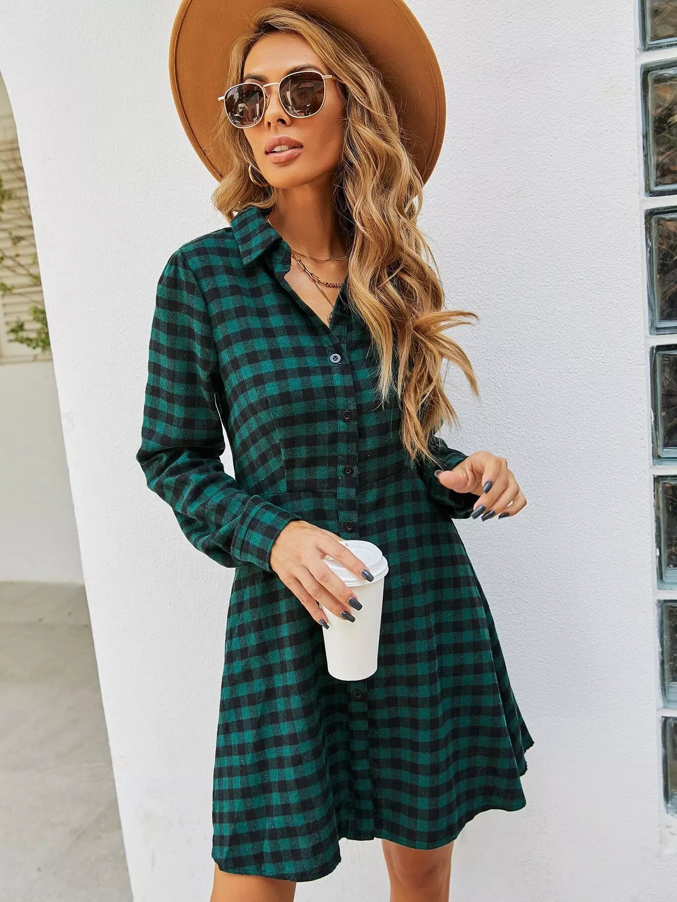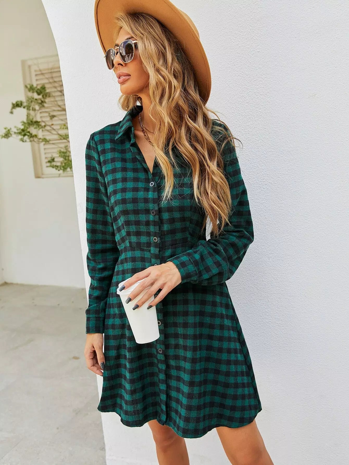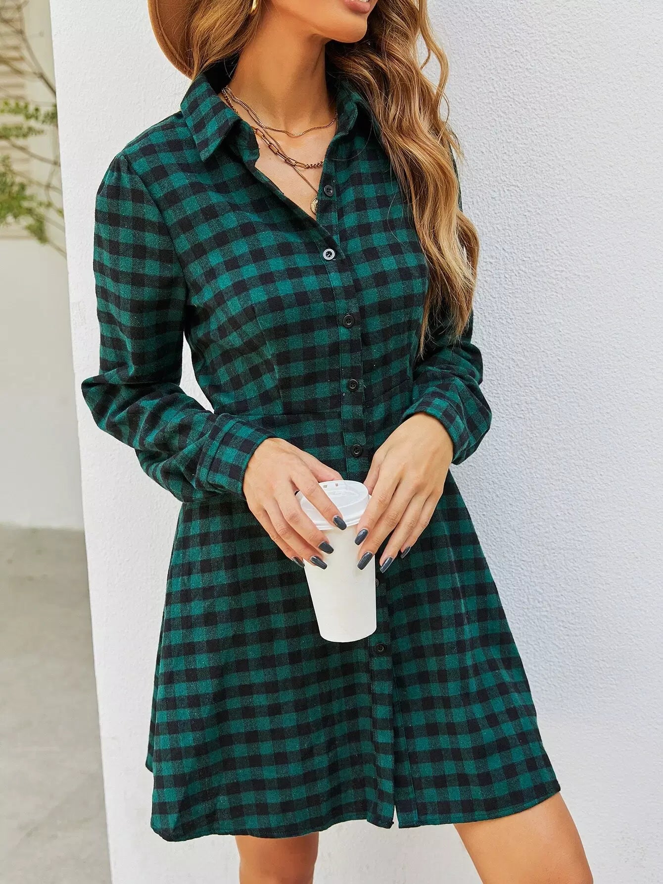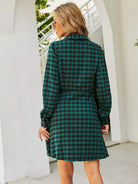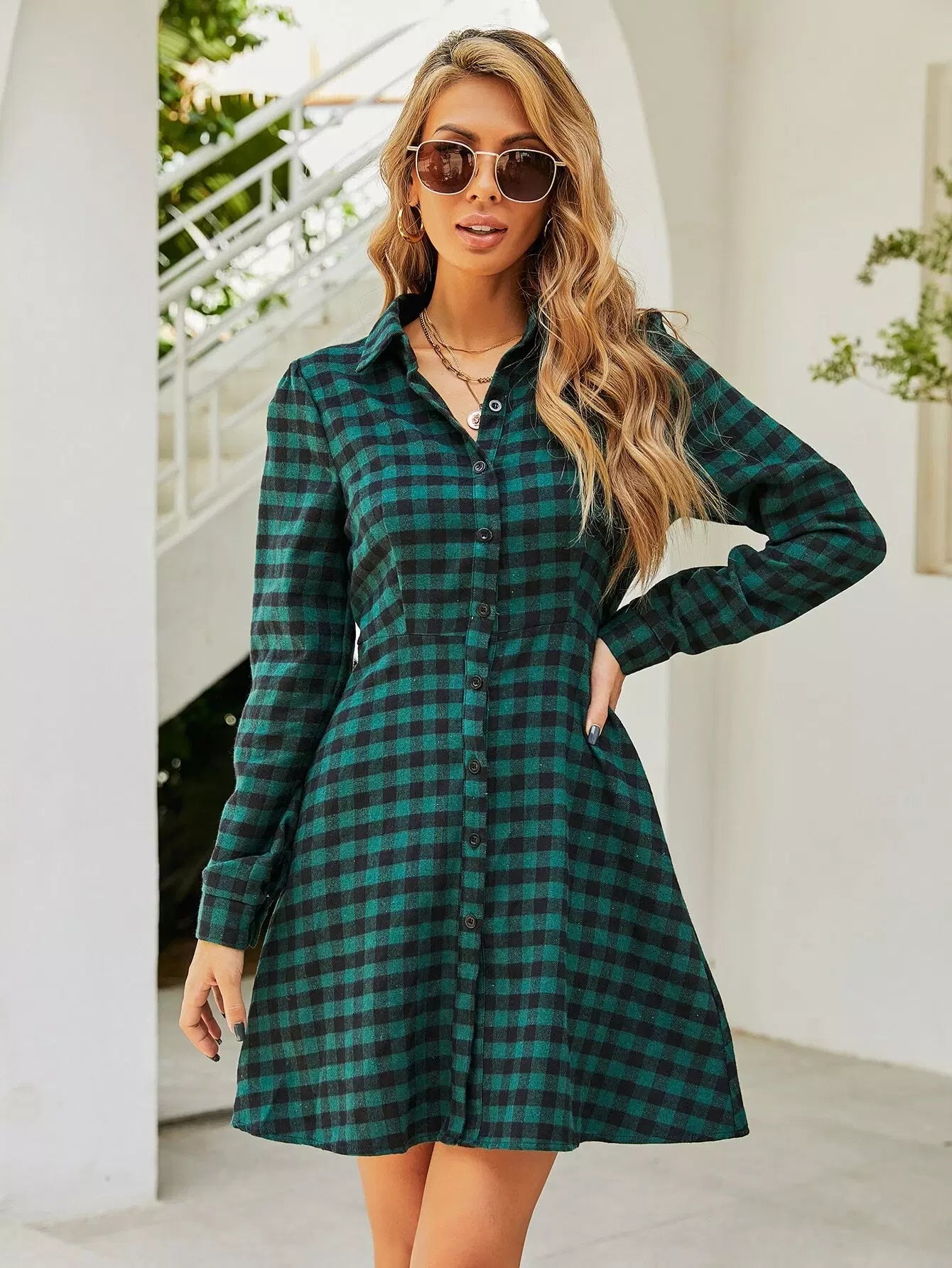 فستان قميص بطبعة قماش قطني بأزرار فوق الزر