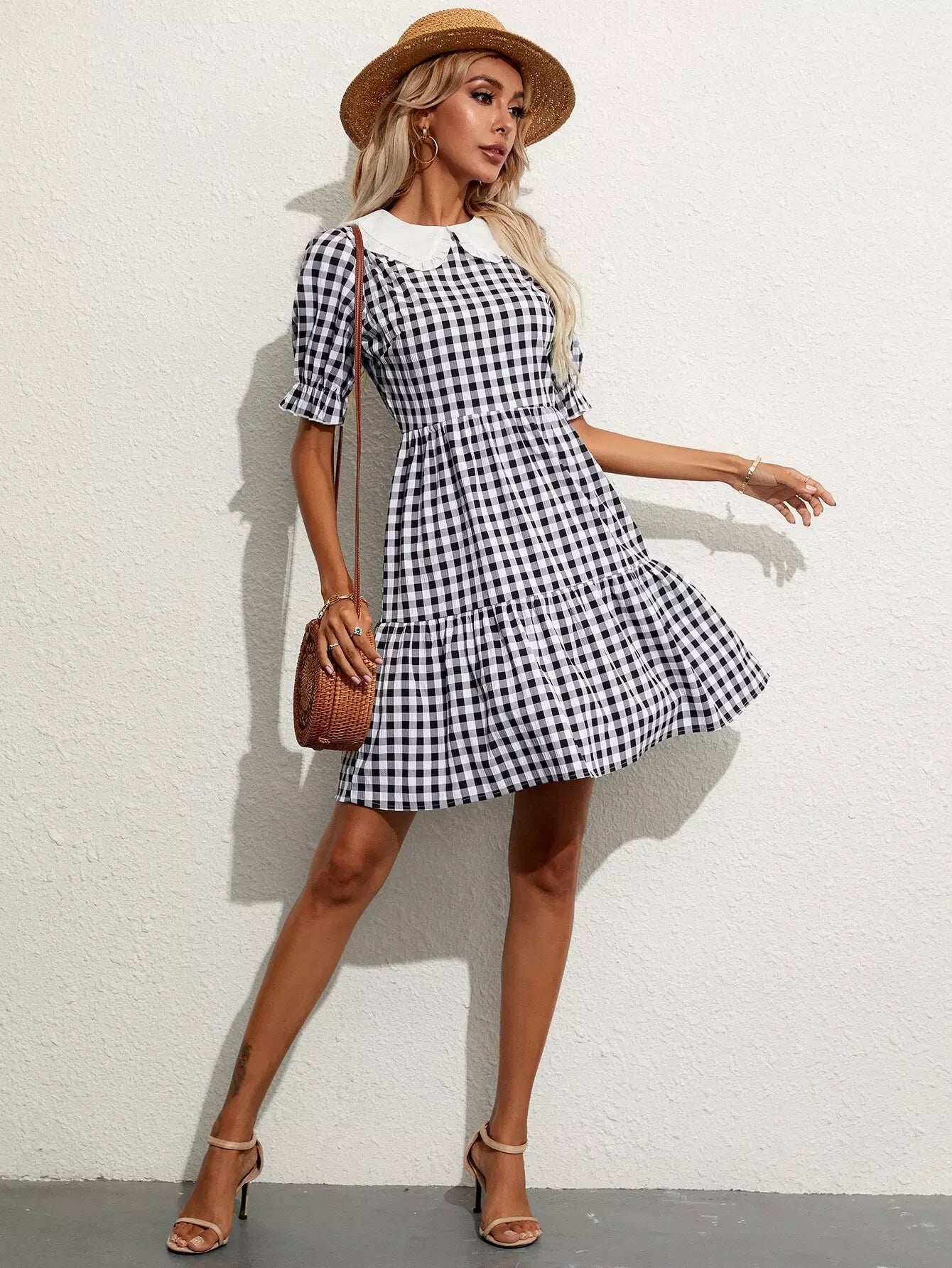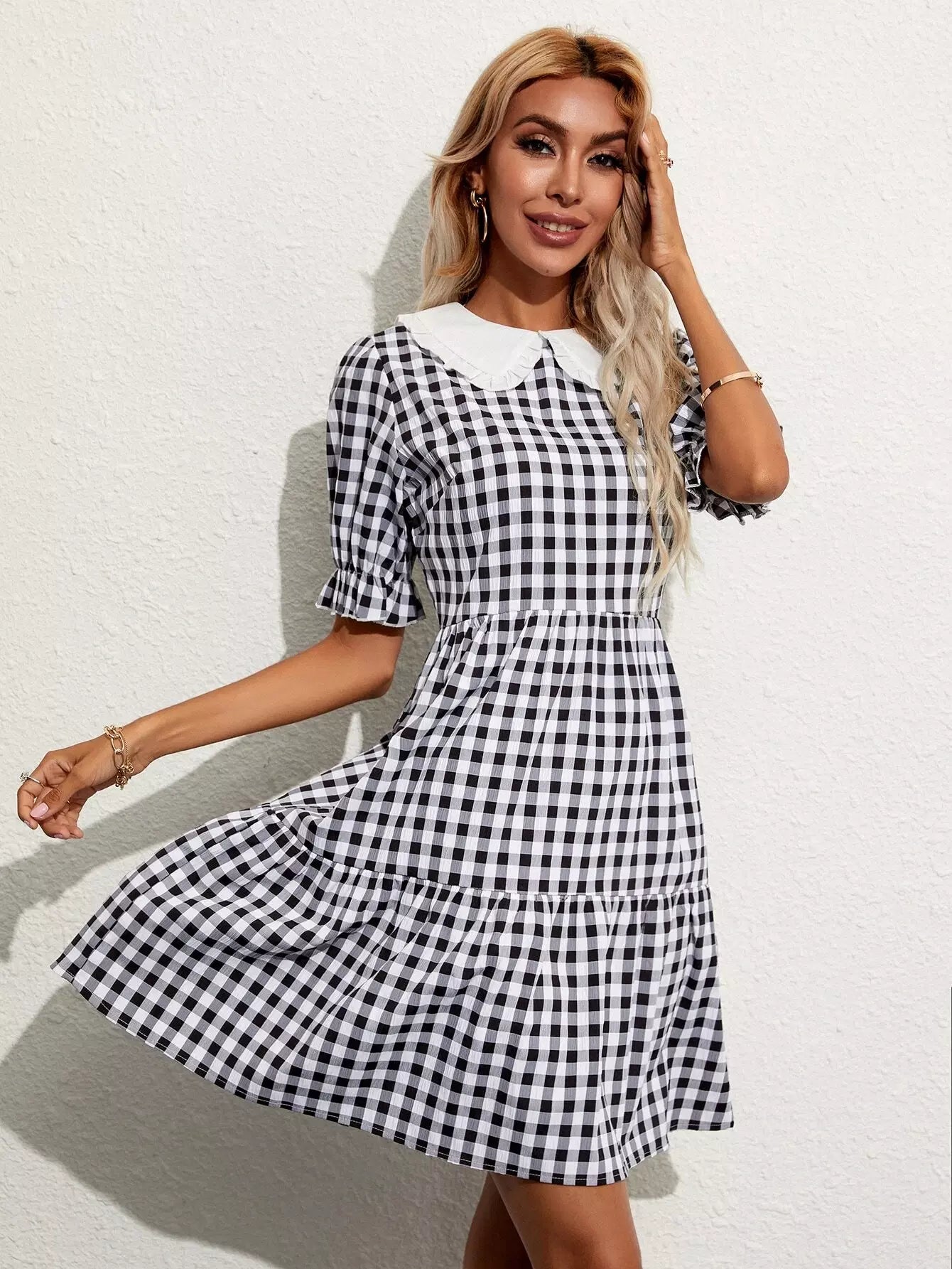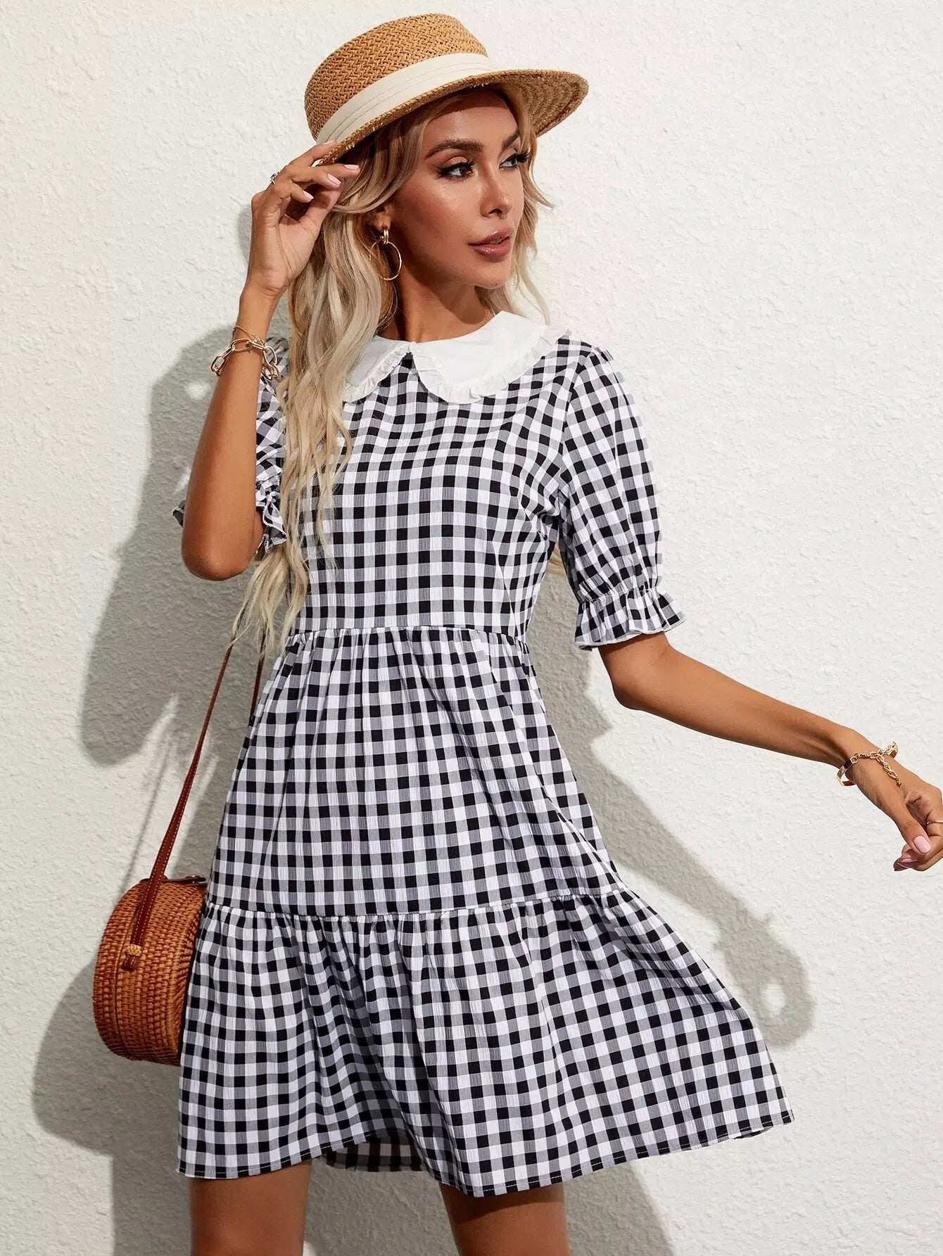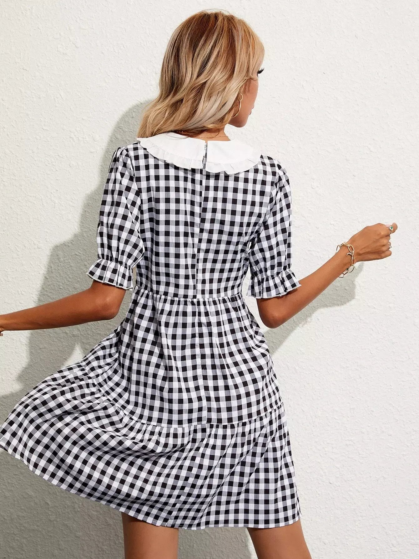 فستان بياقة بيتر بان من القماش القطني بحافة كشكش من القماش القطني