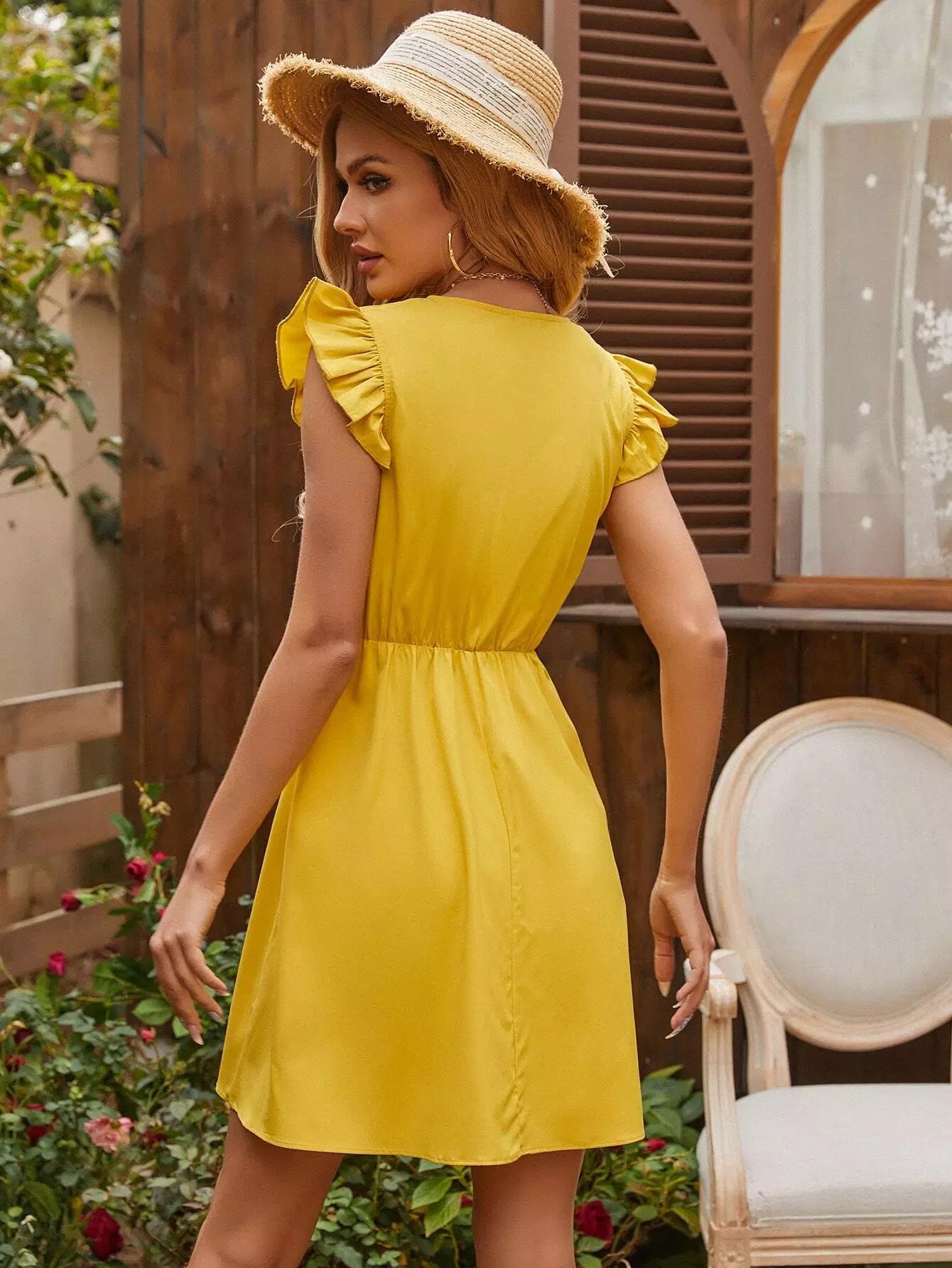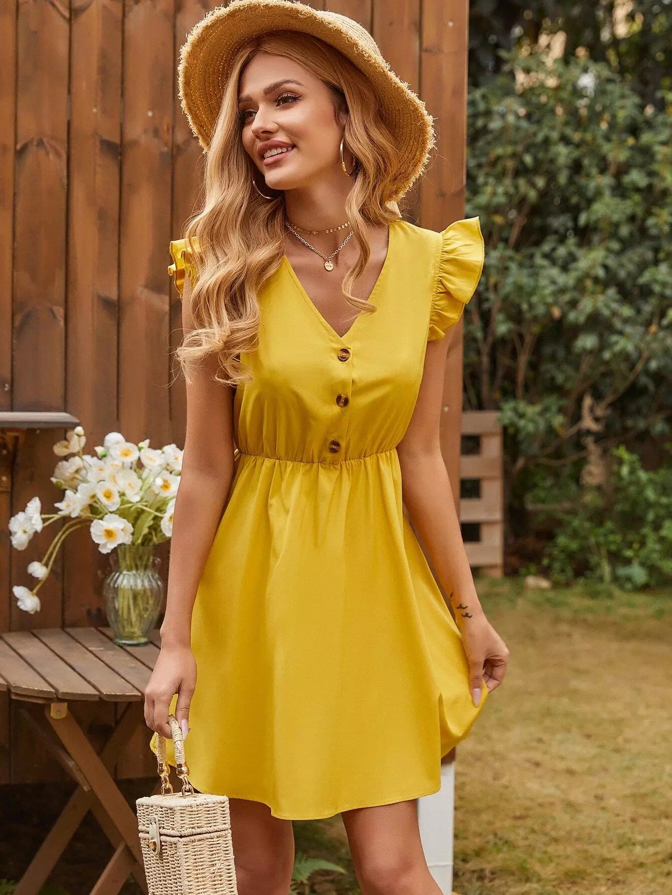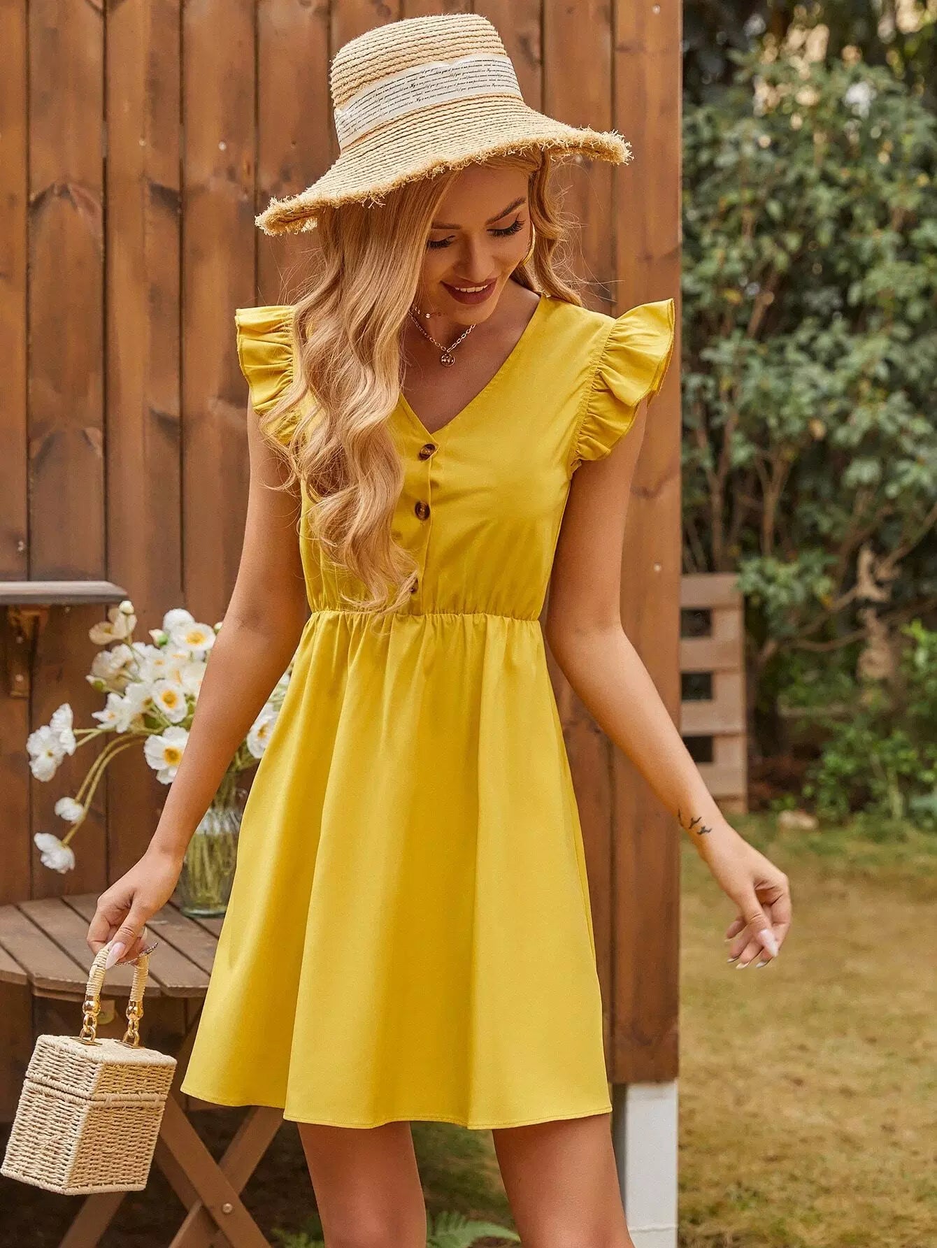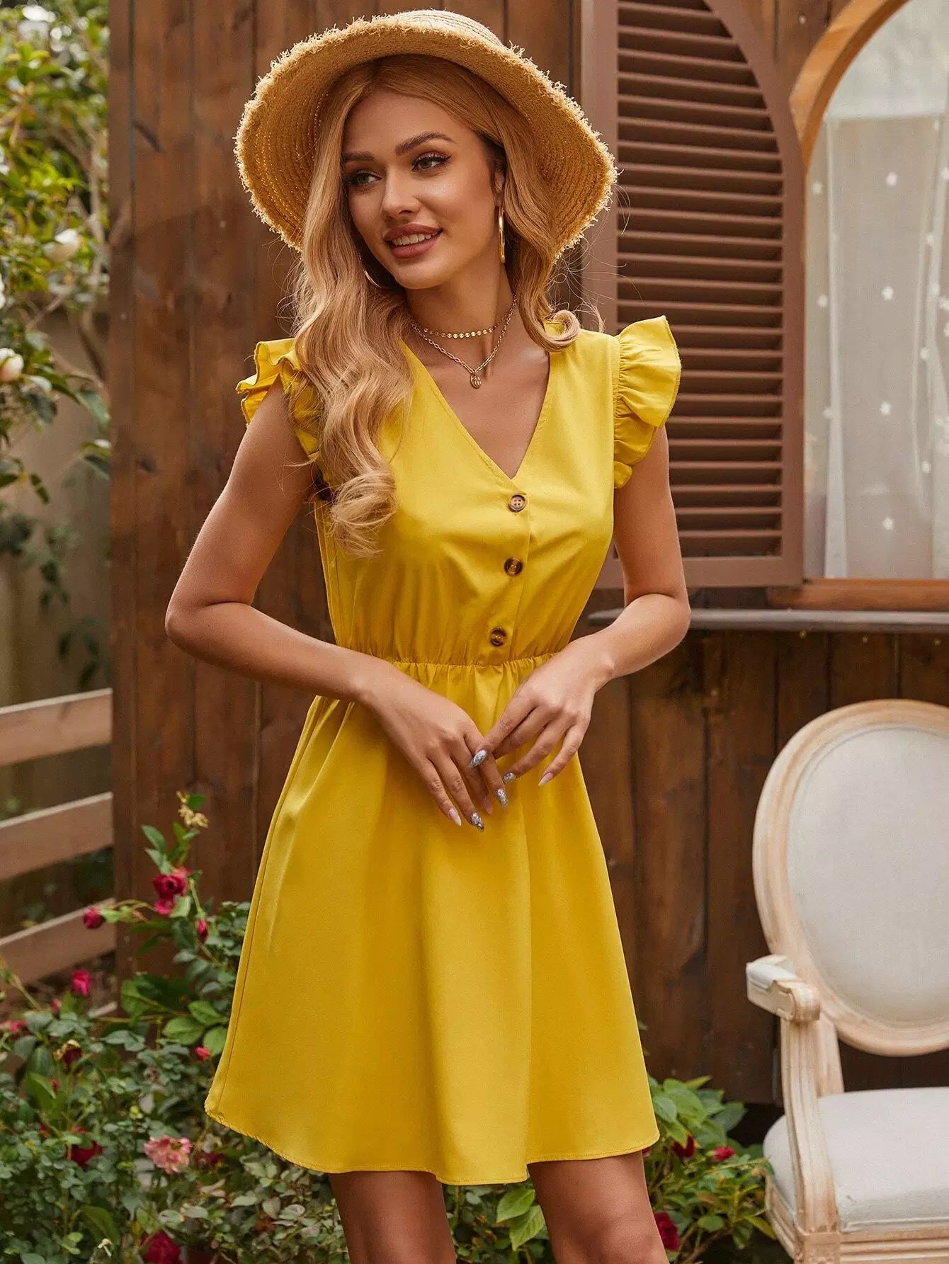 فستان بنصف زر بحافة كشكش على شكل حرف A