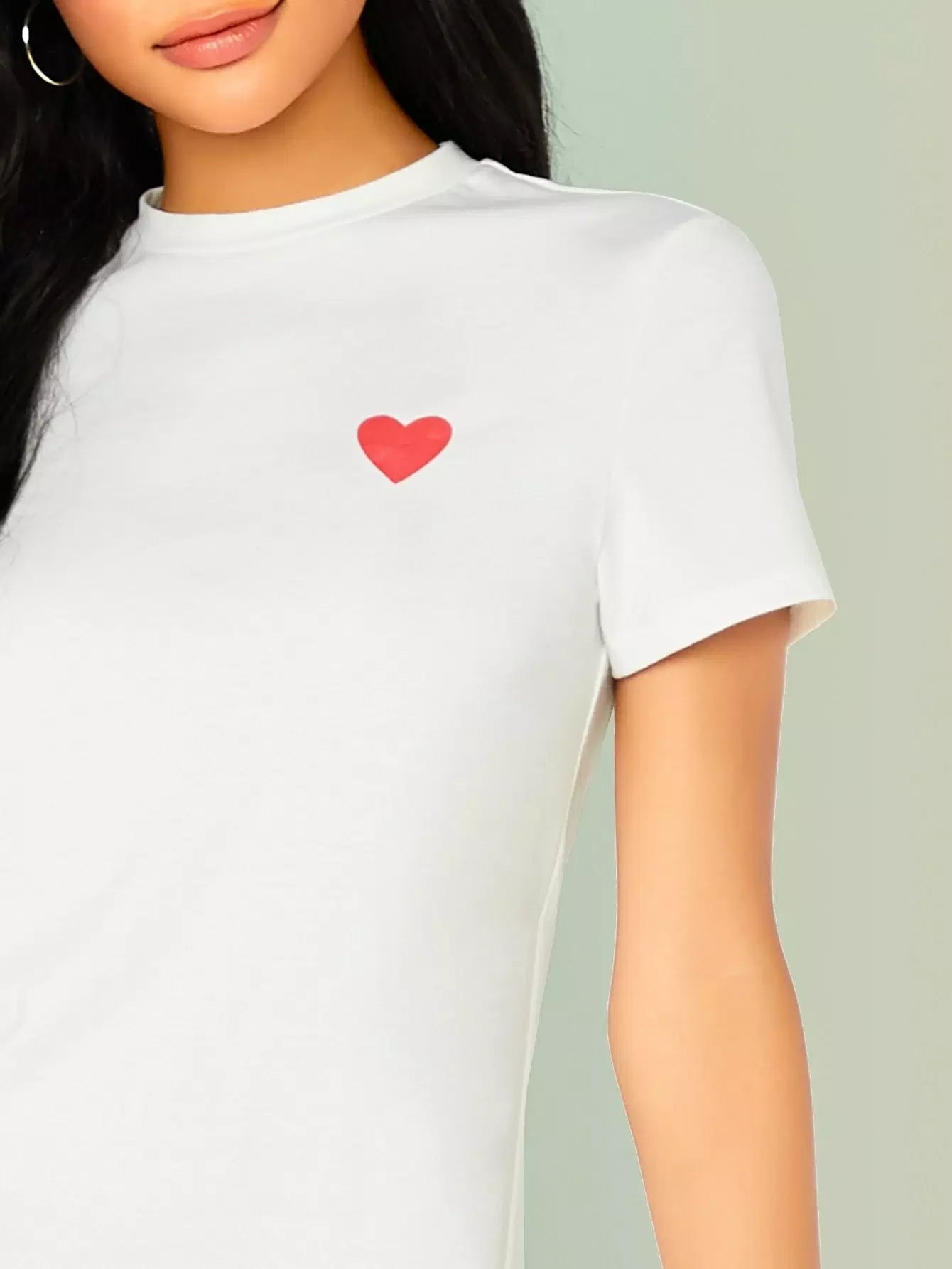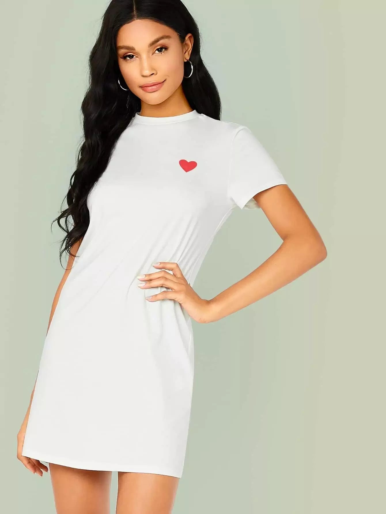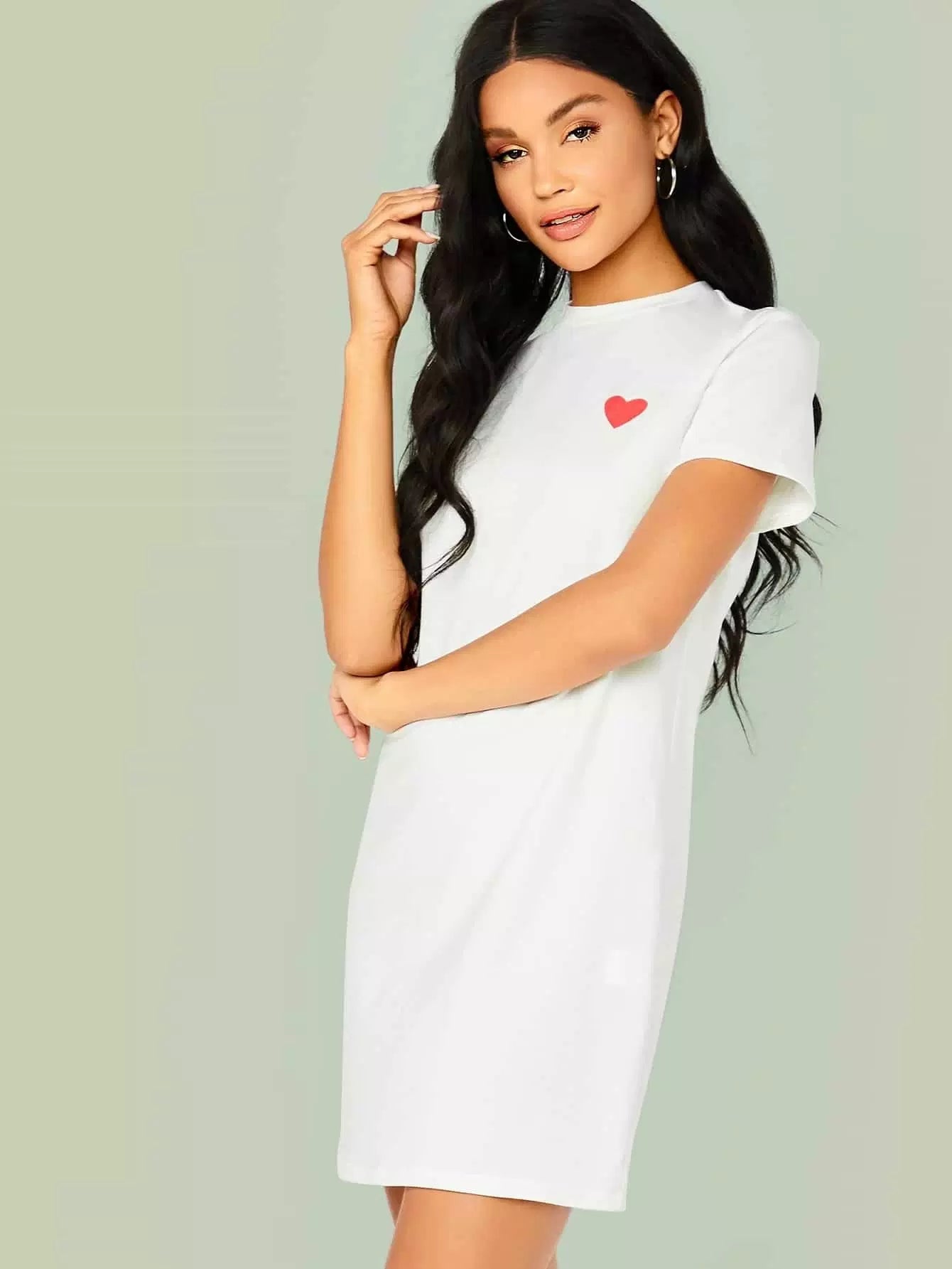 فستان تي شيرت قصير جرافيك على شكل قلب