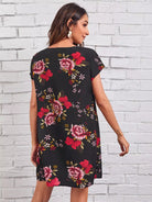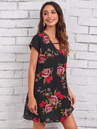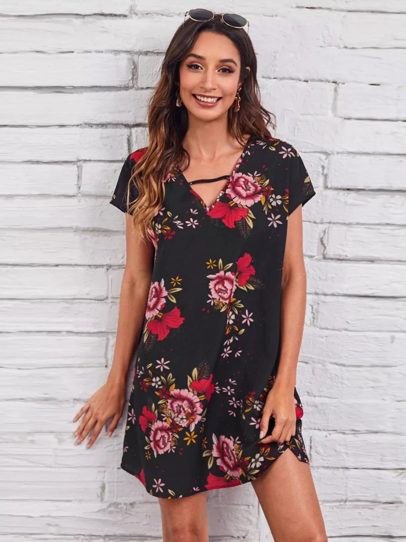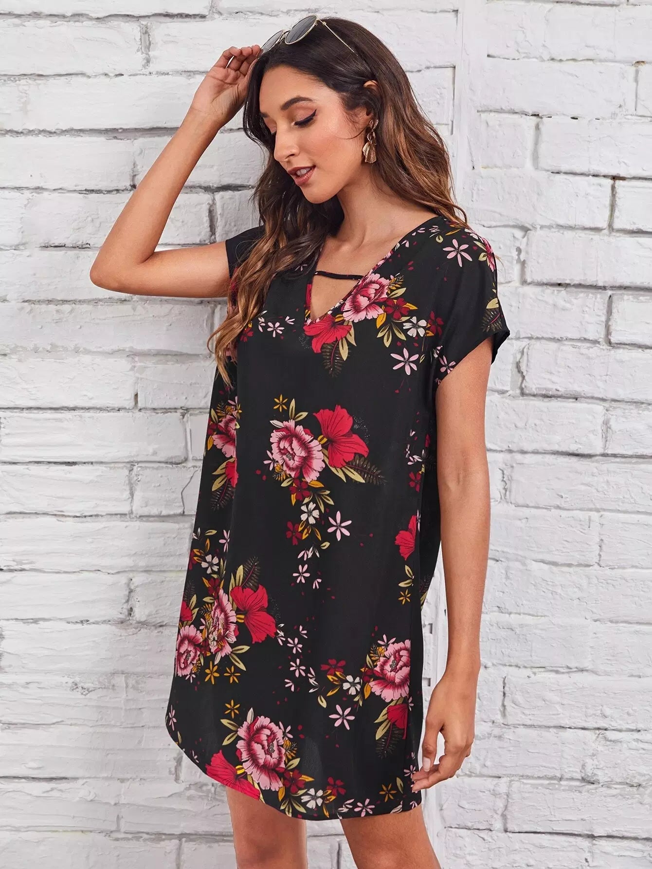 فستان بطبعة زهور بفتحة رقبة بفتحة عنق