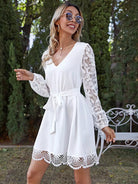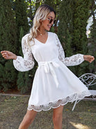 للنساء - فستان بحزام ذاتي وأكمام من الدانتيل