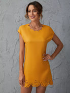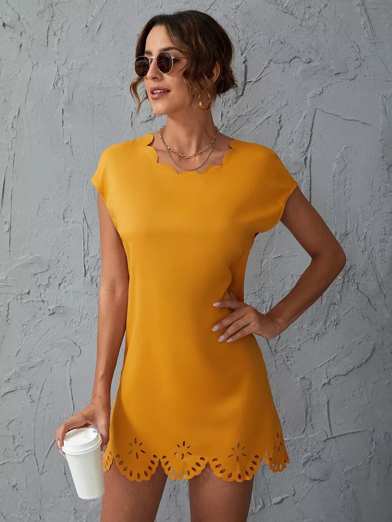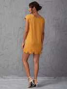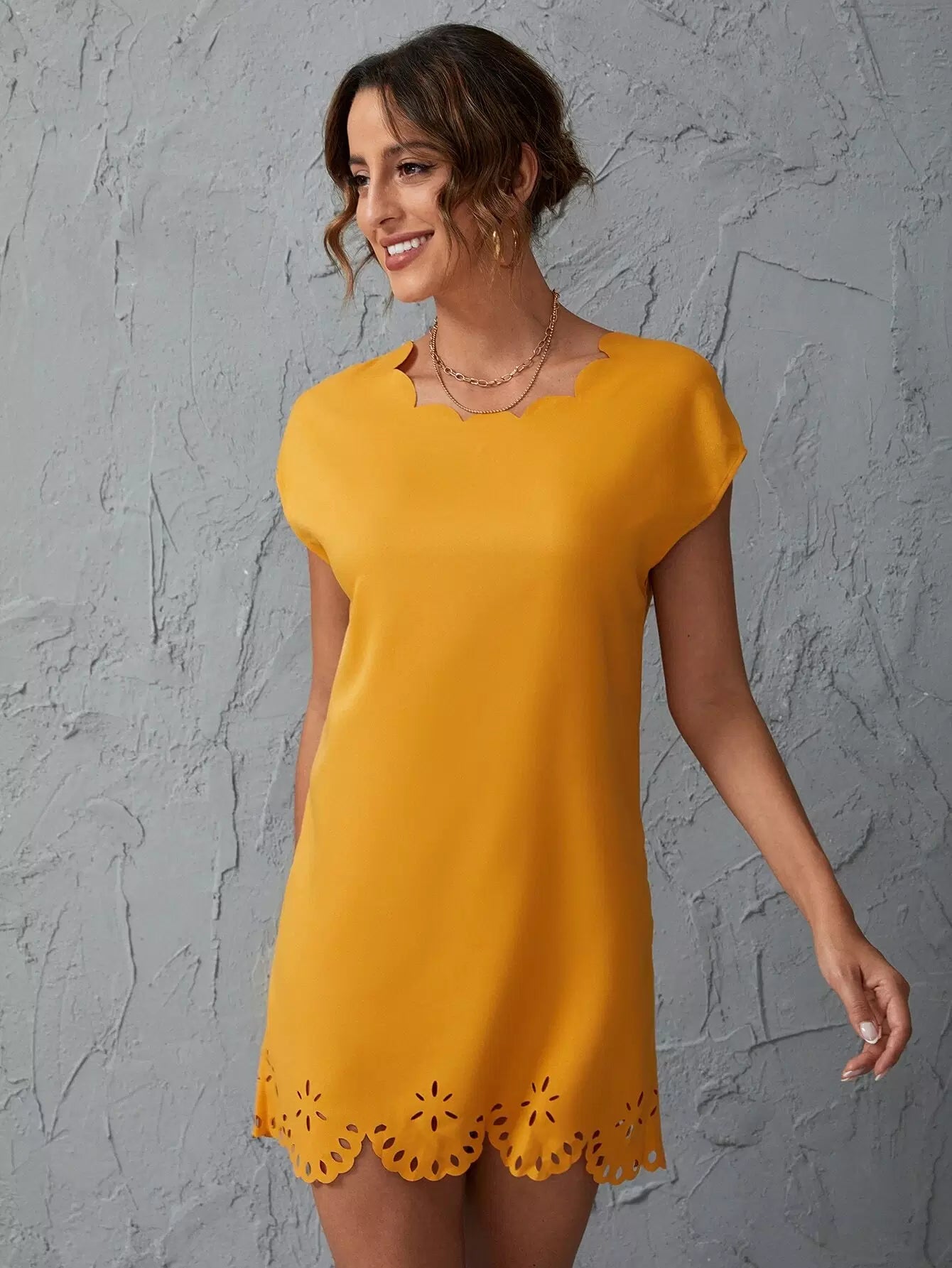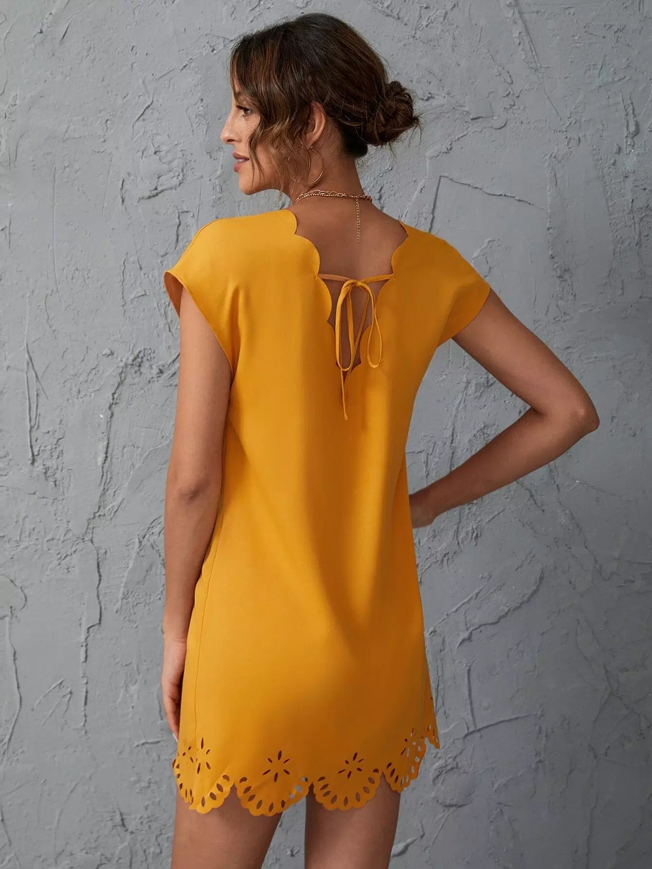 فستان بقصّة ليزر بحافة صدفيّة بربطة عنق على الظهر