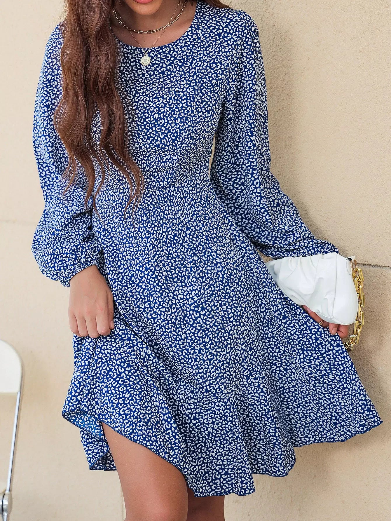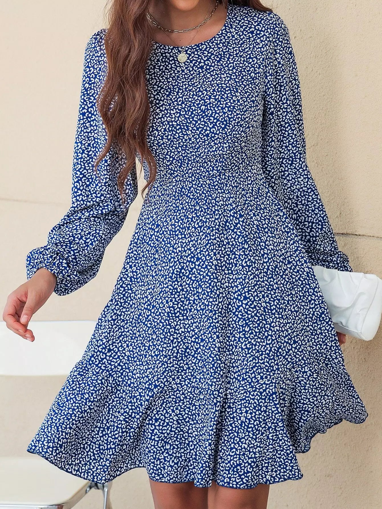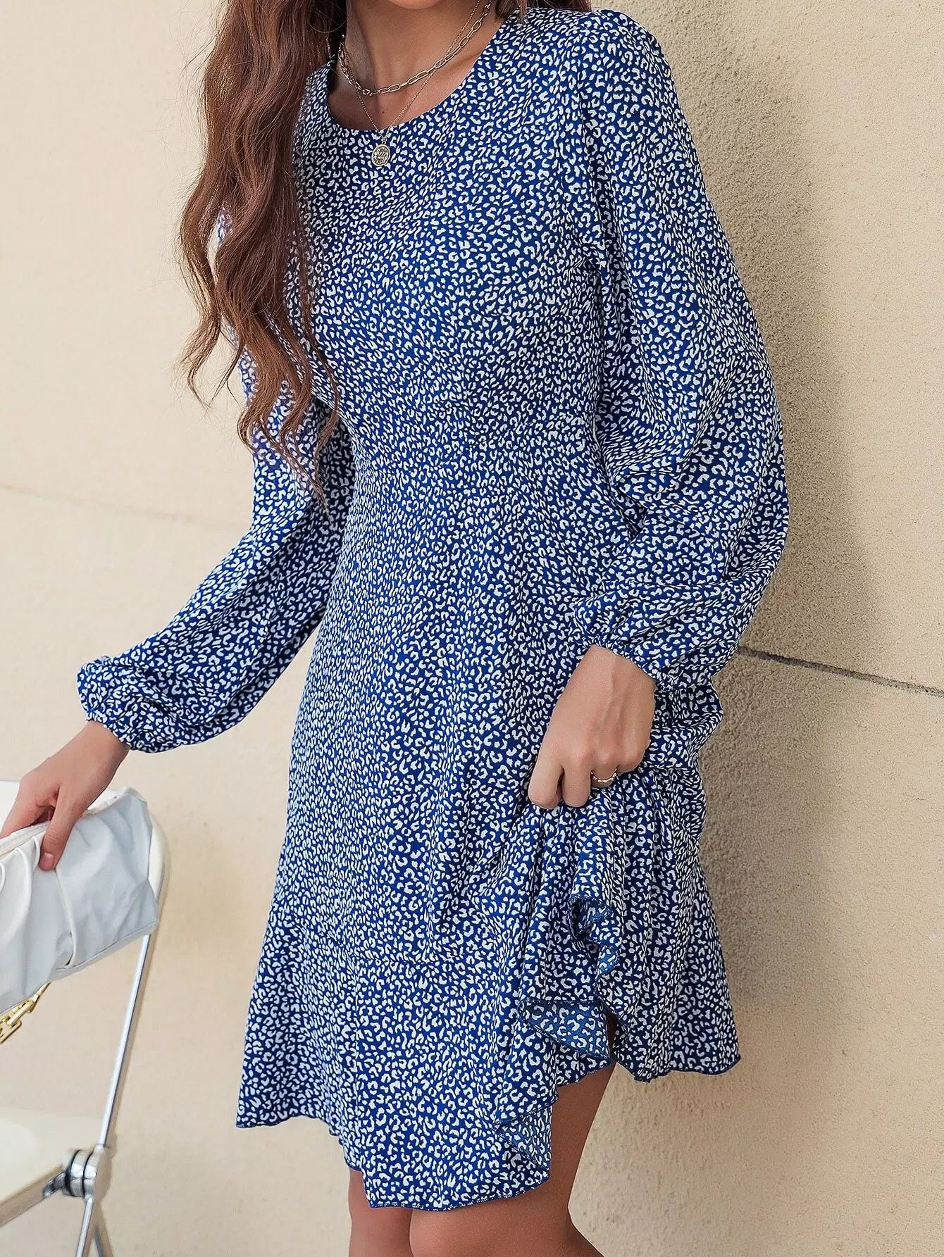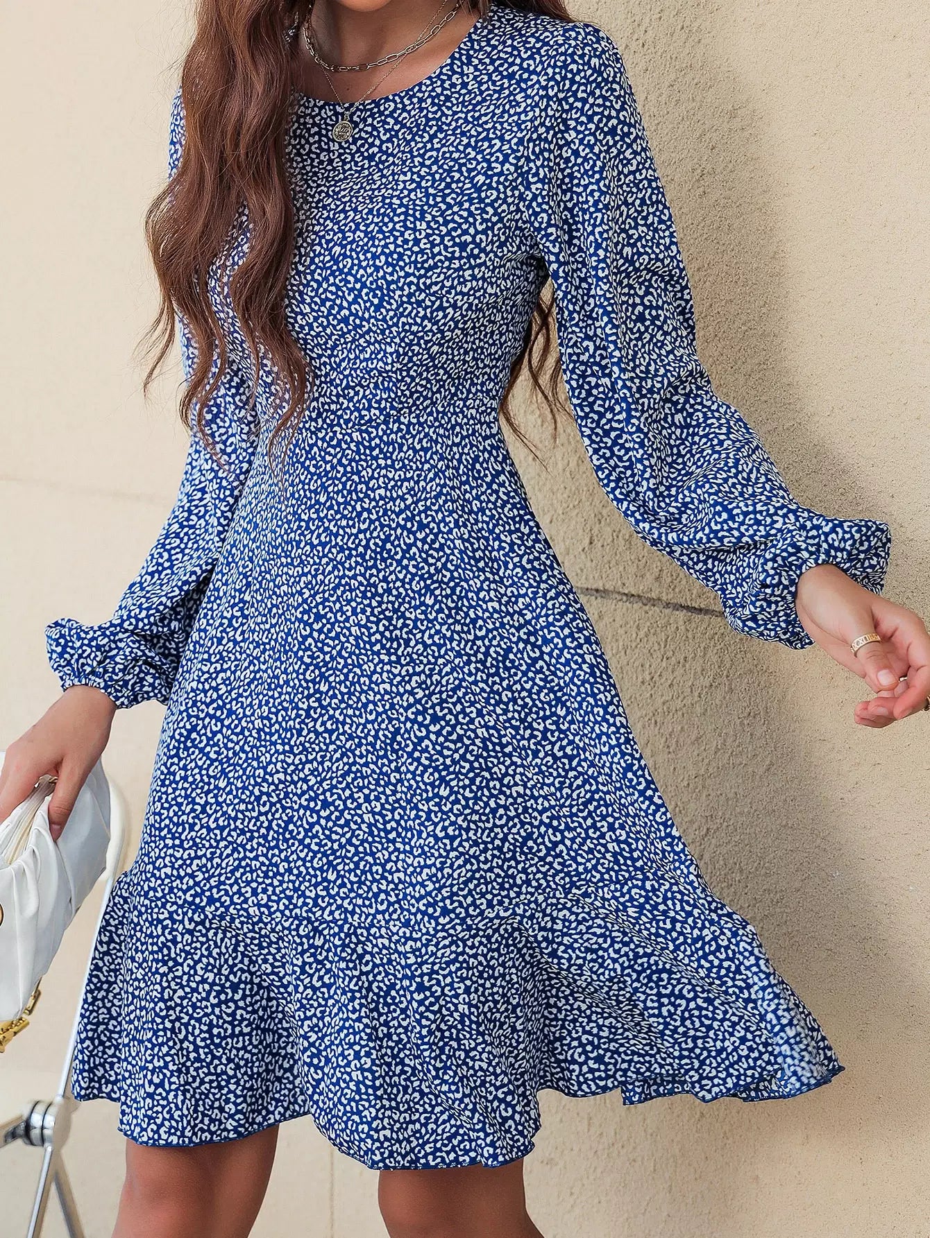 فستان بأكمام كشكش بأكمام كشكش بطبعة جلد الفهد