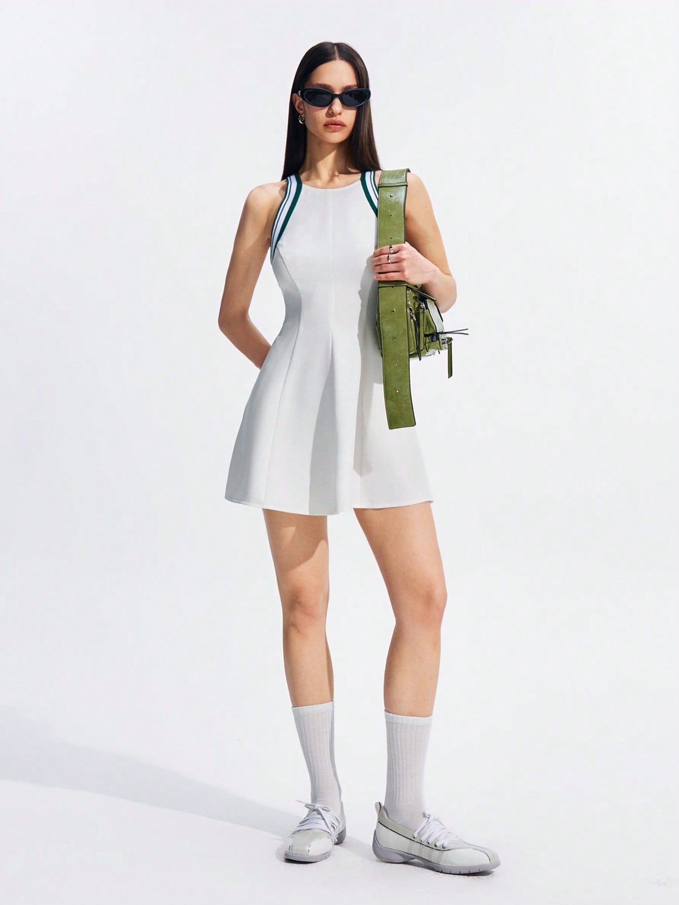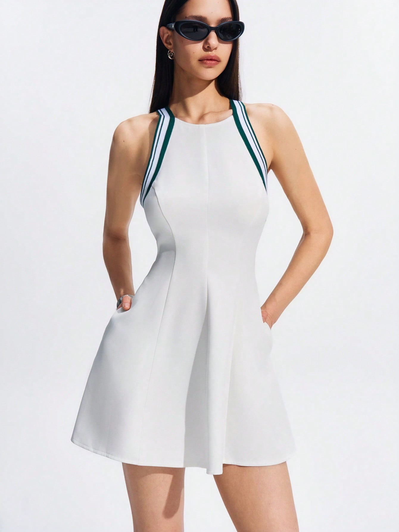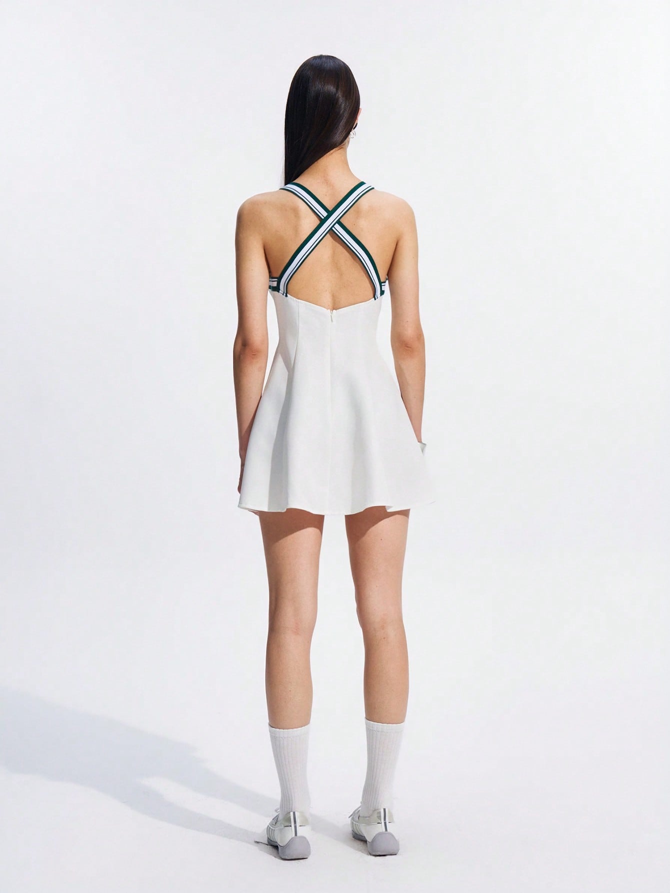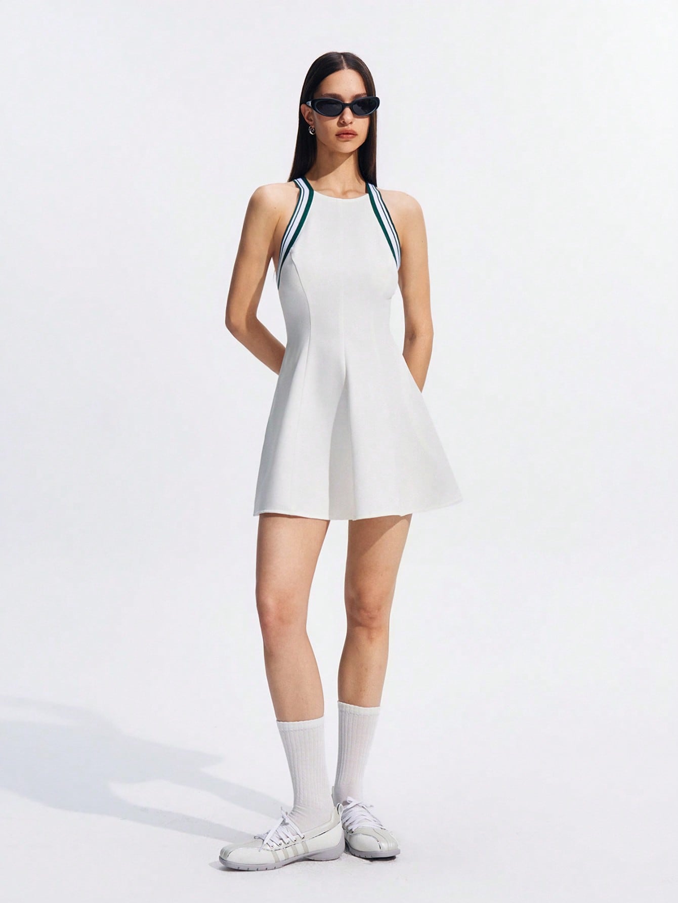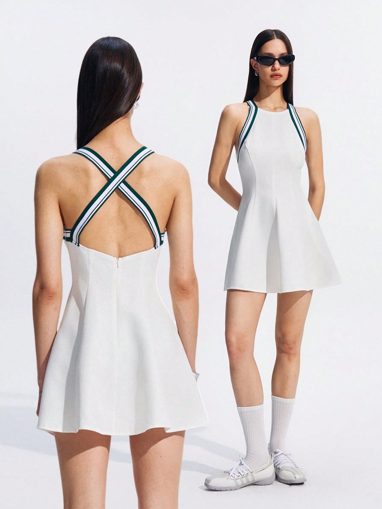 LYSMO 2025 New Arrival Spring/Summer Striped Strap Backless Fitted A-Line Mini Dress, Sporty Casual Style