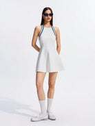 فستان قصير مخطط بدون ظهر من LYSMO 2025، متوفر الآن في ربيع/صيف، بتصميم رياضي غير رسمي