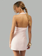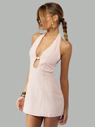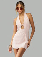 MISSGUIDED Halter Neck Mini Dress Cut Out Pearl Button Summer Party Evening Y2K Retro Style Chic Fashion