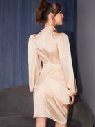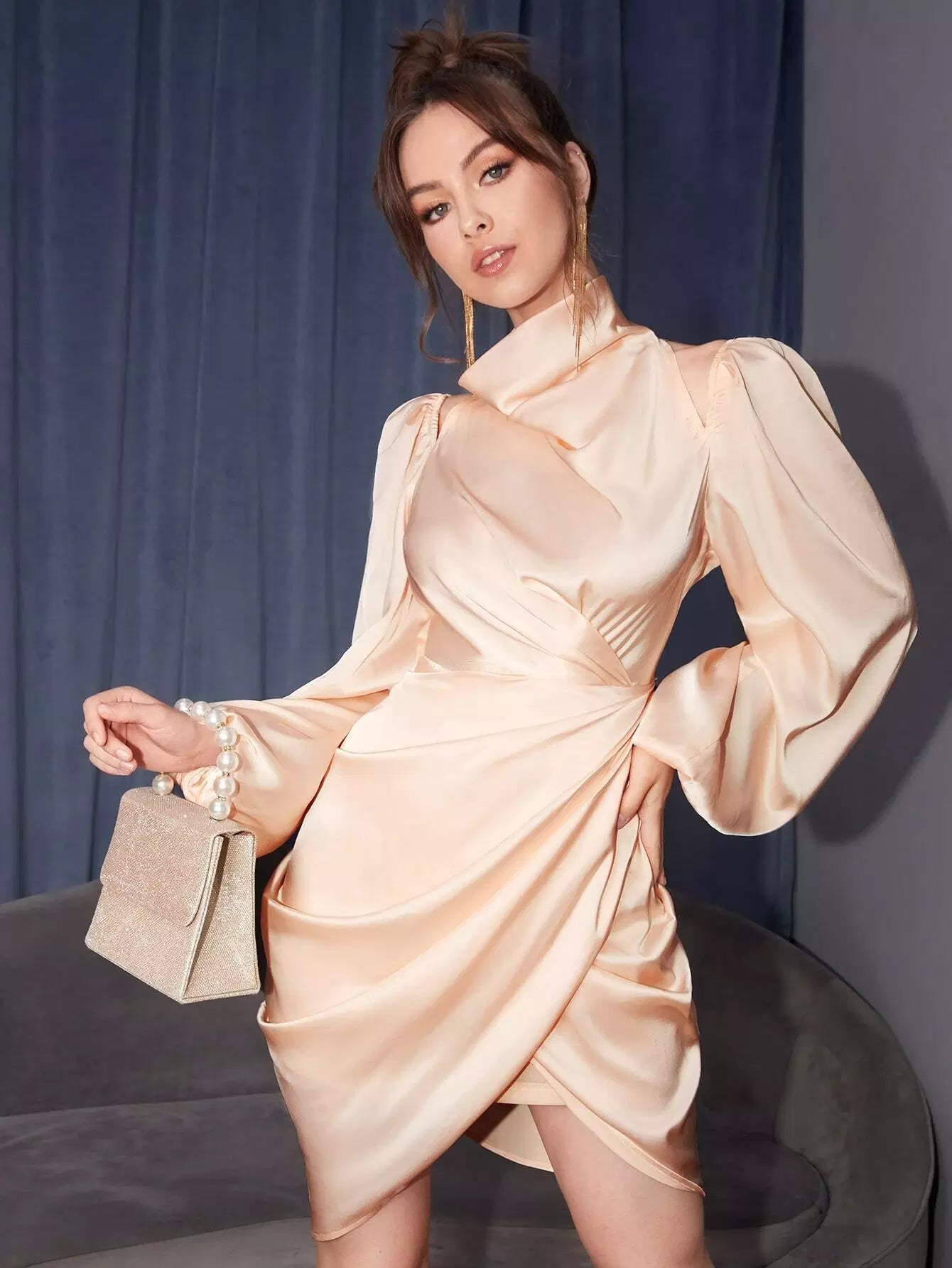 فستان بفتحة رقبة عالية وحاشية ملفوفة