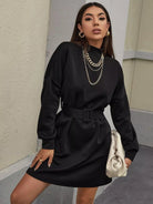 فستان ذو ياقة وهمية وأكتاف منسدلة بدون حزام