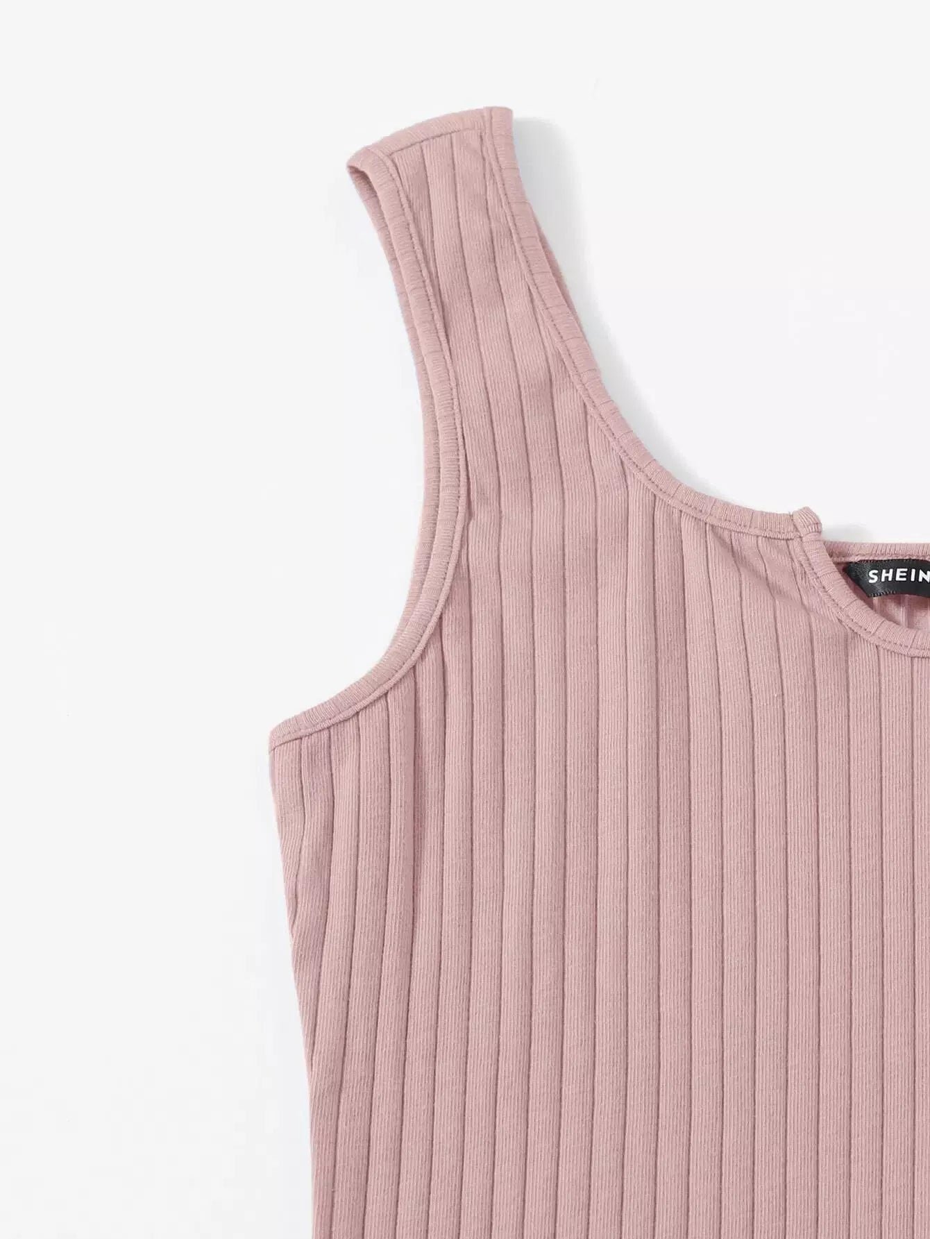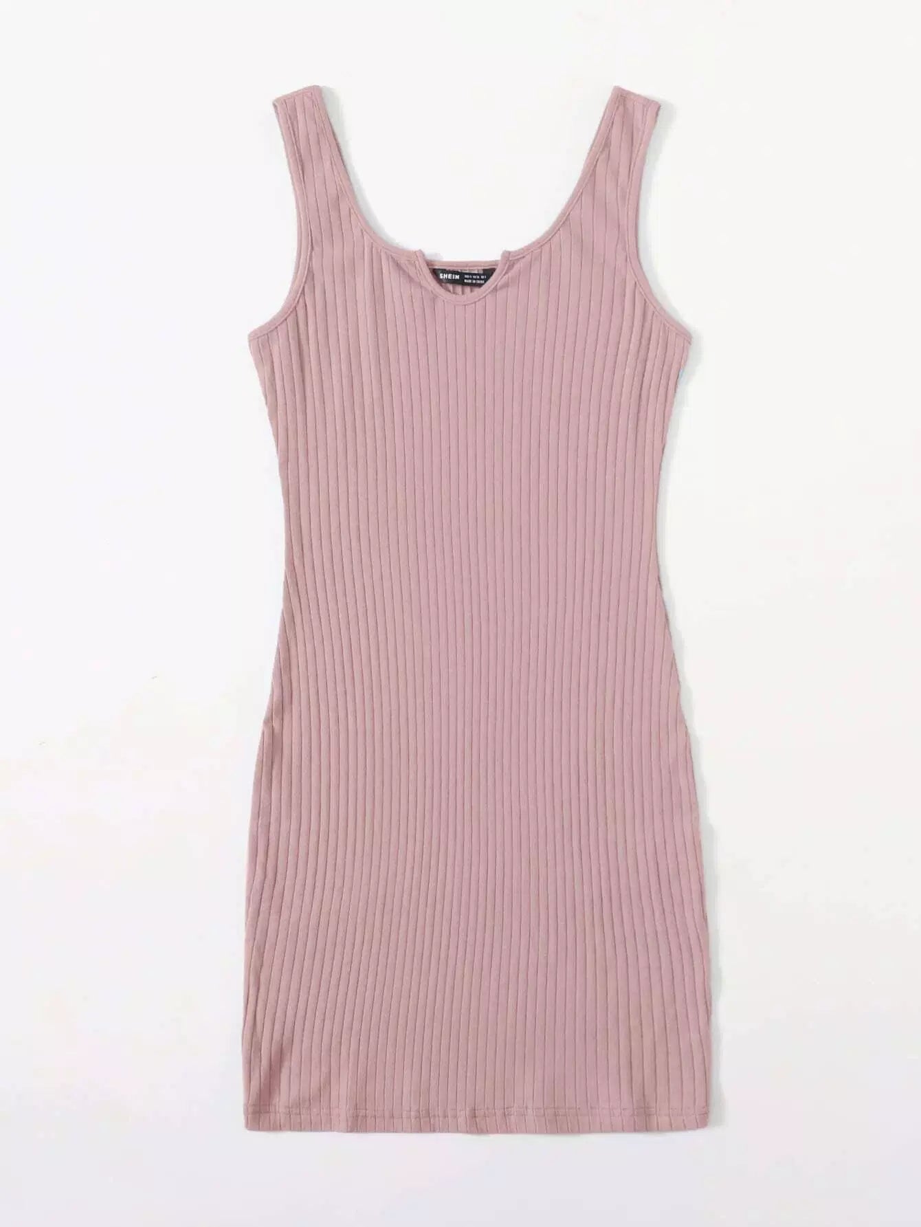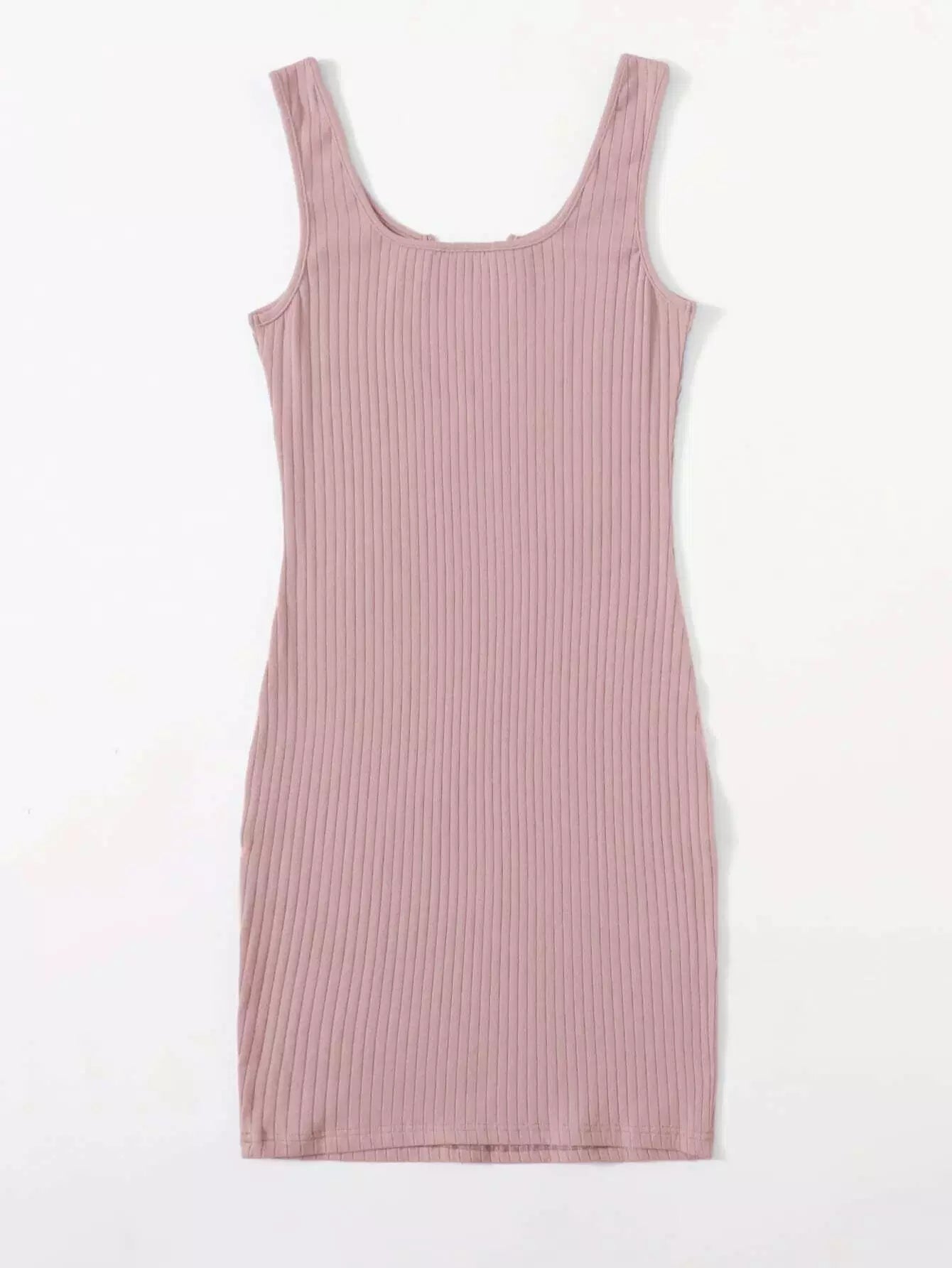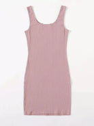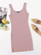 فستان بياقة محبوكة برقبة محبوكة على شكل ضلع محبوكة