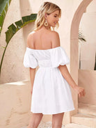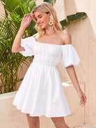 فستان بأكمام مجعدة مكشوف الأكتاف بأكمام مجعدة مجعدة