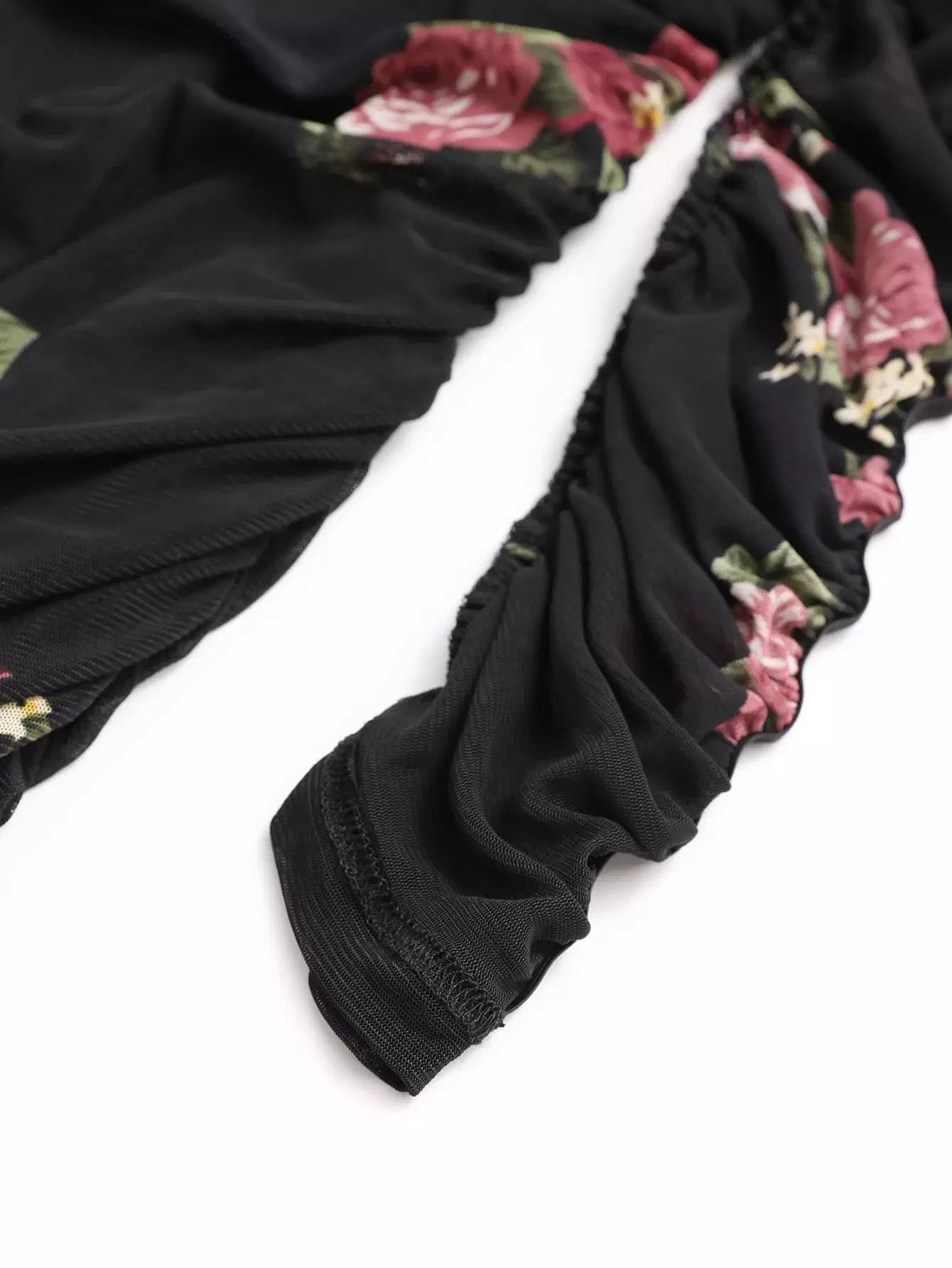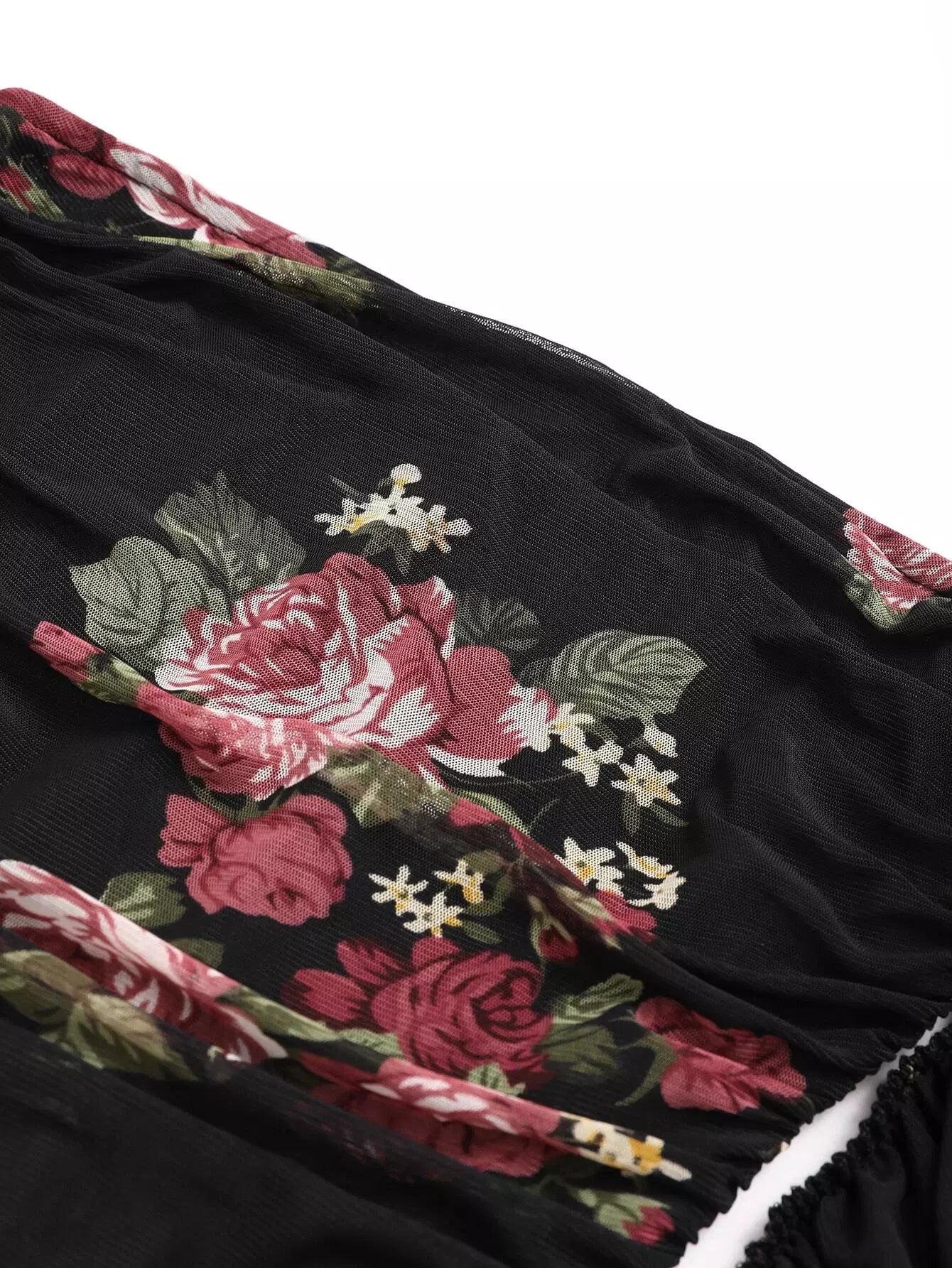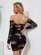 فستان بوديكون بطبعة زهور مطبوع على الأكتاف مكشوف الأكتاف